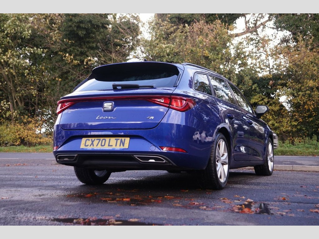 Prestige Car Supermarket in York presents this sporty and highly connected 2020 SEAT Leon 1.5 TSI EVO FR Estate. Finished in vibrant Mystery Blue metallic paintwork and featuring a contemporary interior with Two Tone Grey Fabric and contrasting Lava Red Stitching, this manual petrol estate offers a lively 130 horsepower performance and a dynamic driving experience. It rides on 17in Dynamic Bi-Spoke alloy wheels and features FR Sport Bumpers, Black Roof Rails, Dark Tinted Rear Windows, and Sports Suspension. Illumination is provided by LED Headlights with Dynamic Turn Signals and LED Front Fog Lights with a Cornering Function. Step inside the highly appointed cabin to find a Flat Bottomed Leather Steering Wheel with Red Stitching, Three-Zone Climate Control, and Ambient Lighting. Technology is comprehensive with the Digital Cockpit, Media System Plus with Navigation, Full Link Smartphone Integration including Wireless Apple CarPlay, and a Wireless Device Charger. Convenience is a priority with KESSY Go Keyless Start, Park Assist including Front and Rear Parking Sensors, Rain Sensing Wipers, and Electrically Adjustable Folding and Heated Door Mirrors. Safety and driver assistance systems are extensive, including Front Assist, Lane Keeping System, and Tiredness Recognition System, ensuring a secure and well-connected drive. Fabric - Two Tone Grey with Lava Red Sti, Mystery Blue, 12V Power Supply in Centre Console, 12v Socket in Loadspace, 17in Alloy Wheels - Dynamic Bi-Spoke, Ambient Lighting, Ambient Lighting in Door Trim, Anti-Lock Brakes - ABS, Anti-Theft Alarm System - Interior Monit, Auto Dimming Rear View Mirror, Brake Control System - ESC and Brake Boo, Chrome Interior Detailing, Cruise Control with Speed Limiter, Dark Tinted Rear Windows, Digital Cockpit, Driver and Front Passenger Airbags with , Driver and Passenger Seat Manual Height , Driver and Passenger Seat with Lumbar Ad, Electric Parking Brake, Electrically Adjustable Folding and Heat, Electro-Mechanical Power Steering - Spee, Emergency Tyre Rep