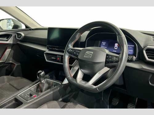 This 2021 SEAT Leon TSI EVO FR is a superb example, having been owned by just one careful keeper since new. This stylish hatchback boasts a 1.5 litre Euro 6 compliant petrol engine, offering a refined driving experience. Inside, you'll find the advanced Media System Plus with navigation and Bluetooth connectivity, keeping you connected and entertained on every journey. The FR trim level enhances the Leon's appeal with striking LED headlights featuring dynamic turn signals and automatic coming home functionality, complemented by separate daytime running lights and automatic headlight control. Experience exceptional comfort with the three zone climate control, allowing personalised temperature settings for all occupants. Parking is made effortless thanks to the Park Assist system, which includes front and rear parking sensors. This Leon also impresses with its excellent fuel economy, achieving up to 50 miles per gallon, and benefits from a low insurance group, making it an economical choice. Furthermore, its low CO2 emissions and large boot space demonstrate its practicality and efficiency, setting it apart from many other vehicles in its class. 12V Power Supply in Centre Console, 12v Socket in Loadspace, 17in Alloy Wheels - Dynamic Bi-Spoke, Ambient Lighting, Anti-Lock Brakes - ABS, Anti-Theft Alarm System - Interior Monit, Auto Dimming Rear View Mirror, Brake Control System - ESC and Brake Boo, Chrome Interior Detailing, Cruise Control with Speed Limiter, Dark Tinted Rear Windows, Digital Cockpit, Driver and Front Passenger Airbags with , Driver and Passenger Seat Manual Height , Driver and Passenger Seat with Lumbar Ad, Electric Parking Brake, Electrically Adjustable Folding and Heat, Electro-Mechanical Power Steering - Spee, Emergency Tyre Repair Kit, Extended Safety System, Fabric - Two Tone Grey with Lava Red Sti, Four USB Typ