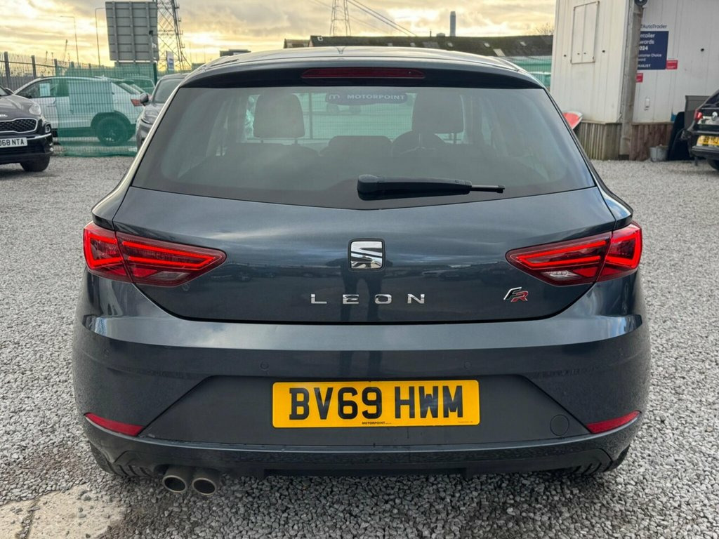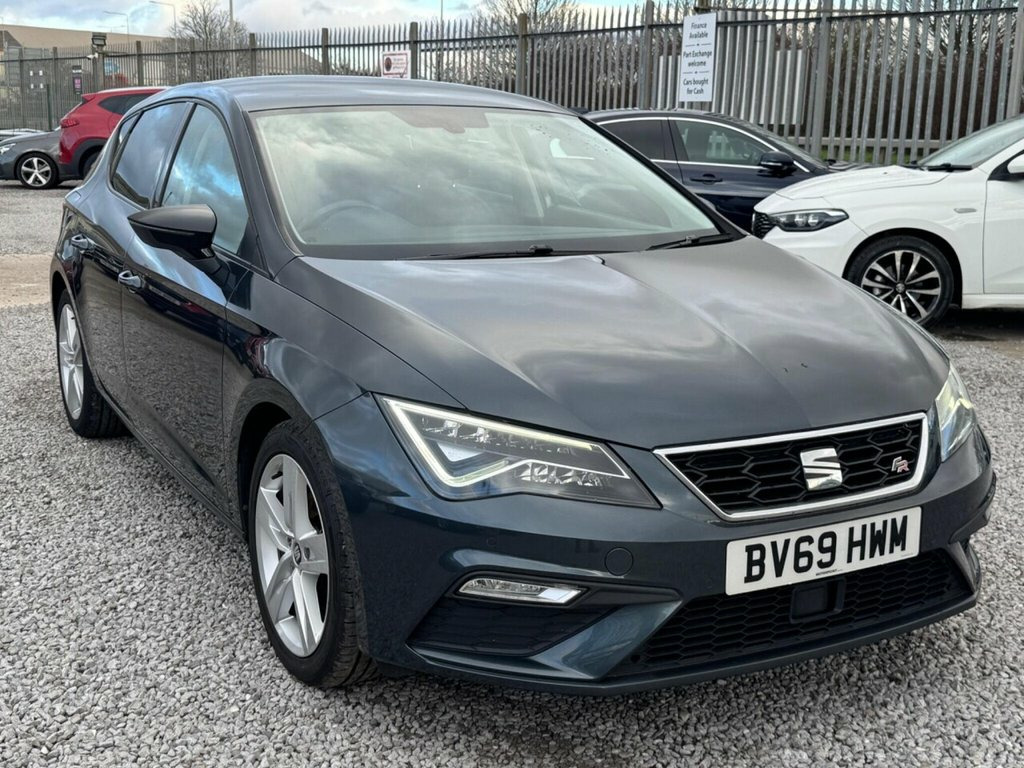 With an MOT valid until October 2026 and only 40,031 miles on the clock, this 2019 SEAT Leon TSI EVO FR offers excellent peace of mind. This Euro 6 compliant 1.5 litre petrol model comes with service history, ensuring you are well covered. The FR trim level boasts a range of desirable features, including full LED headlights for superior visibility, SEAT Full Link smartphone integration with Apple CarPlay and Google Android Auto for seamless connectivity, and front and rear parking sensors to make manoeuvring effortless. The Convenience Pack Plus ensures automatic headlights, while dual zone climate control allows for personalised comfort for both driver and passenger. A NEW MOT AND SERVICE COMPLETED 01/11/2025 ULEZ -DAB-ISOFIX NAV-CAR PLAY-LIVE VIDEO AVAILABLE - ALL CARS COME WITH A NATION WIDE WARRANTY & ARE HPI CHECKED-NO ADMIN FEES-HOME DELIVERY AVAILABLE- PX WELCOME -Trading standard Approved -FINANCE AVAILABLE & ALL CREDIT SCORES CONSIDERED This SEAT Leon stands out with its impressive acceleration, reaching 0-62mph in just 8.2 seconds, demonstrating its spirited performance. Its low CO2 emissions are a significant advantage, making it a more environmentally conscious choice compared to many similar vehicles. Furthermore, the generous boot space offers practicality for everyday needs and longer journeys, highlighting its versatility. 12V Power Supply in Centre Console, 17in Alloy Wheels - Dynamic 30-2, 7 Airbags, ABS and Traction Control System - TCS - , Alarm - Volumetric, Body-Coloured Door Mirrors with Integrat, Bumpers - Exclusive FR Front and Rear, Convenience Pack Plus, Cruise Control, Dark Tinted Rear Windows, Digital Clock, Driver and Passenger Seat Height Adjustm, Driver and Passenger Sunvisor with Cover, Drivers Seat Lumbar Adjustment, Dual Zone Climate Control, Electric Parking Brake Including Autohol, Emergency Tyre Repair Kit, Front Assist with Pedestrian Protection, Front Seat Back Storage Pockets, Front Sports Seats, Front and Rear Electric Windows, Front and Rear Parking Sensors, Full LED Headlights, Gear