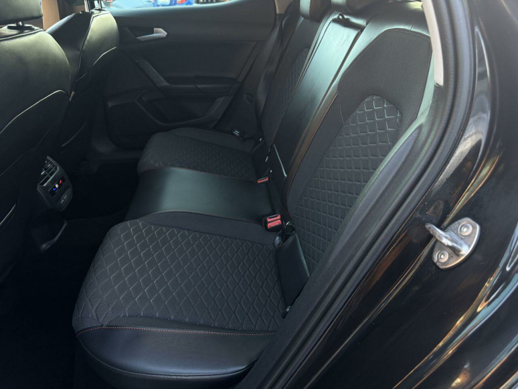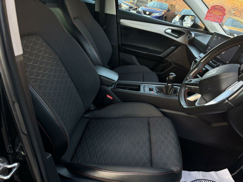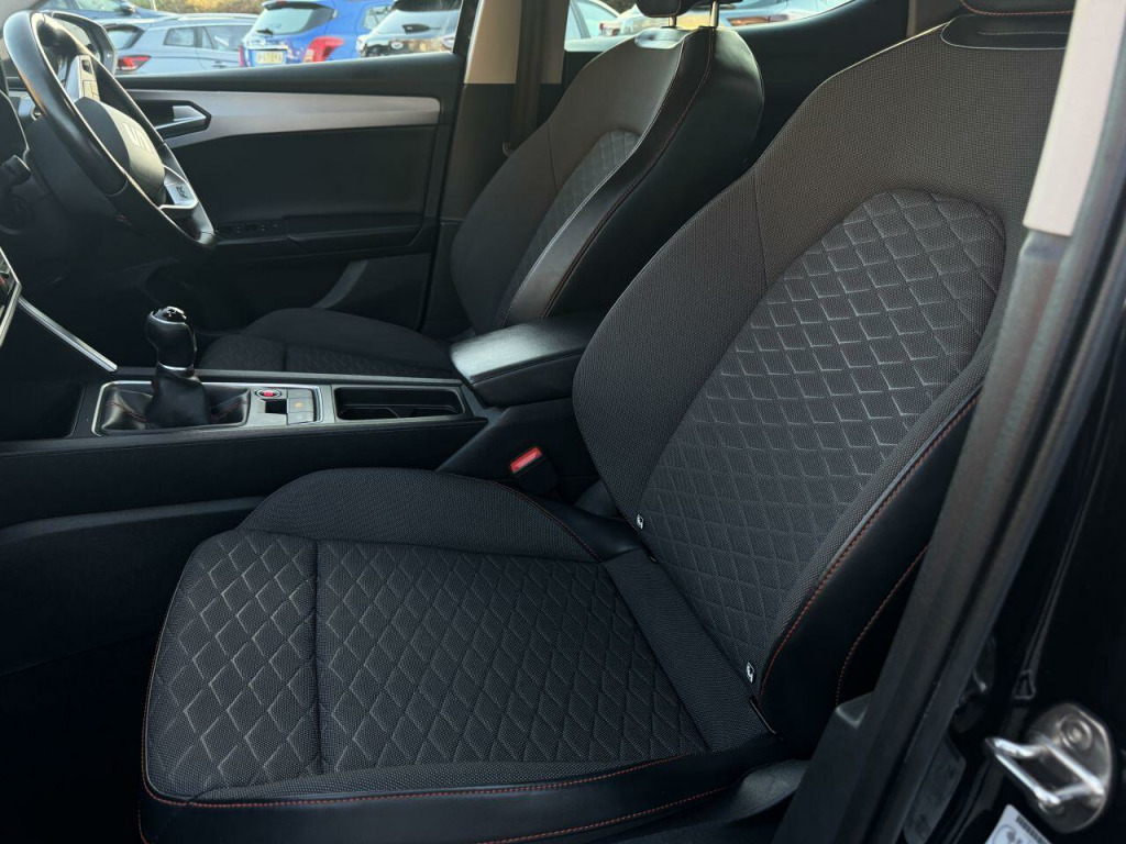 . 12V Power Supply in Centre Console, 17in Alloy Wheels - Dynamic Bi-Spoke, Ambient Lighting, Anti-Lock Brakes - ABS, Anti-Theft Alarm System - Interior Monitoring - Backup Horn and Towing Protection, Auto Dimming Rear View Mirror, Brake Control System - ESC and Brake Booster, Chrome Interior Detailing, Cruise Control with Speed Limiter, Dark Tinted Rear Windows, Digital Cockpit, Driver and Front Passenger Airbags with Front Passenger Airbag De-Activation - Front Side - Curtain Airbag, Driver and Passenger Seat Manual Height Adjustment, Driver and Passenger Seat with Lumbar Adjustment, Electric Parking Brake, Electrically Adjustable Folding and Heated Door Mirrors, Electro-Mechanical Power Steering - Speed-Sensitive, Emergency Tyre Repair Kit, Extended Safety System, Folding Boot Cover, Four USB Type C Ports, FR Sport Bumpers, Front and Rear Electric Windows, Front and Rear Reading Lights - Four, Front Assist, Front Centre Armrest, Front LED Fog Lights with Cornering Function, Front Seat Back Storage Pockets, Full Link Smartphone Integration - Mirror Link - Wireless Apple CarPlay - Wired Google Android Auto, Illuminated Front Door Sill, Interior Lighting, ISOFIX Points in Outer Rear Seats with Top Tether Anchorage Points, KESSY Go - Keyless Start, Lane Keeping System, Leather Flat Bottomed - Perforated Steering Wheel with Red Stitching and FR Logo, LED Headlights with Dynamic Turn Signals, Lockable Tailgate, Media System Plus with Navigation, Park Assist including Front and Rear Parking Sensors, Rain Sensing Wipers, Rear Bench Seats with 60-40 Split and Armrest, Rear Fog Light, SEAT Connect App, SEAT Drive Profile, Seatbelt Reminder - Front and Rear, Separate Daytime Running Light with Automatic Headlight Control and Automatic Coming Home Feature, Seven Speakers, Sports Suspension, Sunvisors with Illuminated Mirrors, Three-Zone Climate Control, Tiredness Recognition System, Tool Kit, Tyre Pressure Monitoring System, Wireless Device Charger.