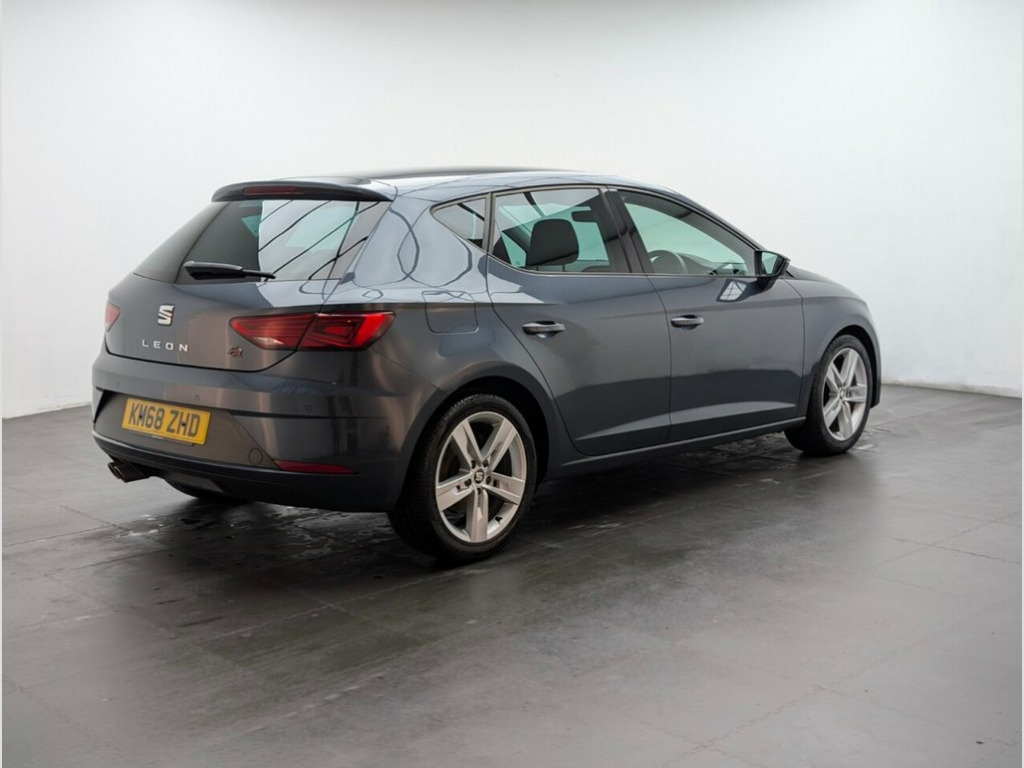 17" Alloys, Cruise Control, Climate Control, Tinted Glass, Parking Sensors. This 2018 SEAT Leon TSI EVO FR boasts exceptionally low mileage for its age, with only 39,675 miles recorded and a clear vehicle history check. This Euro 6 compliant 1.5 litre petrol model, presented in the sporty FR trim, offers a compelling blend of performance and practicality. Its MOT is valid until November 2026, providing peace of mind for the new owner. The SEAT Leon TSI EVO FR is designed for those who appreciate a dynamic driving experience, evidenced by its brisk 0-60mph acceleration time of just 8.2 seconds. This performance is matched by a generously sized boot, offering ample space for shopping, luggage, or sports equipment. These features combined indicate that this particular Leon offers a superior proposition compared to other vehicles in its class. 12V Power Supply in Centre Console, 17in Alloy Wheels - Dynamic 30-2, 7 Airbags, ABS and Traction Control System - TCS - , Alarm - Volumetric, Body-Coloured Door Handles, Body-Coloured Door Mirrors with Integrat, Boot Storage Net, Bumpers - Exclusive FR Front and Rear, Cargo Rings in the Boot, Convenience Pack Plus, Cruise Control, Dark Tinted Rear Windows, Digital Clock, Driver and Passenger Seat Height Adjustm, Driver and Passenger Sunvisor with Cover, Drivers Seat Lumbar Adjustment, Dual Zone Climate Control, Electric Parking Brake Including Autohol, Electrically Adjustable and Heated Door , Electrically Foldable Exterior Mirrors w, Electro-Mechanical Power Steering, Electronic Differenti