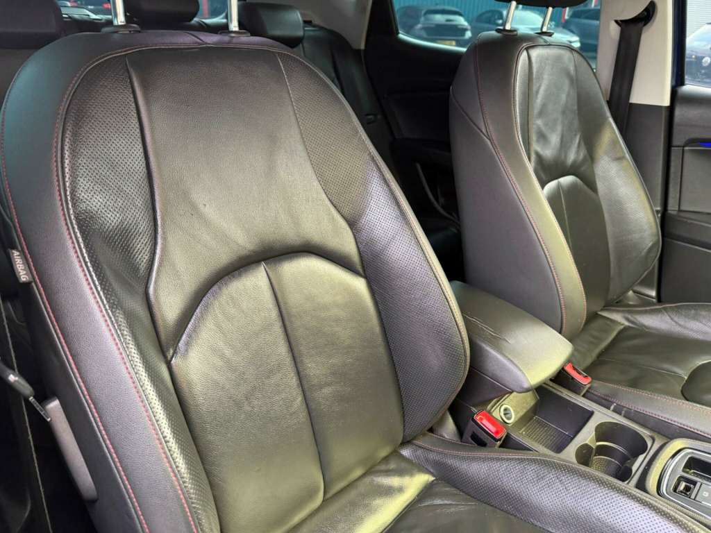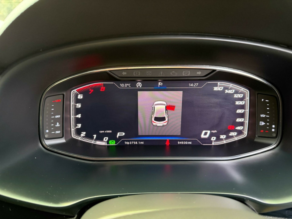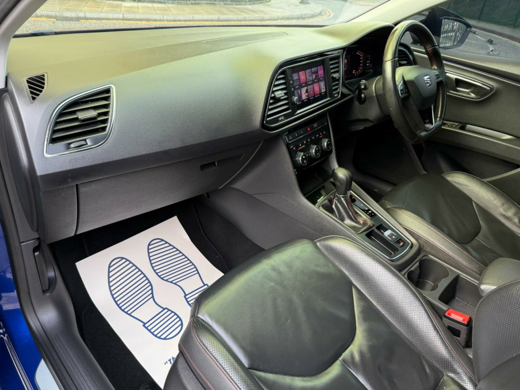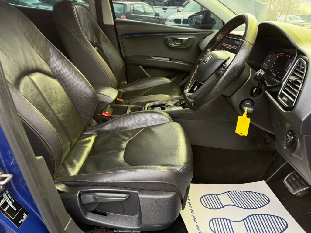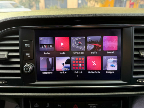 This 2019 SEAT Leon TSI EVO FR Sport boasts a clear vehicle history, offering you peace of mind. This stylish hatchback features a 1.5 litre Euro 6 compliant petrol engine, ensuring a balance of performance and efficiency. The FR Sport trim level comes equipped with a comprehensive Winter Pack, including heated seats for those colder journeys, and a Convenience Pack Plus that offers automatic headlights. For enhanced visibility, it benefits from Full LED headlights, and parking is made simple with front and rear parking sensors. Connectivity is seamless thanks to SEAT Full Link, supporting Mirror Link, Apple CarPlay, and Google Android Auto.Experience impressive performance with this SEAT Leon, capable of accelerating from 0 to 62 miles per hour in just 8.3 seconds, a figure that demonstrates its responsiveness compared to other vehicles in its class. You'll also appreciate the generous boot space, providing ample room for luggage or shopping. Furthermore, its low CO2 emissions highlight its environmental consideration, making it a more economical choice for your motoring needs. v power supply in centre console, 18in alloy wheels - performance 30-1, 7 airbags, abs and traction control system - tcs - electronic stability control - esc - and electronic differential lock system - xds, alarm - volumetric, body-coloured door handles, body-coloured door mirrors with integrated led indicators, boot storage net, bumpers - exclusive fr front and rear, cargo rings in the boot, convenience pack plus, cruise control, dark tinted rear windows, digital clock, digital cockpit, driver and passenger seat height adjustment, driver and passenger sunvisor with covered and illuminated mirrors, drivers seat lumbar adjustment, dual zone climate control, dynamic chassis control and progressive direction, esc - electronic stability control and tyre pressure warning light indicator, electric parking brake including autohold function, electrically adjustable and heated door mirrors, electrically foldable exterior mirrors with parking position and passenger-side mirror with lowering, electro-mechanical power steering, electronic differential lock system - xds, emergency tyre repair kit, front assist with pedestrian protection, front seat back storage pockets, front sports seats, front and rear electric windows, front and rear parking sensors, full led headlights, gearshift indicator, high centre console, high gloss black b and c pillars, hill hold control, isofix points in outer rear seats with top tether anchorage points, illuminated aluminium front door sill trims with fr logo, instrument lighting with brightness control, interior chrome detailing, interior fr black - black glossy, led interior illumination pack, lights left on warning buzzer, low fuel warning light, lower suspension - 15mm, multi coloured ambient lighting, multi-collision braking system, navigation system, outside temperature gauge, rpm counter, radiator grille frame in chrome, radiator grille in black, remote central locking with deadlocks, seat drive profile, seat full link smartphone integration - mirror link - apple carplay - google android auto, seatbelt reminder - front, seats - passenger lumbar adjustment, split folding rear seats - 60-40, sports suspension, steering wheel - flat-bottomed perforated leather with red stitching and fr logo, steering wheel-mounted gearshift paddles, storage box under drivers seat, trip computer, two folding keys with window open-close - door and boot opening functionality, two height-adjustable front and rear headrests, two remote keys with window open-close - door mirror folding and boot opening functionality, usb cable for apple and android compatibility, visual twin exhaust pipes, winter pack