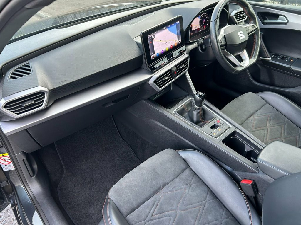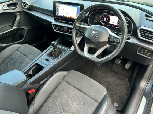 Check out this gorgeous Magnetic Grey Seat Leon FR Sport. Its got the superb 130bhp 1.5 turbocharged petrol engine coupled with a 6 speed manual gearbox gearbox meaning the driving experience is fabulous and its great on fuel. The Seat Leon FR Sport is essentially an enhanced version of the FR trim, offering additional features and styling elements. Key differences include larger 18-inch alloy wheels, a full LED light bar at the rear, heated front seats and steering wheel, and microsuede upholstery in the FR Sport. The FR Sport also includes other features like wraparound ambient interior lighting and a unique black interior roof lining. wireless device charging and electrically adjustable memory seats all of which are over and above the already generous standard FR trim. A very well cared for vehicle with just one previous owner from new and complete with full Seat main dealer service history. Awesome value for money when you consider the underpinnings of this excellent sports hatch are similar to the Golf R Line or Audi A3 S Line which both command a much stronger used price. Magnetic Grey, 12V Power Supply in Centre Console, 18in Alloy Wheels - Performance Machined, Ambient Lighting, Anti-Lock Brakes - ABS, Anti-Theft Alarm System - Interior Monit, Auto Dimming Rear View Mirror, Black Headlining, Brake Control System - ESC and Brake Boo, Chrome Interior Detailing, Cruise Control with Speed Limiter, Dark Tinted Rear Windows, Digital Cockpit, Driver and Front Passenger Airbags with , Electric Parking Brake, Electrically Adjustable Folding and Heat, Electro-Mechanical Power Steering - Spee, Emergency Tyre Repair Kit, Extended Safety System, FR Sport Bumpers, Folding Boot Cover, Four USB Type C Ports, Front Assist, Front Centre Armrest, Front LED Fog Lights with Cor