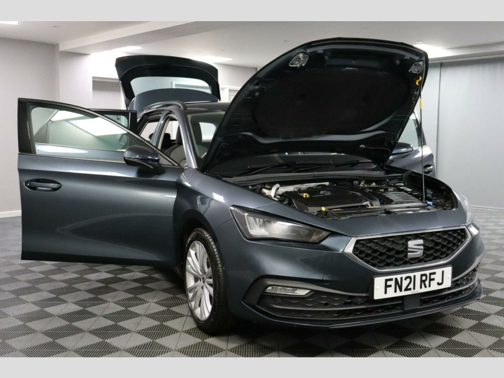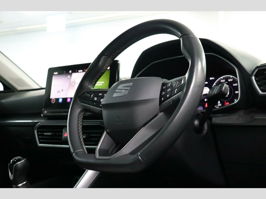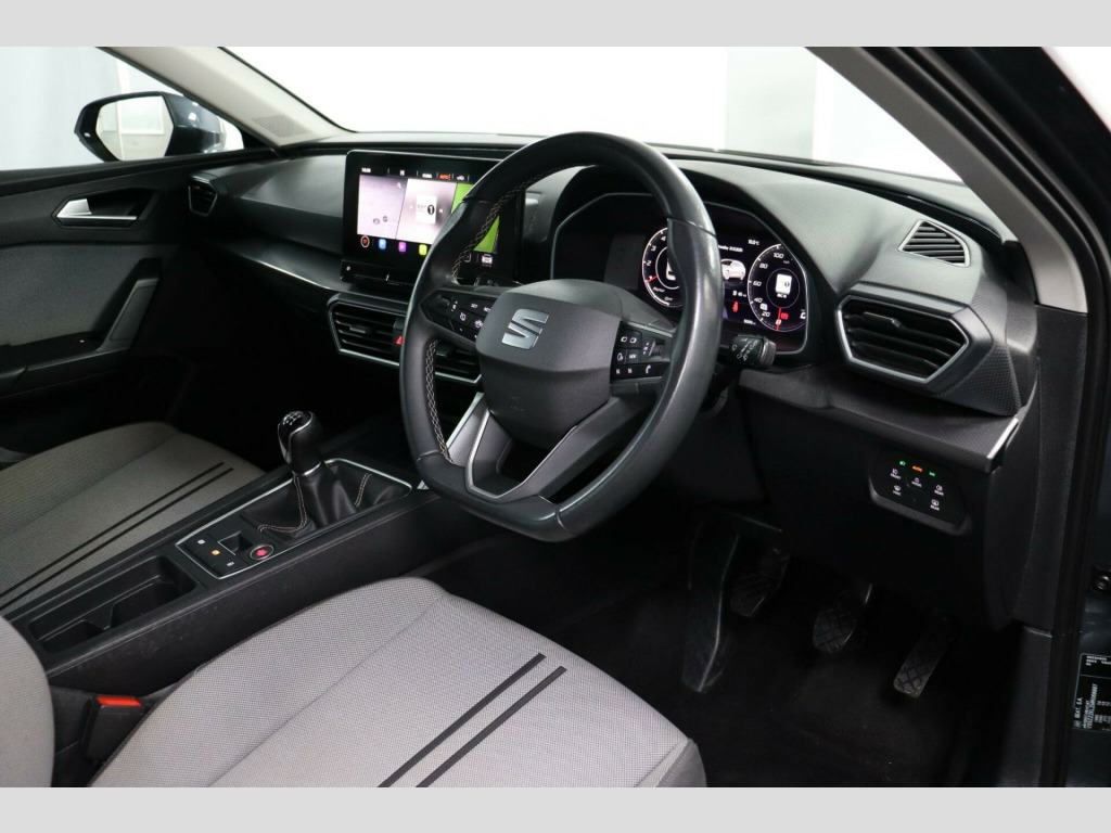 FN21RFJ. The SEAT Leon has long been a popular choice for drivers wanting a hatchback with sharp looks, good road manners, and space that works for everyday use. This 1.5 TSI EVO SE Dynamic version brings better fuel economy, a lower insurance group, and a larger boot, making a sensible option for commuting, regular driving, or moving into something newer with modern features.Cruise Control with Speed Limiter supports longer journeys. The Lane Keeping System provides steering assistance if road markings are crossed. Front Assist monitors traffic ahead and can react in certain situations to help reduce the risk of a collision. Park Assist, including Front and Rear Parking Sensors, helps when manoeuvring into tighter spaces, supported by the Electric Parking Brake with Auto Hold. The Brake Control System, including Electronic Stability Control and Brake Booster, supports controlled braking.Inside, the cabin layout is straightforward and easy to follow. The 10 inch Colour Touchscreen Infotainment System houses the Navigation System and media functions, while the Digital Cockpit displays driving information clearly ahead of the steering wheel. Full Link Smartphone Integration allows compatible phones to connect via MirrorLink, Wireless Apple CarPlay, or Wired Android Auto. Bluetooth Connection supports hands-free calls and audio streaming. Air Conditioning manages cabin comfort. KESSY Go provides keyless engine start, with a 12V Power Supply located in the centre console.This car has just been serviced and comes with a Good Service History, a new 12-month MOT with no advisories, a clear HPI report, 2 keys, and verified mileage for peace of mind. Finance is available, and we can provide a personalised video on request. Please note that some features (e.g., Navigation/CarPlay) may require an active subscription. Spec details can vary, so just ask if you’d like us to confirm anything. For more info or a finance quote, call ☎️ 0113 257 00 00.. Navigation System, Lane Keeping System, Cruise Control with Speed Limiter, Full Link Smartphone Integration - Mirror Link - Wireless Apple CarPlay - Wired Google Android Auto, Electric Parking Brake with Autohold, Front Assist, Bluetooth Connection, Air Conditioning, Park Assist including Front and Rear Parking Sensors, Brake Control System - ESC and Brake Booster, ISOFIX Points in Outer Rear Seats with Top Tether Anchorage Points, 17in Alloy Wheels - Dynamic, Electrically Adjustable and Heated Door Mirrors, 10in Colour Touchscreen Infotainment System, Digital Cockpit, KESSY Go - Keyless Start, 12V Power Supply in Centre Console, Fabric - Grey and Black with Dark Silver Stitching.