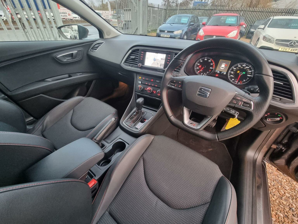 Romsey Car Centre are delighted to offer this Lovely Seat Leon FR Tech, in Grey, with complementing half leather seats. This Quality hatch comes with a Fantastic Mercedes main dealer & Independent garage full service history done at 5,908 miles, 10,115 miles, 12,042 miles, 16,383 miles, 20,003 miles, 25,639 miles, 31,219 miles, 38,572 miles, 41,416 miles, 42,954 miles and 44,642 miles up to date with a long Mot. Features include SAT nav, rear parking sensors, Black half Leather Trim, Air conditioning, Dual climate Control, Bluetooth