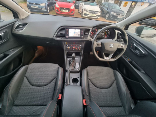 This 2014 SEAT Leon 1.8 TSI FR DSG Euro 6 (s/s) 5dr Hatchback is currently available for £10,495 in Romsey Hampshire with Petrol engine and Auto Clutch Manual gearbox. For more information or to arrange a viewing, click here to send us an email using form below.