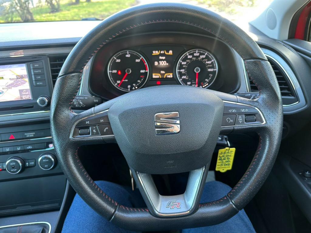 Great Family Car with FSH & Cambelt done @ 80K , Sat-Nav , Half Leather Seats , Bluetooth Tel , Parking Sensors , Cruise Control , A/C , Mot October 2026 , This Vehicle also comes with 6 Months Nationwide Warranty as standard with the option to extend it up to 3 years , 5 Days drive away Insurance for just £44.99 , 12 months AA breakdown cover , Good Condition, Exellent runner, HPI CLEAR and Mileage checked, Finance available, WE ACCEPT ALL MAJOR DEBIT CARDS PREFERRED METHOD OF PAYMENT (BANK TRANSFER) THANKS , The car is tidy throughout and drives well, ANY PART EXCHANGE WELCOME, ***** PLEASE CALL BEFORE ARRIVING WITH US TO ENSURE THE CAR STILL HERE FOR YOU TO VIEW **** Our POSTCODE is LE17 4LR. 12V Power Supply in Centre Console - Front, 17in Alloy Wheels - Dynamic, 3.5in Monochrome Drivers Display, AUX-In Port, Active Front Head Restraints, Airbags - Curtain, Airbags - Driver, Airbags - Front Passenger, Alarm - Perimeter Tow Away Protection, Ambient Spot Lighting and Footwell Illumination, Anti-Lock Braking System - ABS, Armrest - Front with Storage Compartment, Bluetooth Audio Streaming, Body-Coloured Door Handles, Bumpers - Exclusive FR Front and Rear, Child Locks on Rear Doors, Cruise Control, Cupholders - Front x2, Dark Tinted Rear Windows, Daytime Running Lights, Deadlocks, Door Mirrors - with Integrated LED Indicators, Door Sill Trim - Aluminium, Drivers Knee Airbag, Drivers Seat Lumbar Adjustment, Dual Zone Climate Control, Dust and Pollen Filter, EBA - Electronic Brake Assist, Electric Windows - Front and Rear with One-Touch and Anti-Squeeze, Electrically Folding Door Mirrors, Electrically Folding and Heated Door Mirrors, Electro-Mechanical Power Steering - Speed-Sensitive, Electronic Differential Lock System - XDS, Electronic Stability Control - ESC, Emergency Tyre Repair Kit, Exhaust Pipe - Twin Chrome Finished, Exterior Temperature Indicator, FM-AM Radio, Front Fog Lights with Cornering Function, Front Passenger Airbag De-Activation, Front Side Airbags, Fuel Filler Flap linked to Central Locking, Gearshift Indicator, Gloss Black B and C-Pillars, Head Restraints - Height Adjustable Front, Head Restraints - Height Adjustable Rear x3, Headlights - Coming Home Function, Headlights - Twin Halogen, Height Adjustable Passenger Seat, Height and Reach Adjustable Steering Wheel, Height-Adjustable Drivers Seat, Hill Hold Control, ISOFIX Points with Top Tether on Rear Seats, Illuminated Boot, Illuminated Glovebox, Inserts - Dash - Chrome Detailing, Instrument Lighting with Brightness Control, Integrated Bluetooth Handsfree System, LED Taillights, Leather Handbrake, Leatherette Bolsters, Lights Left On Warning Buzzer, Locking Wheel Bolts, Low Fuel Warning Light, Luggage Compartment - Net, Luggage Compartment - Rings, MP3 Compatible CD Player, Parking Sensors - Front and Rear with Optical Parking System, Passenger Door Mirror with Kerb Function when Reversing, Radiator Grille - Chrome Centre Surround, Reading Light - Front and Rear, Rear Parking Sensors, Rear Wiper, Remote Central Locking, Remote Key - Folding x2 with Remote Window Functionality, SD Card Slot, SEAT Drive Profile - Sport-Comfort-Eco-Individual, SEAT Logo Tailgate Release, Seatbelt Reminder - Front, Seats - Passenger Lumbar Adjustment, Seats - Pockets on Front Backrest, Seats - Split Folding Rear, Seats - Sports, Speakers x8, Sports Suspension, Steering Wheel - Flat-Bottomed Perforated Leather with Red Stitching and FR Logo, Steering Wheel Mounted Audio and Phone Controls, Storage Box Under Front Seat, Sunvisors with Illuminated Vanity Mirrors, Sunvisors with Vanity Mirrors, TCS - Traction Control System, Touch Screen - Colour 5in, Trip Computer, Tyre Pressure Monitoring System, USB Port, Navigation System, SEAT Sound System, Digital Audio Broadcasting - DAB - Digital Radio, Techny-Bison Cloth - Black/Black.