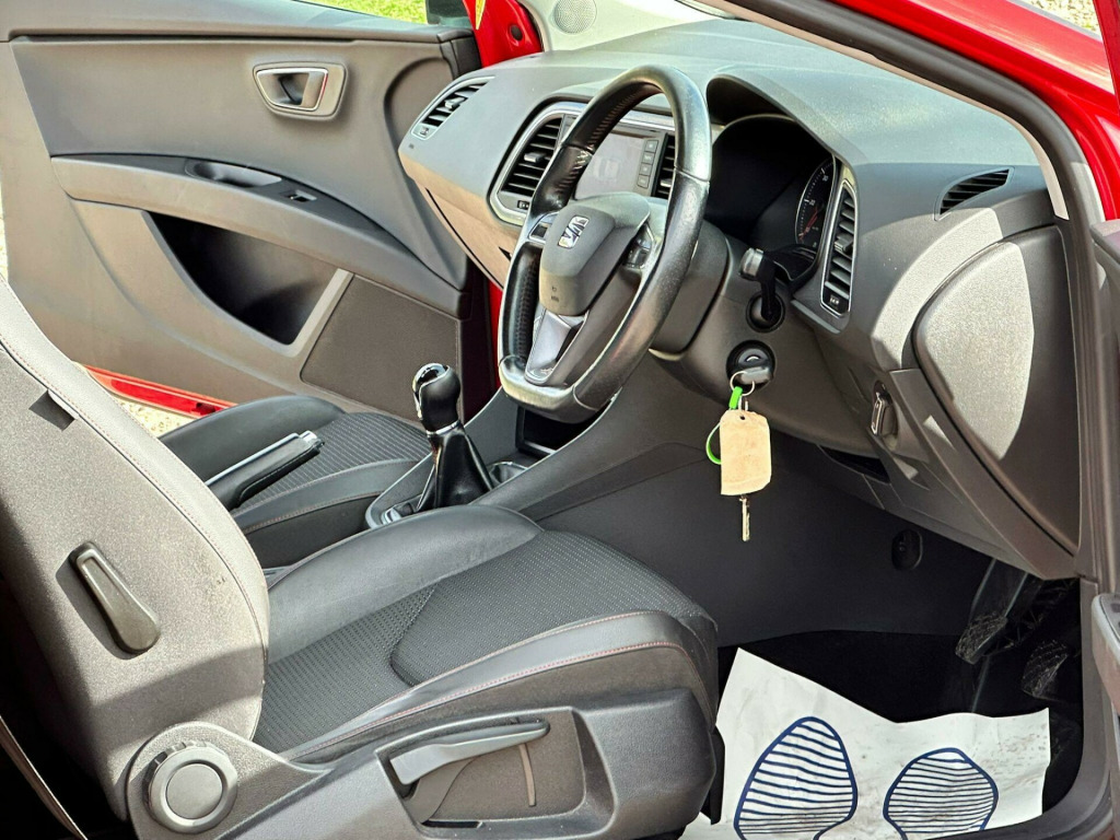 This 2014 SEAT Leon TDI FR boasts an exceptionally low mileage of just 75,000 miles for its age, coupled with a full service history and only two previous owners. This well maintained example is powered by an efficient 2.0 litre diesel engine and comes with a clear vehicle history check. You can drive away with confidence knowing it will be provided with 12 months MOT and a 3 month warranty. Notable features include Easy Entry front seats, Bluetooth audio streaming and an integrated handsfree system, making connectivity seamless. Parking is also made simpler with front and rear parking sensors and an optical parking system.The SEAT Leon TDI FR offers a compelling blend of performance and practicality. Its acceleration is impressive, reaching 0-62mph in a brisk 7.4 seconds, demonstrating its dynamic capabilities. This performance, combined with its large boot space, makes it a versatile choice for various needs. The low mileage and comprehensive service history indicate that this vehicle has been meticulously cared for, setting it apart from other similar models on the market. The last service was completed on 1st September 2025, further assuring its excellent condition.Visit Our Website Over 150 Cars In Stock +Nation wide delivery +full service history+ new cam belt +new water pump +new clutch+ new service+ new mot+ ALL DEALER FACILITIES AVAILABLE+FINANACE AVAILABLE+ ALL CARS SOLD WITH 12 MONTHS BREAKDOWN COVER AND EXTENDED WARRANTIES AVAILABLE. DRIVE AWAY INSURANCE ARRANGED (T&C Apply).. 12V Power Supply in Centre Console - Front, 17in Alloy Wheels - Dynamic, 3.5in Monochrome Drivers Display, AUX-In Port, Active Front Head Restraints, Airbags - Curtain, Airbags - Driver, Airbags - Front Passenger, Alarm - Perimeter Tow Away Protection, Ambient Spot Lighting and Footwell Illumination, Anti-Lock Braking System - ABS, Armrest - Front with Storage Compartment, Automatic Post-Collision Braking System, Bluetooth Audio Streaming, Body-Coloured Door Handles, Bumpers - Exclusive FR Front and Rear, Child Locks on Rear Doors, Cruise Control, Cupholders - Front x2, Dark Tinted Rear Windows, Daytime Running Lights - Halogen, Deadlocks, Door Mirrors - Electrically Folding with Reverse Activated Kerb-View Function, Door Mirrors - with Integrated LED Indicators, Door Sill Trim - Aluminium, Drivers Knee Airbag, Dual Zone Climate Control, Dust and Pollen Filter, EBA - Electronic Brake Assist, Easy Entry Front Seats, Electric Windows - Front with One-Touch and Anti-Squeeze, Electro-Mechanical Power Steering - Speed-Sensitive, Electronic Differential Lock System - XDS, Electronic Stability Control - ESC, Emergency Tyre Repair Kit, Exhaust Pipe - Twin Chrome Finished, Exterior Temperature Indicator, FM-AM Radio, Front Fog Lights with Cornering Function, Front Parking Sensors, Front Passenger Airbag De-Activation, Front Side Airbags, Fuel Filler Flap linked to Central Locking, Gearshift Indicator, Gloss Black Pillars, Head Restraints - Height Adjustable Front, Head Restraints - Height Adjustable Rear x3, Headlights - Coming Home Function, Headlights - Electric Range Adjustment, Headlights - Twin Halogen, Height Adjustable Passenger Seat, Height and Reach Adjustable Steering Wheel, Height-Adjustable Drivers Seat, Hill Hold Control, ISOFIX Points with Top Tether on Rear Seats, Illuminated Boot, Illuminated Glovebox, Inserts - Dash - Chrome Detailing, Instrument Lighting with Brightness Control, Integrated Bluetooth Handsfree System, LED Taillights, Leather Gear Knob, Leather Handbrake, Leatherette Bolsters, Lights Left On Warning Buzzer, Locking Wheel Bolts, Low Fuel Warning Light, Luggage Compartment - Rings, MP3 Compatible CD Player, Parking Sensors - Front and Rear with Optical Parking System, Passenger Door Mirror with Kerb Function when Reversing, Radiator Grille - Chrome Centre Surround, Reading Light - Front and Rear, Rear Parking Sensors, Rear Wiper, Remote Central Locking, Remote Key - Folding x2 with Remote Window Functionality, SD Card Slot, SEAT Drive Profile - Sport-Comfort-Eco-Individual, SEAT Logo Tailgate Release, Seatbelt Reminder - Front, Seats - Front Lumbar Adjustment, Seats - Pockets on Front Backrest, Seats - Split Folding Rear, Seats - Sports, Speakers x8, Sports Suspension, Steering Wheel - Flat-Bottomed Perforated Leather with Red Stitching and FR Logo, Steering Wheel Mounted Audio and Phone Controls, Storage Box Under Front Seat, Sunvisors with Illuminated Vanity Mirrors, Sunvisors with Vanity Mirrors, TCS - Traction Control System, Touch Screen - Colour 5in, Trip Computer, Tyre Pressure Monitoring System, USB Port. Full service history