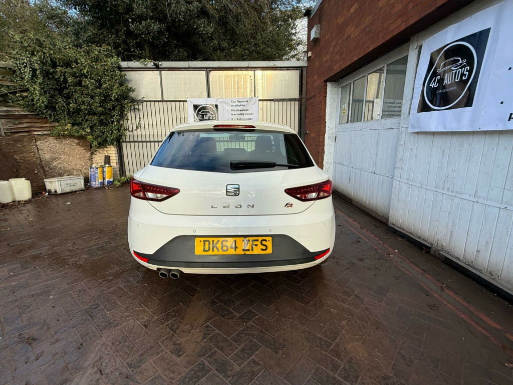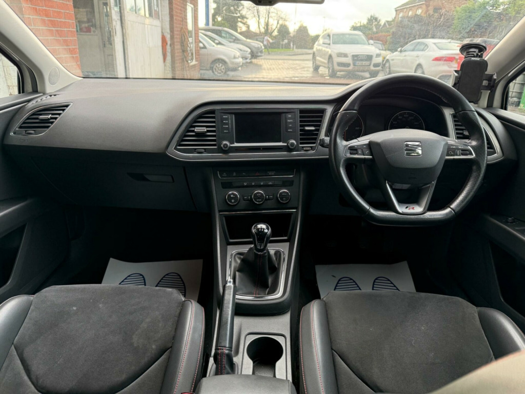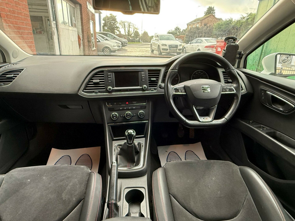 This 2014 SEAT Leon TDI FR offers a compelling blend of performance and practicality. Powered by a robust 2.0 litre diesel engine, this FR trim model is equipped with convenient Easy Entry front seats, making access effortless. Navigating tight spaces is made simple with front and rear parking sensors, complete with an optical parking system that visually guides you. Furthermore, enjoy seamless connectivity and entertainment through Bluetooth audio streaming.Experience impressive acceleration with this Leon, achieving 0 to 62 miles per hour in just 7.4 seconds, demonstrating its dynamic capabilities. This swift performance, combined with its generous boot space, positions this SEAT Leon TDI FR as a superior choice for those seeking both excitement and everyday usability. v power supply in centre console - front, 17in alloy wheels - dynamic, 3.5in monochrome drivers display, aux-in port, active front head restraints, airbags - curtain, airbags - driver, airbags - front passenger, alarm - perimeter tow away protection, ambient spot lighting and footwell illumination, anti-lock braking system - abs, armrest - front with storage compartment, automatic post-collision braking system, bluetooth audio streaming, body-coloured door handles, bumpers - exclusive fr front and rear, child locks on rear doors, cruise control, cupholders - front x2, dark tinted rear windows, daytime running lights - halogen, deadlocks, door mirrors - electrically folding with reverse activated kerb-view function, door mirrors - with integrated led indicators, door sill trim - aluminium, drivers knee airbag, dual zone climate control, dust and pollen filter, eba - electronic brake assist, easy entry front seats, electric windows - front with one-touch and anti-squeeze, electro-mechanical power steering - speed-sensitive, electronic differential lock system - xds, electronic stability control - esc, emergency tyre repair kit, exhaust pipe - twin chrome finished, exterior temperature indicator, fm-am radio, front fog lights with cornering function, front parking sensors, front passenger airbag de-activation, front side airbags, fuel filler flap linked to central locking, gearshift indicator, gloss black pillars, head restraints - height adjustable front, head restraints - height adjustable rear x3, headlights - coming home function, headlights - electric range adjustment, headlights - twin halogen, height adjustable passenger seat, height and reach adjustable steering wheel, height-adjustable drivers seat, hill hold control, isofix points with top tether on rear seats, illuminated boot, illuminated glovebox, inserts - dash - chrome detailing, instrument lighting with brightness control, integrated bluetooth handsfree system, led taillights, leather gear knob, leather handbrake, leatherette bolsters, lights left on warning buzzer, locking wheel bolts, low fuel warning light, luggage compartment - rings, mp3 compatible cd player, parking sensors - front and rear with optical parking system, passenger door mirror with kerb function when reversing, radiator grille - chrome centre surround, reading light - front and rear, rear parking sensors, rear wiper, remote central locking, remote key - folding x2 with remote window functionality, sd card slot, seat drive profile - sport-comfort-eco-individual, seat logo tailgate release, seatbelt reminder - front, seats - front lumbar adjustment, seats - pockets on front backrest, seats - split folding rear, seats - sports, speakers x8, sports suspension, steering wheel - flat-bottomed perforated leather with red stitching and fr logo, steering wheel mounted audio and phone controls, storage box under front seat, sunvisors with illuminated vanity mirrors, sunvisors with vanity mirrors, tcs - traction control system, touch screen - colour 5in, trip computer, tyre pressure monitoring system, usb port
