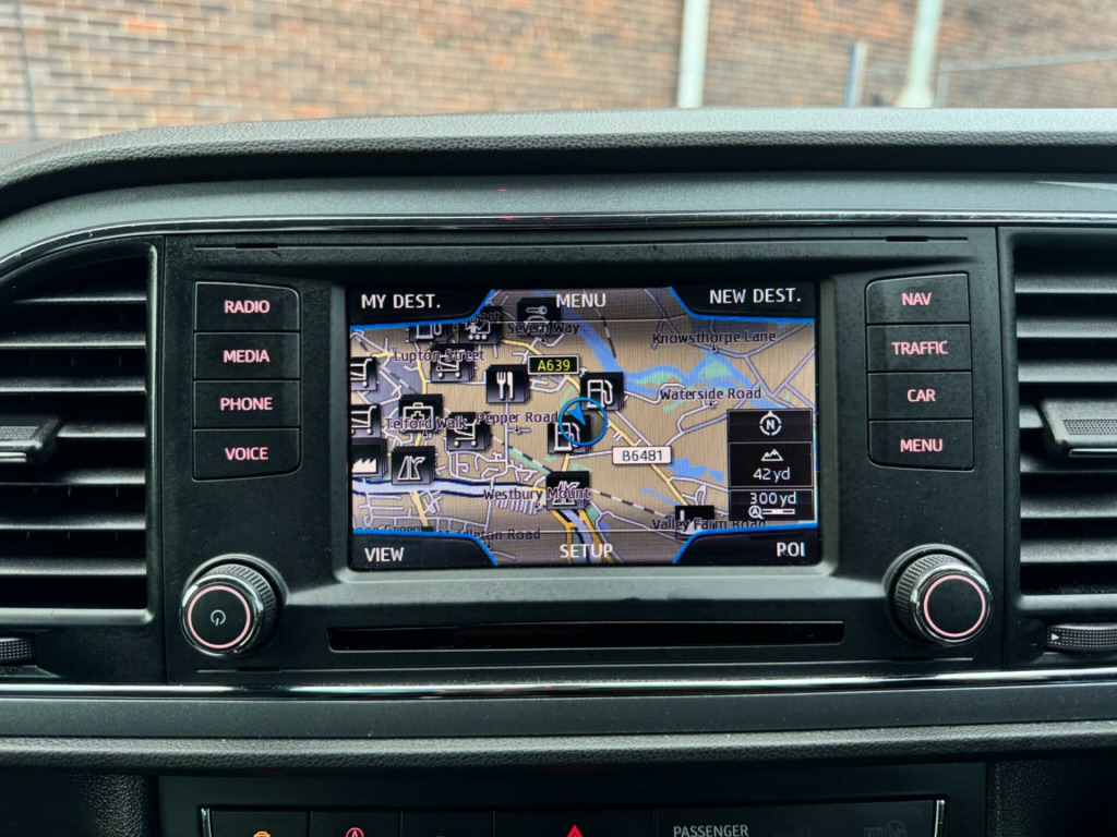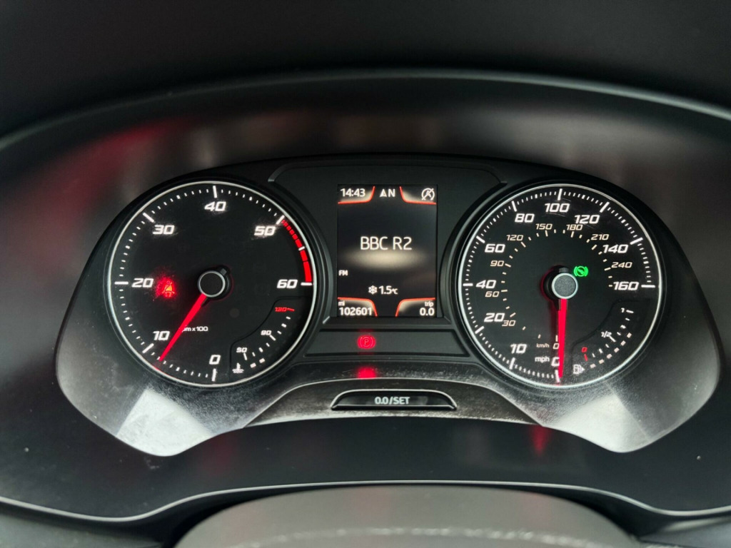 With a full service history and an MOT valid until November 2026, this 2014 SEAT Leon TDI FR offers excellent provenance. This particular model, with its 2.0 litre diesel engine and FR trim, benefits from a clear vehicle history check and a 3 month warranty for your peace of mind. Inside, you'll find the FR Dynamic Pack and LED Interior Illumination Pack, alongside a Navigation System and rear parking sensors that work in conjunction with front and rear parking sensors and an optical parking system to assist you.This SEAT Leon stands out with its impressive fuel economy, achieving a remarkable 63 mpg, which is better than many similar vehicles. Its low CO2 emissions and low insurance group also contribute to lower running costs. Furthermore, this Leon offers a 0-62mph acceleration time of just 8.6 seconds, demonstrating its responsive performance, and provides generous boot space for all your needs. vigation system, space saving spare wheel - 16in, fr dynamic pack, led interior illumination pack, 12v power supply in centre console - front, 12v power supply in luggage compartment, 17in alloy wheels - dynamic, 3.5in monochrome drivers display, aux-in port, active front head restraints, airbags - curtain, airbags - driver, airbags - front passenger, alarm - perimeter tow away protection, ambient spot lighting and footwell illumination, anti-lock braking system - abs, armrest - front with storage compartment, armrest - rear, automatic post-collision braking system, bluetooth audio streaming, body-coloured door handles, bumpers - exclusive fr front and rear, child locks on rear doors, chrome loading sill, cruise control, cupholders - front x2, dark tinted rear windows, daytime running lights - halogen, deadlocks, door mirrors - electrically folding with reverse activated kerb-view function, door mirrors - with integrated led indicators, door sill trim - aluminium, double boot floor, drivers knee airbag, dual zone climate control, dust and pollen filter, eba - electronic brake assist, easy rear seat-back release mechanism, electric windows - front and rear with one-touch and anti-squeeze, electro-mechanical power steering - speed-sensitive, electronic differential lock system - xds, electronic stability control - esc, emergency tyre repair kit, exhaust pipe - twin chrome finished, exterior temperature indicator, fm-am radio, front fog lights with cornering function, front parking sensors, front passenger airbag de-activation, front side airbags, fuel filler flap linked to central locking, gearshift indicator, gloss black pillars, head restraints - height adjustable front, head restraints - height adjustable rear x3, headlights - coming home function, headlights - electric range adjustment, headlights - twin halogen, height adjustable passenger seat, height and reach adjustable steering wheel, height-adjustable drivers seat, hill hold control, isofix points with top tether on rear seats, illuminated boot, illuminated glovebox, inserts - dash - chrome detailing, instrument lighting with brightness control, integrated bluetooth handsfree system, led taillights, leather gear knob, leather handbrake, leatherette bolsters, lights left on warning buzzer, locking wheel bolts, low fuel warning light, luggage compartment - net, luggage compartment - rings, mp3 compatible cd player, parking sensors - front and rear with optical parking system, passenger door mirror with kerb function when reversing, radiator grille - chrome centre surround, reading light - front and rear, rear parking sensors, rear wiper, remote central locking, remote key - folding x2 with remote window functionality, roof rails - chrome, sd card slot, seat drive profile - sport-comfort-eco-individual, seat logo tailgate release, seatbelt reminder - front, seats - front lumbar adjustment, seats - pockets on front backrest, seats - split folding rear, seats - sports, speakers x8, sports suspension, steering wheel - flat-bottomed perforated leather with red stitching and fr logo, steering wheel mounted audio and phone controls, storage box under front seat, sunvisors with illuminated vanity mirrors, sunvisors with vanity mirrors, tcs - traction control system, tonneau cover, touch screen - colour 5in, trip computer, tyre pressure monitoring system, usb port