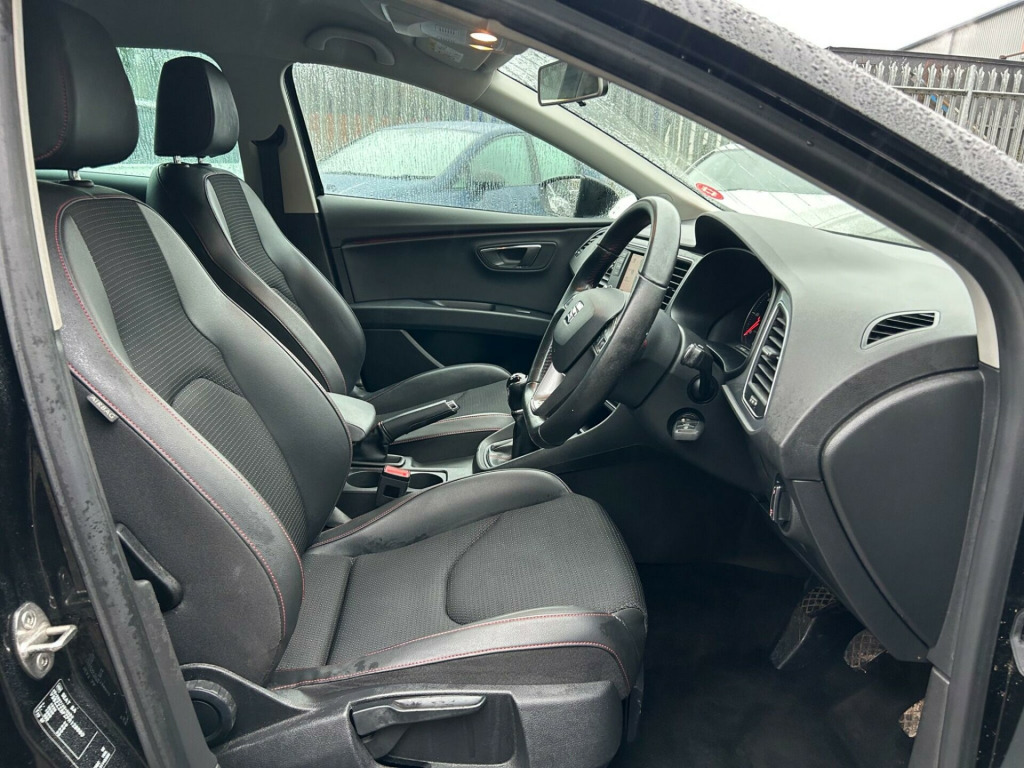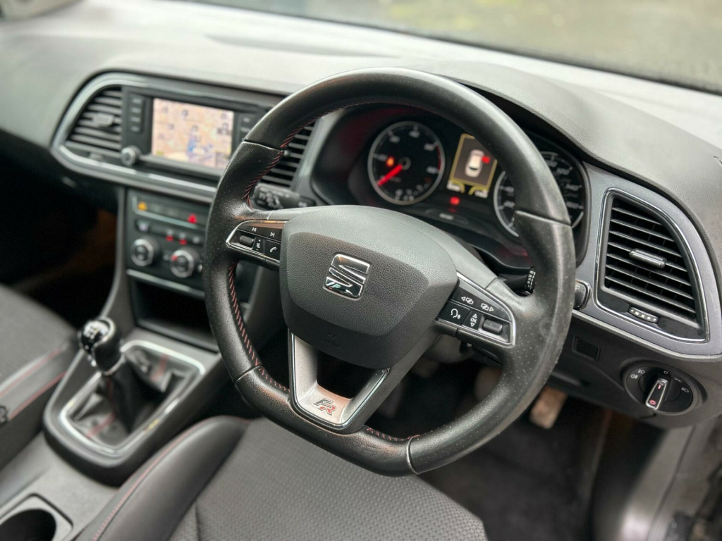 1 Former Keeper, Hpi Clear With Warranted Mileage, 2 Keys, Full Service History Including Timing Belt And Water Pump Done, MOT Until 20/11/2026, Interior And Exterior In Great Condition Throughout, High Specification With Satellite Navigation, Xenon Headlights, Front And Rear Parking Sensors, Telephone And Audio Bluetooth, LED Daytime Running Lights (DRL), Rear Privacy Glass, Alloy Wheels With Good Tyres All Around, Electric Power-Folding Wing Mirrors, Cruise Control, Sport Interior With Leather Bolsters complimented With Red Stitching, 'FR' Engraved Flat Bottom Leather Trimmed Multi-functional Steering Wheel, Cruise Control, Premium Colour Infotainment Touch Screen Display, Premium Stereo With Dab Radio, CD Player And SD Card Reader, 6 Speed Manual Gearbox, 4 x Electric Windows And Electric Door Side Mirrors, Auto Dual Climate Control With Air Conditioning, Centre Console, Isofix Points, Front And Rear Armrests Plus All The Standard Features Of A SEAT Leon 2.0 TDI CR FR Sport, ALL CARS COME WITH 3 MONTHS WARRANTY, ALL CARS CONSIDERED IN PART EXCHANGE , PLEASE CALL TO BOOK INSPECTIONS/TEST DRIVES , LINES OPEN TILL LATE, EXTENDED WARRANTY AVAILABLE , TOP RATED COMPANY FOR OVER 7 YEARS - BUY WITH CONFIDENCE , ALSO DELIVERING NATIONWIDE. 12V Power Supply in Centre Console - Front, 12V Power Supply in Luggage Compartment, 17in Alloy Wheels - Dynamic, 3.5in Monochrome Drivers Display, AUX-In Port, Active Front Head Restraints, Airbags - Curtain, Airbags - Driver, Airbags - Front Passenger, Alarm - Perimeter Tow Away Protection, Ambient Spot Lighting and Footwell Illumination, Anti-Lock Braking System - ABS, Armrest - Front with Storage Compartment, Armrest - Rear, Automatic Post-Collision Braking System, Bluetooth Audio Streaming, Body-Coloured Door Handles, Bumpers - Exclusive FR Front and Rear, Child Locks on Rear Doors, Chrome Interior Decorative Mouldings, Chrome Loading Sill, Cruise Control, Cupholders - Front x2, Dark Tinted Rear Windows, Daytime Running Lights - Halogen, Deadlocks, Door Mirrors - Electrically Folding with Reverse Activated Kerb-View Function, Door Mirrors - with Integrated LED Indicators, Door Sill Trim - Aluminium, Double Boot Floor, Drivers Knee Airbag, Dual Zone Climate Control, Dust and Pollen Filter, EBA - Electronic Brake Assist, Easy Connect System, Easy Rear Seat-back Release Mechanism, Electric Windows - Front and Rear with One-Touch and Anti-Squeeze, Electro-Mechanical Power Steering - Speed-Sensitive, Electronic Differential Lock System - XDS, Electronic Stability Control - ESC, Emergency Tyre Repair Kit, Exhaust Pipe - Twin, Exterior Temperature Indicator, FM-AM Radio, Front Fog Lights with Cornering Function, Front Parking Sensors, Front Passenger Airbag De-Activation, Front Side Airbags, Gearshift Indicator, Gloss Black Pillars, Head Restraints - Height Adjustable Front, Head Restraints - Height Adjustable Rear x3, Headlights - Electric Range Adjustment, Headlights - Twin Halogen, Height Adjustable Passenger Seat, Height and Reach Adjustable Steering Wheel, Height-Adjustable Drivers Seat, Hill Hold Control, ISOFIX Points with Top Tether on Rear Seats, Illuminated Boot, Illuminated Glovebox, Inserts - Dash - Chrome Detailing, Instrument Lighting with Brightness Control, Integrated Bluetooth Handsfree System, LED Taillights, Leather Gear Knob, Leather Handbrake, Leatherette Bolsters, Lights Left On Warning Buzzer, Locking Wheel Bolts, Luggage Compartment - Rings, MP3 Compatible CD Player, Parking Sensors - Front and Rear with Optical Parking System, Passenger Door Mirror with Kerb Function when Reversing, Radiator Grille - Chrome Centre Surround, Reading Light - Front and Rear, Rear Parking Sensors, Rear Wiper, Remote Central Locking, Remote Key - Folding x2 with Remote Window Functionality, Roof Rails - Chrome, SEAT Drive Profile - Sport-Comfort-Eco-Individual, SEAT Logo Tailgate Release, Seatbelt Reminder - Front, Seats - Front Lumbar Adjustment, Seats - Pockets on Front Backrest, Seats - Split Folding Rear, Seats - Sports, Speakers x8, Sports Suspension, Steering Wheel - Flat-Bottomed Perforated Leather with Red Stitching and FR Logo, Steering Wheel Mounted Audio and Phone Controls, Sunvisors with Illuminated Vanity Mirrors, Sunvisors with Vanity Mirrors, TCS - Traction Control System, Tonneau Cover, Touch Screen - Colour 5in, Trip Computer, Tyre Pressure Monitoring System, USB Port, Voice Control - In Car Entertaintment.