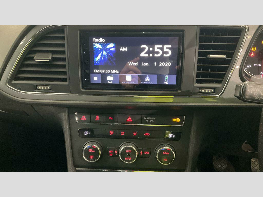 3 FORMER KEEPERSERVICE HISTORY - 9 SERVICES - 2 MAIN DEALER SERVICES - MOST RECENT SERVICE DONE 95,525£20 TAX FOR THE YEAREquipment:Non OEM I.C.E./NAV SystemParking Sensor(s)Climate ControlHalf Leather TrimAlloy WheelsThis 2016 SEAT Leon TDI FR offers an exceptional blend of performance and economy, boasting an impressive 69 miles per gallon. This particular model is presented in the FR trim, featuring a robust 2.0 litre diesel engine. For your convenience, it comes equipped with a comprehensive parking assistance system, including front and rear parking sensors with an optical parking display, alongside integrated Bluetooth for handsfree calls and audio streaming.The SEAT Leon TDI FR stands out with its low CO2 emissions and a low insurance group, making it an economical choice. Its acceleration from 0 to 62 miles per hour in just 8.6 seconds demonstrates its responsive performance. Furthermore, the generous boot space ensures practicality for everyday use and longer journeys, highlighting its advantage over many similar vehicles. v power supply in centre console - front, 12v power supply in luggage compartment, 17in alloy wheels - dynamic, 3.5in monochrome drivers display, aux-in port, active front head restraints, airbags - curtain, airbags - driver, airbags - front passenger, alarm - perimeter tow away protection, ambient spot lighting and footwell illumination, anti-lock braking system - abs, armrest - front with storage compartment, armrest - rear, automatic post-collision braking system, bluetooth audio streaming, body-coloured door handles, bumpers - exclusive fr front and rear, child locks on rear doors, chrome interior decorative mouldings, chrome loading sill, cruise control, cupholders - front x2, dark tinted rear windows, daytime running lights - halogen, deadlocks, door mirrors - electrically folding with reverse activated kerb-view function, door mirrors - with integrated led indicators, door sill trim - aluminium, double boot floor, drivers knee airbag, dual zone climate control, dust and pollen filter, eba - electronic brake assist, easy connect system, easy rear seat-back release mechanism, electric windows - front and rear with one-touch and anti-squeeze, electro-mechanical power steering - speed-sensitive, electronic differential lock system - xds, electronic stability control - esc, emergency tyre repair kit, exhaust pipe - twin, exterior temperature indicator, fm-am radio, front fog lights with cornering function, front parking sensors, front passenger airbag de-activation, front side airbags, gearshift indicator, gloss black pillars, head restraints - height adjustable front, head restraints - height adjustable rear x3, headlights - electric range adjustment, headlights - twin halogen, height adjustable passenger seat, height and reach adjustable steering wheel, height-adjustable drivers seat, hill hold control, isofix points with top tether on rear seats, illuminated boot, illuminated glovebox, inserts - dash - chrome detailing, instrument lighting with brightness control, integrated bluetooth handsfree system, led taillights, leather gear knob, leather handbrake, leatherette bolsters, lights left on warning buzzer, locking wheel bolts, luggage compartment - rings, mp3 compatible cd player, parking sensors - front and rear with optical parking system, passenger door mirror with kerb function when reversing, radiator grille - chrome centre surround, reading light - front and rear, rear parking sensors, rear wiper, remote central locking, remote key - folding x2 with remote window functionality, roof rails - chrome, seat drive profile - sport-comfort-eco-individual, seat logo tailgate release, seatbelt reminder - front, seats - front lumbar adjustment, seats - pockets on front backrest, seats - split folding rear, seats - sports, speakers x8, sports suspension, steering wheel - flat-bottomed perforated leather with red stitching and fr logo, steering wheel mounted audio and phone controls, sunvisors with illuminated vanity mirrors, sunvisors with vanity mirrors, tcs - traction control system, tonneau cover, touch screen - colour 5in, trip computer, tyre pressure monitoring system, usb port, voice control - in car entertaintment