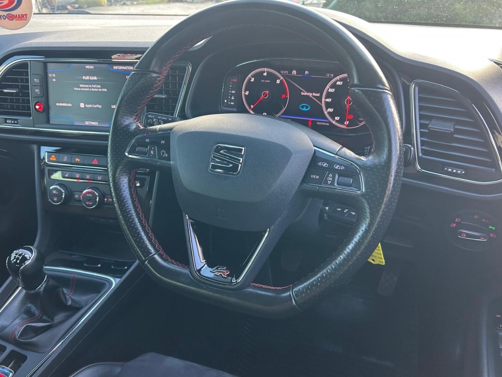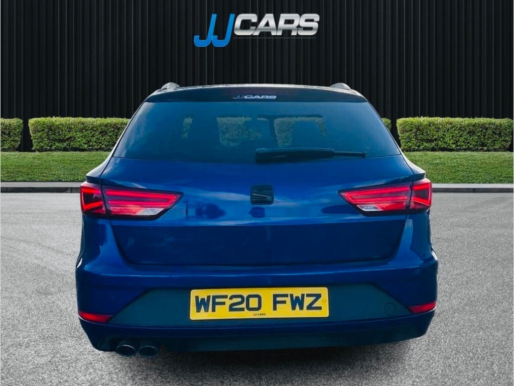 This 2020 SEAT Leon 2.0 TDI FR Black Edition Estate has had 102,000 miles driven and runs on diesel. With an MOT valid until 09/07/2026 and ULEZ compliance, this 5-door estate vehicle comfortably seats 5 passengers. It includes features such as a 12V power supply in the center console, Media System Plus, Navigation System, and SEAT Full Link Smartphone Integration. The car is equipped with 18-inch alloy wheels and boasts a sleek Matte 30-2 exterior. With 150 PS, this manual Euro 6 (s/s) vehicle is a practical and stylish choice for those in search of a reliable diesel estate car. v power supply in centre console, media system plus, navigation system, seat full link smartphone integration - mirror link - apple carplay - google android auto, 18in alloy wheels - performance matte 30-2, bumpers - exclusive fr front and rear, dark tinted rear windows, electrically adjustable folding and heated door mirrors, emergency tyre repair kit, front and rear electric windows, matte black door mirrors with integrated led indicators, radiator grille frame in matte black, radiator grille in black, roof rails - black, visual twin exhaust pipes, 7 airbags, abs and traction control system - tcs - electronic stability control - esc - and electronic differential lock system - xds, alarm - volumetric, electric parking brake including autohold function, front assist with pedestrian protection, isofix points in outer rear seats with top tether anchorage points, multi-collision braking system, seatbelt reminder - front, armrest - front with storage compartment, black interior roof lining, convenience pack plus, digital cockpit, driver and passenger seat height adjustment, driver and passenger sunvisor with covered and illuminated mirrors, drivers seat lumbar adjustment, dual zone climate control, front seat back storage pockets, front sports seats, illuminated aluminium front door sill with trim logo, instrument lighting with brightness control, led interior illumination pack, leather gear knob, multi coloured ambient lighting, seats - passenger lumbar adjustment, split folding rear seats 60-40 with armrest, steering wheel - flat-bottomed perforated leather with red stitching and fr logo, storage box under driver and front passenger seat, two height-adjustable front and rear headrests, winter pack, cruise control, digital clock, electro-mechanical progressive power steering, front and rear parking sensors, gearshift indicator, low fuel warning light, outside temperature gauge, rpm counter, seat drive profile, sports suspension, trip computer, tyre pressure monitoring system, full led headlights, lights left on warning buzzer