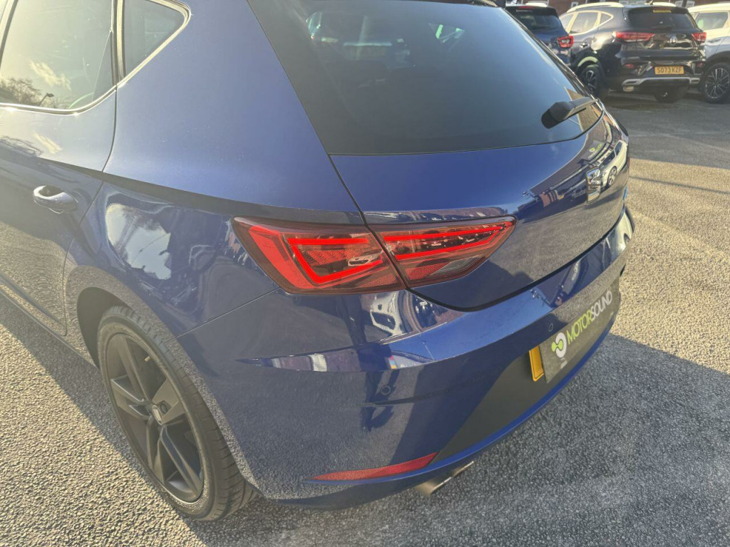 . 12V Power Supply in Centre Console, 17in Alloy Wheels - Dynamic 30-2, 7 Airbags, ABS and Traction Control System - TCS - Electronic Stability Control - ESC - and Electronic Differential Lock System - XDS, Alarm - Volumetric, Armrest - Front with Storage Compartment, Body-Coloured Door Mirrors with Integrated LED Indicators, Bumpers - Exclusive FR Front and Rear, Convenience Pack Plus, Cruise Control, Dark Tinted Rear Windows, Digital Clock, Driver and Passenger Seat Height Adjustment, Driver and Passenger Sunvisor with Covered and Illuminated Mirrors, Drivers Seat Lumbar Adjustment, Dual Zone Climate Control, Electric Parking Brake Including Autohold Function, Electrically Adjustable Folding and Heated Door Mirrors, Electro-Mechanical Progressive Power Steering, Emergency Tyre Repair Kit, Front and Rear Electric Windows, Front and Rear Parking Sensors, Front Assist with Pedestrian Protection, Front Seat Back Storage Pockets, Front Sports Seats, Full LED Headlights, Gearshift Indicator, Illuminated Aluminium Front Door Sill with Trim Logo, Instrument Lighting with Brightness Control, ISOFIX Points in Outer Rear Seats with Top Tether Anchorage Points, Leather Gear Knob, LED Interior Illumination Pack, Lights Left On Warning Buzzer, Low Fuel Warning Light, Media System Plus, Multi Coloured Ambient Lighting, Multi-Collision Braking System, Navigation System, Outside Temperature Gauge, Radiator Grille Frame in Chrome, Radiator Grille in Black, RPM Counter, SEAT Drive Profile, SEAT Full Link Smartphone Integration - Mirror Link - Apple CarPlay - Google Android Auto, Seatbelt Reminder - Front, Seats - Passenger Lumbar Adjustment, Sports Suspension, Steering Wheel - Flat-Bottomed Perforated Leather with Red Stitching and FR Logo, Storage Box Under Drivers Seat, Trip Computer, Two Height-Adjustable Front and Rear Headrests, Tyre Pressure Monitoring System, Visual Twin Exhaust Pipes.