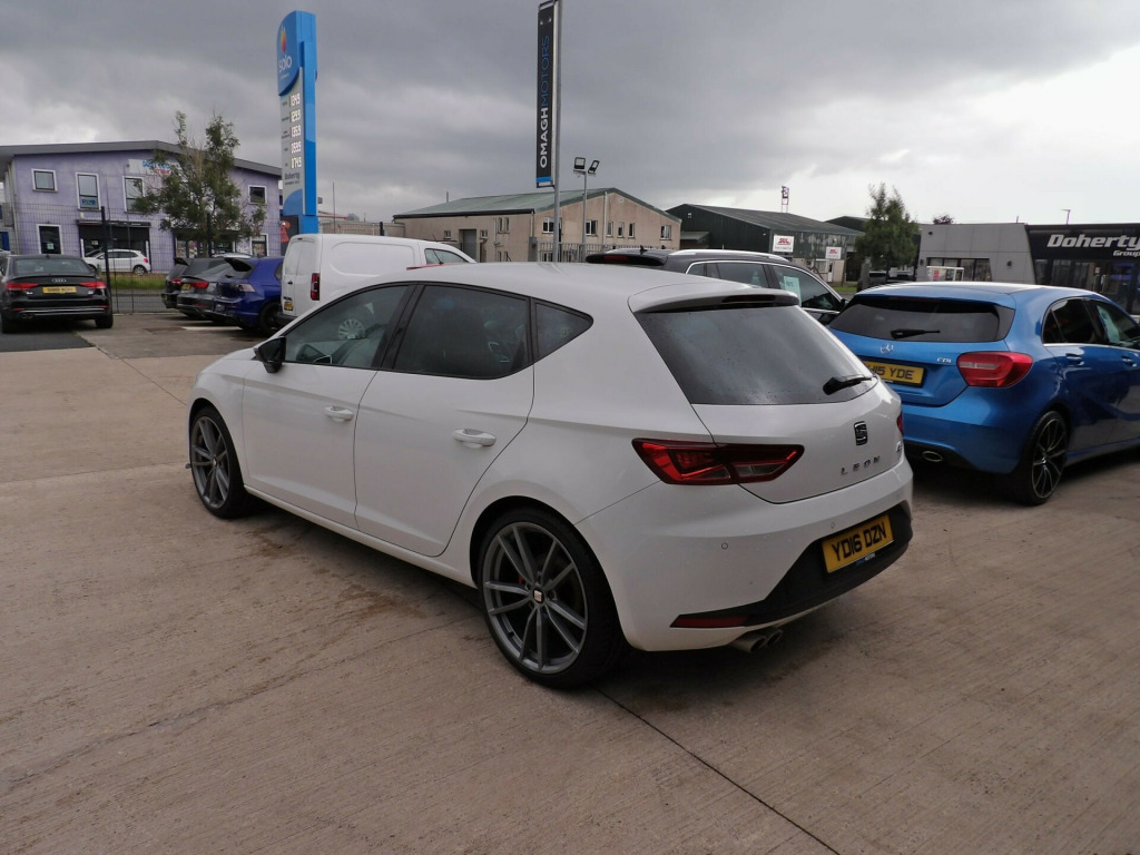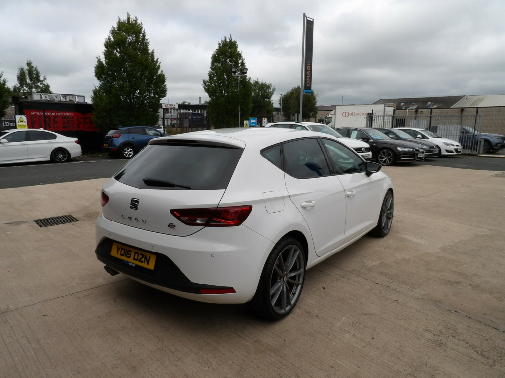 For sale is a 2016 SEAT Leon 2.0 TDI FR Hatchback with 83,465 miles on the clock. This diesel vehicle is ULEZ compliant and comes with an MOT that expires on 28/11/2025. It boasts 5 doors, 5 seats, and a hatchback design, offering plenty of space and practicality. The car is equipped with a DSG Euro 6 (s/s) (184 ps) engine, providing powerful yet efficient performance. Inside, you'll find features such as a 12 Volt Power Supply in the Centre Console, 3.5in Drivers Display, Anti-Theft Roof Antenna, Bluetooth Phone Connection, and Media System Colour, making for a convenient and enjoyable driving experience. Whether for daily commutes or weekend getaways, this SEAT Leon is a reliable and stylish choice. volt power supply in centre console, 3.5in drivers display, anti-theft roof antenna, bluetooth phone connection, media system colour, speakers x8, 17in alloy wheels - dynamic, body-coloured door handles, body-coloured door mirrors with integrated led indicators, bumpers - exclusive fr front and rear, dark tinted rear windows, electric windows - front with one-touch and anti-squeeze, electric windows - rear with one touch and anti-squeeze, electrically folding door mirrors, emergency tyre repair kit, exhaust pipe - twin, front grille frame - chrome, gloss black pillars, locking wheel bolts, passenger door mirror with kerb function when reversing, seat logo tailgate release, tinted windows, abs - anti-lock braking system and tcs traction control system with de-activation, alarm - perimeter and interior monitoring with back-up horn and tow-away protection, automatic warning lights, child locks on rear doors, driver and front passenger airbags, drivers knee airbag, esc - electronic stability control with eba - emergency brake assist, electronic engine immobiliser, front assist, front passenger airbag de-activation, front side airbags, hill hold control, isofix points in outer rear seats with top tether anchorage points, multi-collision braking system, rear wash - wipe, remote central locking with deadlocks, seatbelt reminder - front, three-point seat belts, two curtain airbags, two remote keys with window open-close - door mirror folding and boot opening functionality, visible vin in windscreen, active front head restraints, additional heating-ventilation outlet in rear centre console, aluminium front door sill trims with fr logo, ambient spot lighting and footwell illumination, cargo rings in the boot, chrome interior dashboard detailing, chrome interior decorative mouldings, cupholders - front centre console x2, driver and passenger sunvisor with covered and illuminated mirrors, drivers seat lumbar adjustment, dual zone climate control, dust and pollen filter, front armrest - height and reach adjustable with storage compartment, front courtesy light with front and rear reading lights, front seat back storage pockets, fuel filler flap linked to central locking, head restraints - height adjustable front, head restraints - height adjustable rear x3, height adjustable passenger seat, height and reach adjustable steering wheel, height-adjustable drivers seat, illuminated boot, instrument lighting with brightness control, interior ambient lighting - door panel, leather gear knob, leather handbrake, rear courtesy light with rear reading lights, rear fog light, remote door mirror folding function, seats - passenger lumbar adjustment, seats - sports, split folding rear seats - 60-40, steering wheel - flat-bottomed perforated leather with red stitching and fr logo, steering wheel-mounted gearshift paddles, cruise control, electro-mechanical power steering - speed-sensitive, electronic differential lock system - xds, gearshift indicator, low fuel warning light, outside temperature gauge, rpm counter, rear parking sensors, seat drive profile with four different modes - eco-normal-sport-individual, sports suspension, trip computer, tyre pressure monitoring system, daytime running lights - halogen, front fog lights with cornering function, headlights - coming home function, led taillights, lights left on warning buzzer, twin-bulb front halogen headlights with electrical adjustment