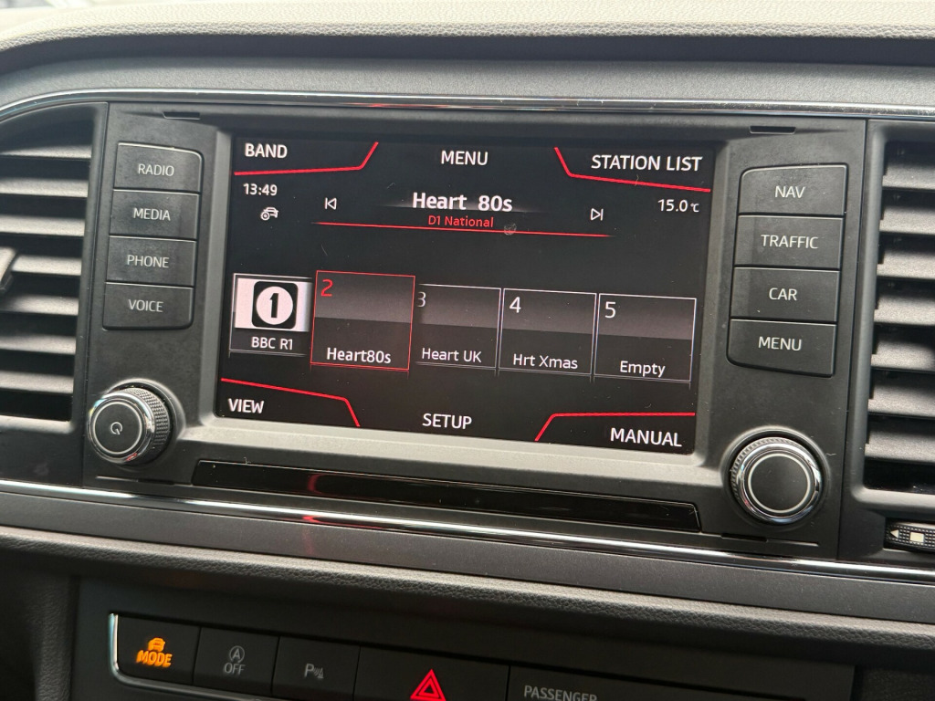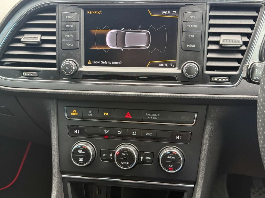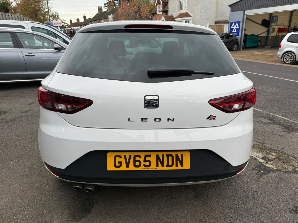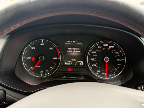 This 2016 SEAT Leon 2.0 TDI FR Hatchback boasts a powerful 2.0L diesel engine with 150 ps, and has only covered 36298 miles. With 5 doors and 5 seats, this ULEZ compliant hatchback is perfect for city driving. This comes with a new MOT, providing peace of mind for the next few years. Inside, it features a 3.5in drivers display and Bluetooth phone connection for convenience, as well as a media system colour for entertainment. The Anti-Theft roof antenna and 12 Volt Power Supply in the Centre Console are added security and convenience features. This reliable and efficient diesel hatchback is ready for a new owner to enjoy its spacious and practical design., volt power supply in centre console, 3.5in drivers display, anti-theft roof antenna, bluetooth phone connection, media system colour, speakers x8, 17in alloy wheels - dynamic, body-coloured door handles, body-coloured door mirrors with integrated led indicators, bumpers - exclusive fr front and rear, dark tinted rear windows, electric windows - front with one-touch and anti-squeeze, electric windows - rear with one touch and anti-squeeze, electrically folding door mirrors, emergency tyre repair kit, exhaust pipe - twin, front grille frame - chrome, gloss black pillars, locking wheel bolts, passenger door mirror with kerb function when reversing, seat logo tailgate release, tinted windows, abs - anti-lock braking system and tcs traction control system with de-activation, alarm - perimeter and interior monitoring with back-up horn and tow-away protection, automatic warning lights, child locks on rear doors, driver and front passenger airbags, drivers knee airbag, esc - electronic stability control with eba - emergency brake assist, electronic engine immobiliser, front assist, front passenger airbag de-activation, front side airbags, hill hold control, isofix points in outer rear seats with top tether anchorage points, multi-collision braking system, rear wash - wipe, remote central locking with deadlocks, seatbelt reminder - front, three-point seat belts, two curtain airbags, two remote keys with window open-close - door mirror folding and boot opening functionality, visible vin in windscreen, active front head restraints, additional heating-ventilation outlet in rear centre console, aluminium front door sill trims with fr logo, ambient spot lighting and footwell illumination, cargo rings in the boot, chrome interior dashboard detailing, chrome interior decorative mouldings, cupholders - front centre console x2, driver and passenger sunvisor with covered and illuminated mirrors, drivers seat lumbar adjustment, dual zone climate control, dust and pollen filter, front armrest - height and reach adjustable with storage compartment, front courtesy light with front and rear reading lights, front seat back storage pockets, fuel filler flap linked to central locking, head restraints - height adjustable front, head restraints - height adjustable rear x3, height adjustable passenger seat, height and reach adjustable steering wheel, height-adjustable drivers seat, illuminated boot, instrument lighting with brightness control, interior ambient lighting - door panel, leather gear knob, leather handbrake, rear courtesy light with rear reading lights, rear fog light, remote door mirror folding function, seats - passenger lumbar adjustment, seats - sports, split folding rear seats - 60-40, steering wheel - flat-bottomed perforated leather with red stitching and fr logo, cruise control, electro-mechanical power steering - speed-sensitive, electronic differential lock system - xds, gearshift indicator, low fuel warning light, outside temperature gauge, rpm counter, rear parking sensors, seat drive profile with four different modes - eco-normal-sport-individual, sports suspension, trip computer, tyre pressure monitoring system, daytime running lights - halogen, front fog lights with cornering function, headlights - coming home function, led taillights, lights left on warning buzzer, twin-bulb front halogen headlights with electrical adjustment, 12 months mot, 6 months nationwide warranty, aa dealer promise 12 months free breakdown cover