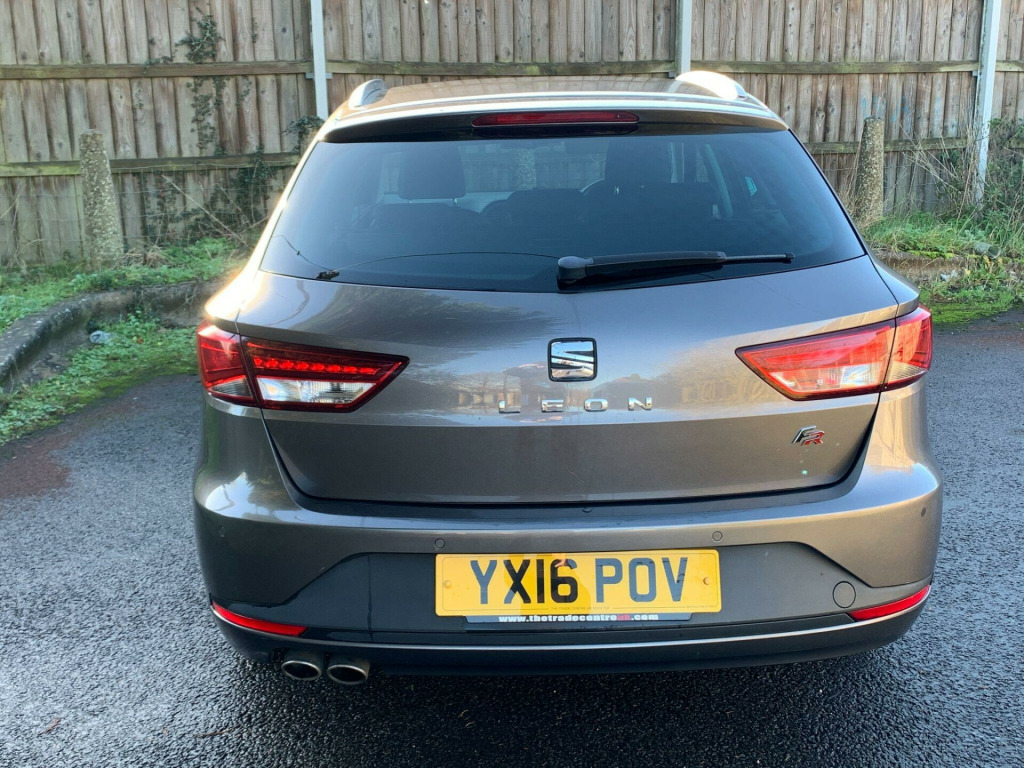 Here we have a 2016 SEAT Leon TDI FR Estate Sport Tourer finished in Metallic Grey covered 94,610 miles with excellent Full Service History Record with 11 Services carried out. This stunning FR Estate Sport Tourer is equipped with a 2.0 litre Euro 6 diesel engine, delivering an impressive 0-62mph in just 8.6 seconds. Inside, you'll find the FR trim which includes a Media System Colour with Bluetooth for seamless phone connectivity, rear parking sensors to aid manoeuvring, and dual zone climate control for personalised comfort.This SEAT Leon stands out with its remarkable fuel economy, achieving an outstanding 64 miles per gallon, and benefits from a low insurance group, making it an economical choice. Its low CO2 emissions further contribute to its cost effectiveness. You'll also appreciate the generous boot space, perfect for luggage or shopping. To provide peace of mind, this vehicle comes with a 3 month warranty and will be supplied with 12 months MOT upon purchase.. 12 Volt Power Supply in Boot, 12 Volt Power Supply in Centre Console, 17in Alloy Wheels - Dynamic, 3.5in Drivers Display, ABS - Anti-Lock Braking System and TCS Traction Control System with De-activation, Active Front Head Restraints, Additional Heating-Ventilation Outlet in Rear Centre Console, Alarm - Perimeter and Interior Monitoring with Back-up Horn and Tow-Away Protection, Aluminium Front Door Sill Trims with FR Logo, Ambient Spot Lighting and Footwell Illumination, Anti-Theft Roof Antenna, Armrest - Rear, Automatic Warning Lights, Bluetooth Phone Connection, Body-Coloured Door Handles, Body-Coloured Door Mirrors with Integrated LED Indicators, Bumpers - Exclusive FR Front and Rear, Cargo Rings in the Boot, Child Locks on Rear Doors, Chrome Interior Dashboard Detailing, Chrome Interior Decorative Mouldings, Chrome Loading Sill, Cruise Control, Cupholders - Front Centre Console x2, Dark Tinted Rear Windows, Daytime Running Lights - Halogen, Driver and Front Passenger Airbags, Driver and Passenger Sunvisor with Covered and Illuminated Mirrors, Drivers Knee Airbag, Drivers Seat Lumbar Adjustment, Dual Zone Climate Control, Dust and Pollen Filter, ESC - Electronic Stability Control with EBA - Emergency Brake Assist, Easy Rear Seat-back Release Mechanism, Electric Windows - Front with One-Touch and Anti-Squeeze, Electric Windows - Rear with One Touch and Anti-Squeeze, Electrically Folding Door Mirrors, Electro-Mechanical Power Steering - Speed-Sensitive, Electronic Differential Lock System - XDS, Electronic Engine Immobiliser, Emergency Tyre Repair Kit, Exhaust Pipe - Twin, Front Armrest - Height and Reach Adjustable with Storage Compartment, Front Assist, Front Courtesy Light with Front and Rear Reading Lights, Front Fog Lights with Cornering Function, Front Grille Frame - Chrome, Front Passenger Airbag De-Activation, Front Seat Back Storage Pockets, Front Side Airbags, Fuel Filler Flap linked to Central Locking, Gearshift Indicator, Gloss Black Pillars, Head Restraints - Height Adjustable Front, Head Restraints - Height Adjustable Rear x3, Headlights - Coming Home Function, Height Adjustable Passenger Seat, Height and Reach Adjustable Steering Wheel, Height-Adjustable Drivers Seat, Hill Hold Control, ISOFIX Points in Outer Rear Seats with Top Tether Anchorage Points, Illuminated Boot, Instrument Lighting with Brightness Control, Interior Ambient Lighting - Door Panel, LED Taillights, Leather Gear Knob, Leather Handbrake, Lights Left On Warning Buzzer, Locking Wheel Bolts, Low Fuel Warning Light, Luggage Compartment Cover, Media System Colour, Multi-Collision Braking System, Outside Temperature Gauge, Passenger Door Mirror with Kerb Function when Reversing, RPM Counter, Rear Courtesy Light with Rear Reading Lights, Rear Fog Light, Rear Parking Sensors, Rear Wash - Wipe, Remote Central Locking with Deadlocks, Remote Door Mirror Folding Function, Roof Rails - Chrome, SEAT Drive Profile with Four Different Modes - Eco-Normal-Sport-Individual, SEAT Logo Tailgate Release, Seatbelt Reminder - Front, Seats - Passenger Lumbar Adjustment, Seats - Sports, Speakers x8, Split Folding Rear Seats - 60-40, Sports Suspension, Steering Wheel - Flat-Bottomed Perforated Leather with Red Stitching and FR Logo, Three-Point Seat Belts, Tinted Windows, Trip Computer, Twin-Bulb Front Halogen Headlights with Electrical Adjustment, Two Curtain Airbags, Two Remote Keys with Window Open-Close - Door Mirror Folding and Boot Opening Functionality, Two-tier Boot Floor, Tyre Pressure Monitoring System, Visible VIN in Windscreen. Full service history