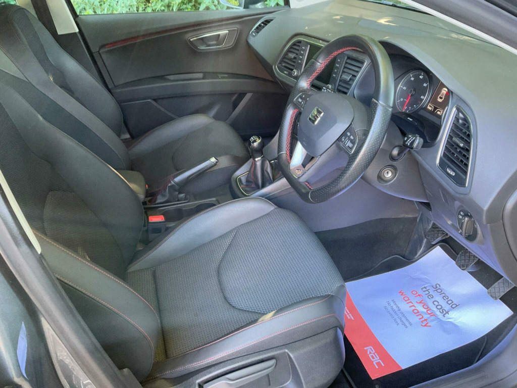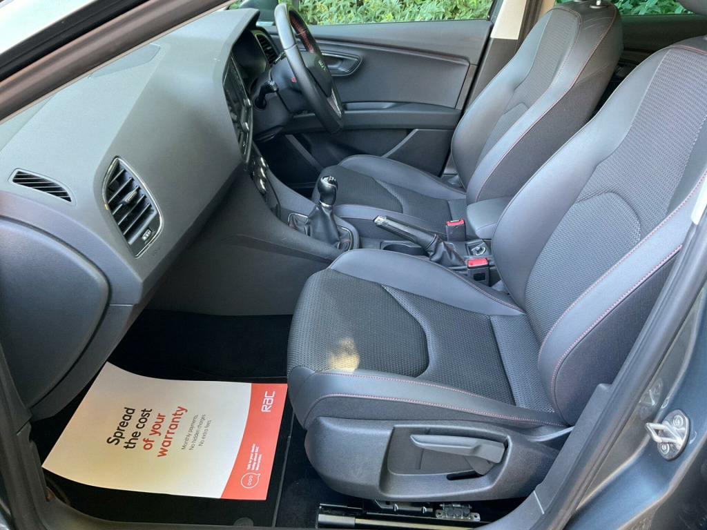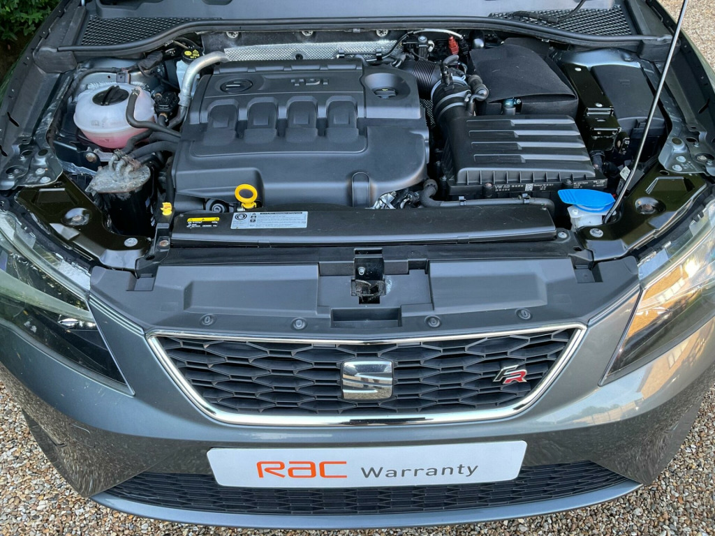 Fantastic condition throughout, recent cam belt kit and water pump replaced in march, this car will be supplied with a new mot, service and six months RAC warranty on receipt of a deposit, This 2017 SEAT Leon TDI FR Technology presents an exceptional ownership proposition with only two previous owners and a remarkably low mileage of 79,561 miles for its age. Powered by an efficient 2.0 litre Euro 6 diesel engine, this FR Technology model offers a compelling blend of performance and economy, achieving 0-62mph in a brisk 7.5 seconds. Inside, you'll find the advanced Media System Plus with Bluetooth connectivity, allowing for seamless audio streaming and calls, complemented by the convenience of Full Link, which includes Android Auto and Apple CarPlay for effortless smartphone integration.Further enhancing your driving experience, this Leon is equipped with Dual Zone Climate Control to ensure comfort for all occupants, and Full LED Headlights for superior visibility. Practicality is also a key consideration, with rear parking sensors and parking assistance making manoeuvring easier, and a generous boot space providing ample room for luggage or shopping. These features, combined with its impressive acceleration and low mileage, clearly distinguish this SEAT Leon from other vehicles in its class.,  v power supply in centre console, 17in alloy wheels - dynamic, 3.5in drivers display, 7 airbags, abs - anti-lock braking system - tcs - traction control system, active front head restraints and 3 rear head restraints, alarm - perimeter and interior monitoring with back-up horn and tow-away protection, aluminium front door sill trims with fr logo, body-coloured door handles, body-coloured door mirrors with integrated led indicators, boot storage net, bumpers - exclusive fr front and rear, cargo rings in the boot, cruise control, dark tinted rear windows, driver and passenger seat height adjustment, driver and passenger sunvisor with covered and illuminated mirrors, drivers seat lumbar adjustment, dual zone climate control, esc - electronic stability control and tyre pressure warning light indicator, electric parking brake including autohold function, electrically folding door mirrors, electro-mechanical power steering, electronic differential lock system - xds, emergency tyre repair kit, exhaust pipe - twin, front assist with pedestrian protection, front seat back storage pockets, front sports seats, front and rear electric windows, fuel filler flap linked to central locking, full led headlights, full link, gearshift indicator, head restraints - height adjustable front, high centre console, high gloss black b and c pillars, hill hold control, isofix points in outer rear seats with top tether anchorage points, illuminated glovebox, instrument lighting with brightness control, interior chrome detailing, leather gear knob, lights left on warning buzzer, low fuel warning light, lower suspension - 15mm, media system plus, multi coloured ambient lighting, multi-collision braking system, navigation system, outside temperature gauge, rpm counter, radiator grille frame in chrome, radiator grille in black, reading lights front and rear with ambient spots - boot lights and illuminated foot area, rear parking sensors, remote central locking with deadlocks, seat drive profile, seatbelt reminder - front, seats - passenger lumbar adjustment, split folding rear seats - 60-40, sports suspension, steering wheel - flat-bottomed perforated leather with red stitching and fr logo, storage box under driver and front passenger seat, trip computer, two remote keys with window open-close - door mirror folding and boot opening functionality