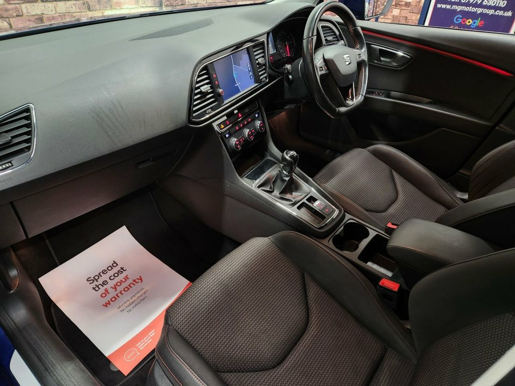 MG Motor Group are pleased to offer this stunning Seat Leon 2.0 TDI FR Technology finished in Mystery Blue with Black Cloth interior. 2 keys with comprehensive service history, this includes a recent service carried out in house and a timing belt replacement in 2024. Excellent condition throughout and a true credit to its previous owners. Great spec that includes 18 inch Alloy Wheels, LED Daytime Running Lights, Rear Parking Sensors, Tow Bar, Smartphone Integration, Sat Nav, Bluetooth Connectivity, Cruise Control, Dual Zone Climate Control and much more. 18in Alloy Wheels - Performance 30-3, Techny Cloth - Black, Mystery Blue, 12V Power Supply in Centre Console, 17in Alloy Wheels - Dynamic 30-2, 2 Boot Storage Net - Left and Right, 7 Airbags, ABS - Anti-Lock Braking System - TCS - T, Active Front Head Restraints and 3 Rear , Aluminium Front Door Sill Trims with FR , Body-Coloured Door Handles, Body-Coloured Door Mirrors with Integrat, Bumpers - Exclusive FR Front and Rear, Chrome Loading Sill, Cruise Control, Dark Tinted Rear Windows, Driver and Passenger Seat Height Adjustm, Driver and Passenger Sunvisor with Cover, Drivers Seat Lumbar Adjustment, Dual Zone Climate Control, ESC - Electronic Stability Control and T, Electric Parking Brake In