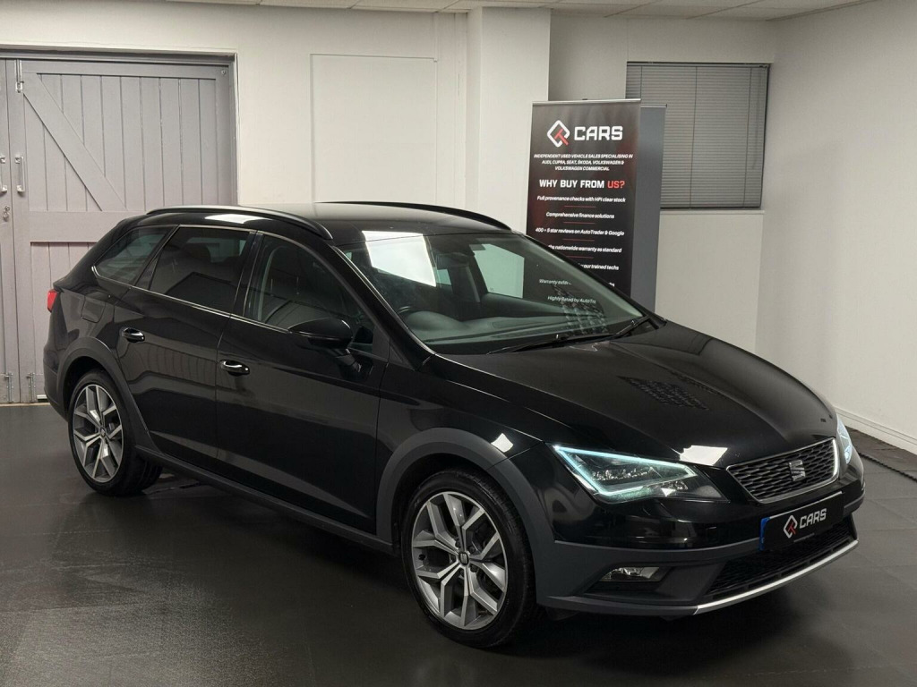 We have just bought this great value Leon X-perience directly from the previous owner, registration HF65 XWZ. This is the SE Technology 2.0 TDI 150ps manual finished in Midnight black metallic with alcantara interior. This Leon has 2 owners from new, the last since 2016 and the following service history; , 1st service 16/09/2016 at 9,355 miles at SEAT, 2nd service 19/05/2017 at 18,602 miles at SEAT, 3rd service 09/03/2018 at 29,158 miles at SEAT, 4th service 10/10/2018 at 38,080 miles at SEAT - major service inc brake fluid change, 5th service 04/10/2019 at 47,909 miles at SEAT, 6th service 23/10/2020 at 53,155 miles at SEAT - inc cambelt and water pump change, brake fluid change, 7th service TBC, 8th service 10/10/2023 at 76,558 miles at SEAT - major service, 9th service 09/08/2024 at 87,354 miles at SEAT Specialist, 10th service 26/02/2025 at 96,650 miles at SEAT Specialist, 11th service 07/10/2025 at 109,093 miles at SEAT Specialist, We have carried out the Haldex 4wd oil change and brake fluid change as part of our pre sales checks, plus replaced rear brake discs and pads. Please do call for more information and to discuss this car in more detail, do also make sure you watch our detailed walk-around video on the video tab in the Gallery! We offer competitive finance options with APRs starting from 9.9% over 2-5 years, and can provide any quotations required. All of this can also be done online. We take any make in part exchange - while we only retail VAG product we will still seek the best value we can for your car. If it is easier you can text or WhatsApp on 07564 053855 or go to our website www.qtcars.co.uk and use the WhatsApp icon. We ensure the car receives a structured mechanical check, 12 months MOT upon arrival and 6 months warranty which can be used at any VAT registered garage nationally. Please take a moment to read our reviews to see what our customers are saying
