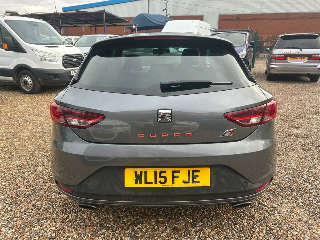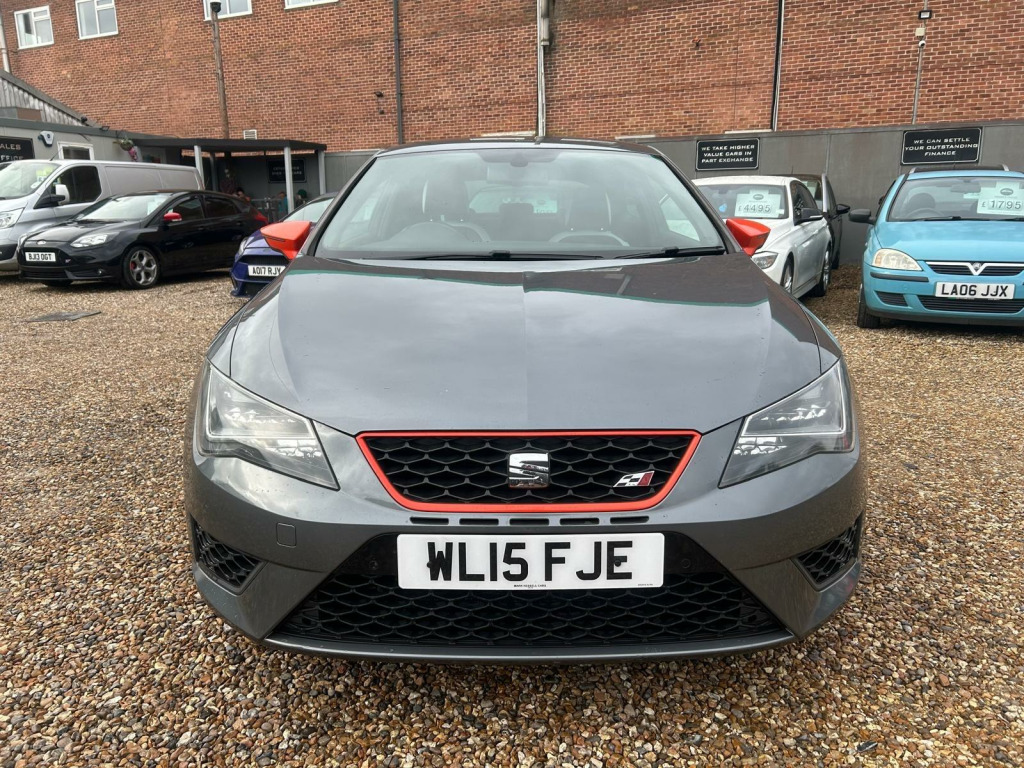 This 2015 SEAT Leon TSI Cupra 280 boasts a full service history, with its last service completed at 96,754 miles, offering you peace of mind. This Euro 6 compliant 2.0 litre petrol model comes with a 3 month warranty and a 12 month MOT provided on purchase. It features the desirable CUPRA Black Line Pack and CUPRA Orange Line Pack, alongside the CUPRA Sub8 Performance Pack. Inside, you'll find a Navigation System High and the SEAT Sound System for an enhanced driving experience.Experience exhilarating performance with this SEAT Leon, capable of accelerating from 0 to 62mph in just 5.7 seconds, a testament to its sporty nature. The large boot space ensures practicality for everyday use and longer journeys. These features, combined with its comprehensive service history and included warranty, demonstrate the exceptional value and quality of this particular Cupra 280 model.. 12V Power Supply in Centre Console - Front, 3D Map Display, AUX-In Port, Airbags - Curtain, Airbags - Driver, Airbags - Front Passenger, Alarm - Perimeter Tow Away Protection, Aluminium Door Sill Trim with Cupra Logo, Anti-Lock Braking System - ABS, Armrest - Front with Storage Compartment, Auto-Dimming Rear View Mirror, Black Door Mirrors, Black Exterior Mouldings and Frames, Black Interior Decorative Mouldings, Black Rear Roof Spoiler, Bluetooth Audio Streaming, Brake Callipers - Red with Cupra Logo, Bumpers - Exclusive Cupra Front and Rear, Convenience Pack, Cruise Control, DCC - Dynamic Chassis Control, Dark Tinted Rear Windows, Daytime Running Lights - Halogen, Deadlocks, Digital Audio Broadcasting - DAB - Digital Radio, Door Mirrors - Electrically Folding with Reverse Activated Kerb-View Function, Drivers Knee Airbag, Dual Zone Climate Control, Dynamic Route Guidance, EBA - Electronic Brake Assist, ESC Switch-Off Key, Electric Windows - Front with One-Touch and Anti-Squeeze, Electro-Mechanical Power Steering - Speed-Sensitive, Electronic Differential Lock System - XDS, Electronic Stability Control - ESC, Emergency Tyre Repair Kit, Exhaust Pipe - Twin Oval Chrome, FM-AM Radio, Front Mechanical Differential Lock, Front Parking Sensors, Front Passenger Airbag De-Activation, Front Side Airbags, Full LED Headlights, Headlights - Auto-On - Light Sensor, Headlights - Automatic Range Adjustment, Height Adjustable Passenger Seat, Height and Reach Adjustable Steering Wheel, Height-Adjustable Drivers Seat, High Resolution Multi-Function Display in Colour, Hill Hold Control, ISOFIX Points with Top Tether on Rear Seats, Integrated Bluetooth Handsfree System, LED Daytime Running Lights, LED Interior Illumination Pack, LED Taillights, Leather Gear Knob, MP3 Compatible CD Player, Media System Plus, Micro SD Card Slot for Music Storage, Navigation System, Parking Sensors - Front and Rear with Optical Parking System, Passenger Door Mirror with Kerb Function when Reversing, Progressive Steering, Rain Sensing Wipers, Rear Parking Sensors, Remote Central Locking, SD Card Slot, SEAT Drive Profile - Sport-Comfort-Eco-Individual, Seatbelt Reminder - Front, Seats - Front Lumbar Adjustment, Seats - Sports, Space Saving Spare Wheel - 18in, Speakers x8, Sports Suspension, Steering Wheel - Alcantara with Copper Stitching - CUPRA Logo and Alcantara Gear Knob, Steering Wheel - Gearshift Paddles, Steering Wheel Mounted Audio and Phone Controls, Technology Pack, Touch Screen - Colour 5.8in, Tyre Pressure Monitoring System, USB Port, Voice Control - In Car Entertaintment, iPod Connection, Navigation System High, SEAT Sound System, 19in Alloy Wheels - CUPRA 280 Multi Black, CUPRA Orange-Line Pack, CUPRA Black-Line Pack, CUPRA 280 Leather Pack - Simil Leather - Black with White Accents, CUPRA Sub8 Performance Pack. Full service history