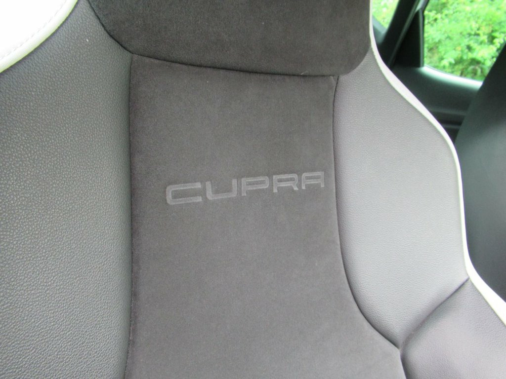 **HPI CLEAR** SERVICE HISTORY**FINANCE OPTIONS AVAILABLE**PART EXCHANGE WELCOME** 19" ALLOY WHEELS, AUTO LIGHTS, ELECTRIC WINDOWS, ELECTRIC FOLDING MIRRORS, MULTIFUNCTION STEERING WHEEL, TRIP COMPUTER, CRUISE CONTROL, AM/FM, DAB, BLUETOOTH AUDIO, SD X2, AUX, USB, APPLE CAR PLAY, SAT NAV, STOP/START, DYNAMIC DRIVE SELECT, CLIMATE CONTROL, HEATED SEATS, HALF LEATHER HALF SUEDE SEATS, FRONT AND REAR PARKING SENSORS, ARMREST, 6 SPEED MANUAL. 12 Volt Power Supply in Centre Console, 19in Alloy Wheels - CUPRA 290 Multi-Spok, 3.5in Drivers Display, ABS - Anti-Lock Braking System and TCS T, Active Front Head Restraints, Additional Heating-Ventilation Outlet in, Alarm - Perimeter and Interior Monitorin, Aluminium Door Sill Trim with Cupra Logo, Ambient Spot Lighting and Footwell Illum, Anti-Theft Roof Antenna, Auto-Dimming Rear View Mirror, Auto-Headlights, Automatic Warning Lights, Black CUPRA Tailgate Lettering, Black Exterior Mouldings and Frames, Black Interior Dashboard Detailing, Black Interior Decorative Mouldings, Bluetooth Phone Connection, Body-Coloured Door Handles, Brake Callipers - Red with Cupra Logo, Bumpers - Exclusive
