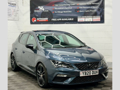 This 2020 SEAT Leon TSI Cupra 290 presents an exceptional opportunity with its remarkably low mileage of just 40,000 miles for its age. Powered by a potent 2.0 litre Euro 6 petrol engine, this Cupra 290 variant boasts impressive performance, achieving 0-62mph in a swift 6.0 seconds. Its spacious boot offers ample room for all your needs, making it a practical choice. Further enhancing your driving experience, this Leon comes equipped with a suite of advanced features. Full LED headlights provide excellent visibility, while front and rear parking sensors, including parking assistance, make manoeuvring effortless. Stay connected and entertained with SEAT Full Link smartphone integration, compatible with Mirror Link, Apple CarPlay, and Google Android Auto, all managed through the Media System Plus which includes Bluetooth connectivity. Enjoy personalised comfort with dual zone climate control, ensuring a pleasant environment for all occupants. These features collectively demonstrate how this SEAT Leon stands out from other vehicles in its class. , HPI CLEAR,2 KEYS, FINANCE AVAILABLE WITH £0 DEPOSIT AT COMPETITIVE RATES, PLEASE VISIT WWW.woburnautos.co.uk or CALL 01525868505, EXTENDED WARRANTY AVAILABLE ON ALL OUR CARS (3, 6, 12, 18, 24) , COMES WITH PREMIUM 3 MONTHS WARRANTY, MOT VALID TILL 05/09/2026 , SERVICE HISTORY,ONLY ONE PREVIOUS OWNER,CRUISE CONTROL,PADDLE SHIFT,POPS AND BANGS,BLUETOOTH PREPARATION,AUTO LIGHTS AND WIPERS,AUTO HOLD,FLAT BOTTOM MOUNTED STEERING WHEEL,SPARE TYRE. SMOOTH ENGINE AND GEARBOX, CLEAN BODYWORK AS OF ITS AGE, CLEAN INTERIOR, CLEAN ALLOYS WITH GOOD TYRES, VIEWING RECOMMENDED, PART EX WELCOME, —————————————— WOBURN AUTOS IS TRUSTED AND LEADING USED CAR DEALERSHIP IN LEIGHTON BUZZARD. OUR VEHICLES ARE SUITABLE FOR ALL OUR CUSTOMERS NEEDS. FOR MORE INFO AND TO VIEW OUR STOCK PLEASE VISIT OUR WEBSITE WWW.WOBURNAUTOS.CO.UK —————————————— OUR WORKING HOURS ARE MONDAY TO SATURDAY 10AM TO 6PM AND ON SUNDAY 10AM TO 4:00PM. —————————————SOCIAL DISTANCING IN PRACTICE, BY APPOINTMENT ONLY, ACCEPT ALL DEBIT/CREDIT CARDS, p/x welcome