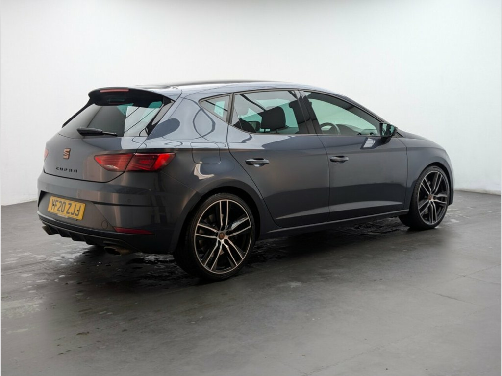 19" Alloys, Cruise Control, Tinted Glass, Parking Sensors, Apple CarPlay. Most recent service - 20.08.2024 at 21k miles. This 2020 SEAT Leon TSI Cupra 290 boasts exceptionally low mileage for its age, having covered just 38547 miles. This Euro 6 compliant 2.0 litre petrol model, registered in 2020, comes with an MOT valid until September 2026, offering peace of mind for the road ahead. It features front and rear parking sensors with parking assistance, a Media System Plus with Bluetooth connectivity, and SEAT Full Link smartphone integration supporting Mirror Link, Apple CarPlay, and Google Android Auto. The car is also equipped with full LED headlights and dual zone climate control for a comfortable driving experience. The Cupra 290 trim level truly sets this Leon apart, offering a thrilling 0-60mph acceleration in just 6.0 seconds, a performance benchmark that highlights its dynamic capabilities compared to other vehicles in its class. Practicality is also a strong suit, with a generously sized boot perfect for luggage or shopping. This combination of spirited performance, advanced technology, and everyday usability makes this SEAT Leon a compelling choice. 12V Power Supply in Centre Console, 19in Alloy Wheels - CUPRA Machined, 7 Airbags, ABS and Traction Control System - TCS - , Alarm - Volumetric, Armrest - Front with Storage Compartment, Black Brake Calipers - Front and Rear wi, Black Interior Roof Lining, Bumpers - Exclusive Cupra Front and Rear, Convenience Pack Plus, Cruise Control, Dark Tinted Rear Windows, Digital Clock, Digital Cockpit, Driver and Passenger Seat Height Adjustm, Driver and Passenger Sunvisor with Cover, Drivers Seat Lumbar Adjustment, Dual Zone Climate Control, Electric Parking Brake Including Autohol, Electrically Adjustable Folding and Heat, Electro-Mechanical Progressive Power Ste, ESC Switch-Off Key, Flat Bottomed-P