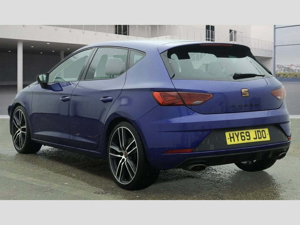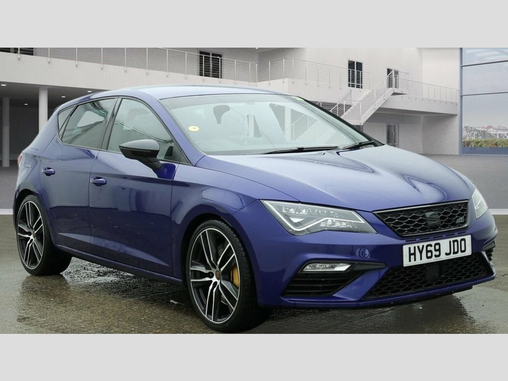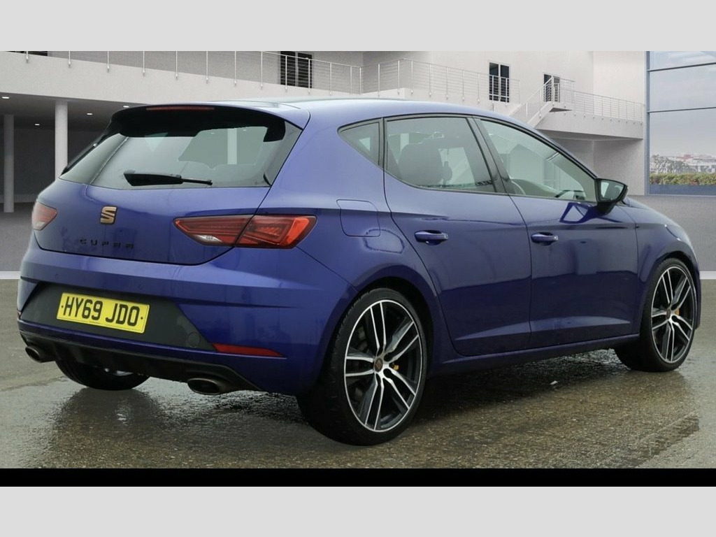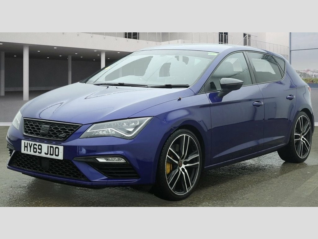 EXPERIENCE THRILLING PERFORMANCE WITH THIS SEAT LEON 2.0 TSI CUPRA 290 HATCHBACK 5DR PETROL DSG EURO 6, POWERED BY A 2.0L TSI ENGINE WITH 290HP AND A SMOOTH DSG AUTOMATIC TRANSMISSION, THIS CAR OFFERS UNMATCHED POWER AND QUICK GEAR SHIFTS FOR A DYNAMIC DRIVE. WITH SERVICE HISTORY, LOW MILEAGE, AND ONLY 2 PREVIOUS OWNERS, THIS VEHICLE HAS BEEN WELL MAINTAINED AND COMES WITH 2 KEYS FOR ADDED CONVENIENCE. ENJOY PREMIUM FEATURES SUCH AS FRONT ASSIST, APPLE CARPLAY, AND AN ADVANCED INFOTAINMENT SYSTEM WITH SEAMLESS CONNECTIVITY. EURO 6 COMPLIANT FOR ULEZ ACCESS WITHOUT CHARGES, THIS CUPRA ALSO BOASTS PERFORMANCE-TUNED SUSPENSION, ENHANCED BRAKING, AND A SPACIOUS INTERIOR WITH PREMIUM SEATING, MAKING IT THE IDEAL CHOICE FOR THOSE SEEKING A SPORTY YET PRACTICAL CAR WITH STRONG RESALE VALUE. Mystery Blue, Driving Assistance Pack, 12V Power Supply in Centre Console, 19in Alloy Wheels - CUPRA Machined, 7 Airbags, ABS and Traction Control System - TCS - , Alarm - Volumetric, Armrest - Front with Storage Compartment, Black Brake Calipers - Front and Rear wi, Black Interior Roof Lining, Bumpers - Exclusive Cupra Front and Rear, Convenience Pack Plus, Cruise Control, Dark Tinted Rear Windows, Digital Clock, Digital Cockpit, Driver and Passenger Seat Height Adjustm, Microsuede Sports Seats - Black with Gre, Driver and Passenger Sunvisor with Cover, Drivers Seat Lumbar Adjustment, Dual Zone Climate Control, ESC Switch-Off Key, Electric Parking Brake Including Autohol, Electrically Adjus