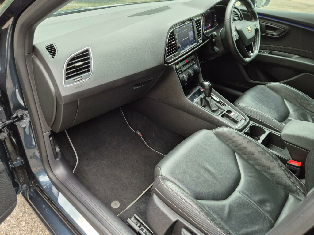 Adaptive cruise, electric seats with lumber, heated seats, competitive finance available, full service history. 12V Power Supply in Centre Console, 19in Alloy Wheels - CUPRA Machined, 7 Airbags, ABS and Traction Control System - TCS - Electronic Stability Control - ESC - and Electronic Differential Lock System - XDS, Adaptive Cruise Control - ACC, Alarm - Volumetric, Armrest - Front with Storage Compartment, Black Interior Roof Lining, Boot Storage Net, Brake Callipers - Black, Bumpers - Exclusive Cupra Front and Rear, Cargo Rings in the Boot, Convenience Pack Plus, Dark Tinted Rear Windows, Digital Clock, Digital Cockpit, Driver and Passenger Seat Height Adjustment, Driver and Passenger Sunvisor with Covered and Illuminated Mirrors, Drivers Seat Lumbar Adjustment, Dual Zone Climate Control, ESC - Electronic Stability Control and Tyre Pressure Warning Light Indicator, ESC Switch-Off Key, Electric Parking Brake Including Autohold Function, Electrically Adjustable Driver Seat, Electrically Adjustable and Heated Door Mirrors, Electrically Foldable Exterior Mirrors with Parking Position and Passenger-Side Mirror with Lowering, Electro-Mechanical Progressive Power Steering, Emergency Tyre Repair Kit, Flat Bottomed-Perforated Leather Steering Wheel with White Stitching and CUPRA Logo, Front Assist with Pedestrian Protection, Front Seat Back Storage Pockets, Front and Rear Electric Windows, Front and Rear Parking Sensors, Full LED Headlights, Gearshift Indicator, Gloss Black Door Mirrors with Integrated LED Indicators, Hill Hold Control, ISOFIX Points in Outer Rear Seats with Top Tether Anchorage Points, Illuminated Aluminium Front Door Sill with CUPRA Logo, Instrument Lighting with Brightness Control, Interior CUPRA - Black, Interior Detailing - Black, Keyless Entry and Go - KESSY and Wireless Phone Charger, LED Interior Illumination Pack, Lights Left On Warning Buzzer, Low Fuel Warning Light, Lower Suspension - 15mm, Mechanical Limited Slip Differential, Media System Plus, Multi Coloured Ambient Lighting, Multi-Collision Braking System, Navigation System, Outside Temperature Gauge, Pedals in Aluminium, RPM Counter, Radiator Grille Frame in Glossy Black, Radiator Grille in Black, Remote Central Locking with Deadlocks, SEAT Drive Profile, SEAT Full Link Smartphone Integration - Mirror Link - Apple CarPlay - Google Android Auto, Seatbelt Reminder - Front, Seats - Passenger Lumbar Adjustment, Space-Saving Spare Wheel, Split Folding Rear Seats 60-40 with Armrest, Steering Wheel-Mounted Gearshift Paddles, Trip Computer, Two Folding Keys with Window Open-Close - Door and Boot Opening Functionality, Two Height-Adjustable Front and Rear Headrests, USB Cable for Apple and Android Compatibility, Visual Dual Exhaust Pipes, Winter Pack, Leather Sports Seats - Black. Full service history