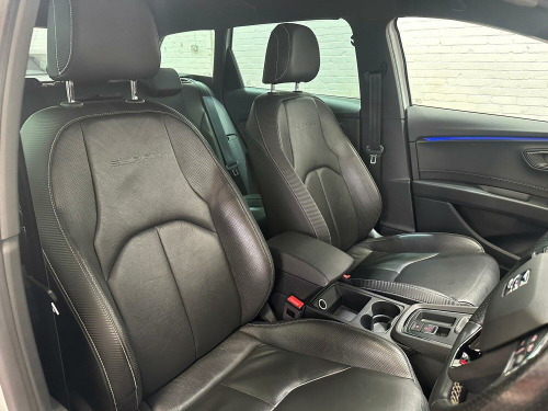 This 2018 SEAT Leon 2.0 TSI Cupra 300 5dr - 19s+Cruise+Seat Sound+Carbon Leather+Fold Mirrors Estate is currently available for £17,790 in Dukinfield with Petrol engine and Auto Clutch Manual gearbox. For more information or to arrange a viewing, click here to send us an email using form below.