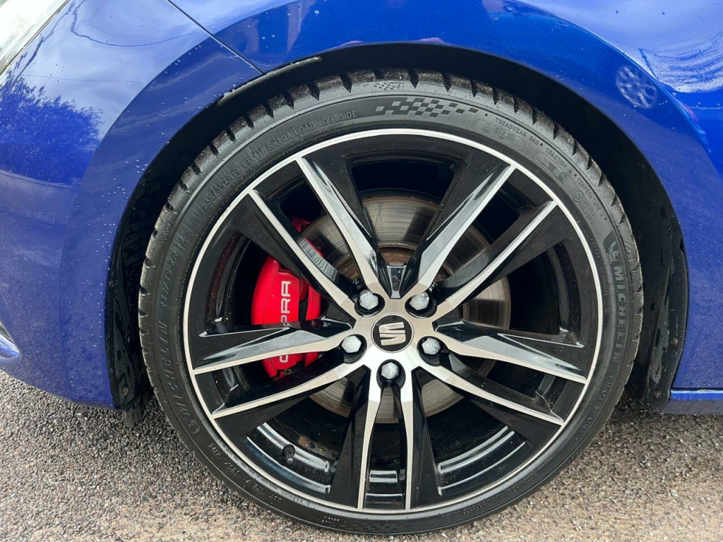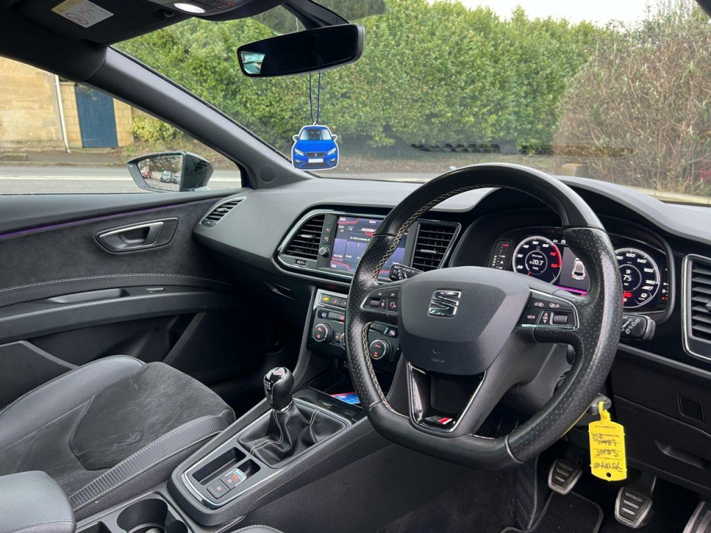 19'' ALLOY WHEELS - FRONT AND REAR PARKING SENSORS - TOUCHSCREEN INFOTAINMENT SYSTEM - AUTOMATIC HEADLIGHTS - SATELITE NAVIGATION - DAB/FM./AM RADIO - BLUETOOTH CONNECTIVITY - RAIN SENSOR WIPERS - DUAL CLIMATE CONTROL - RED BRAKE CALIPERS - CRUISE CONTROL - LEATHER MULTIFUNCTION STEERING WHEEL - AUTO HOLD FUNCTION - STOP START TECHNOLOGY - CUPRA DRIVING MODES - PRIVACY GLASS - ELECTRIC FOLDING MIRRORS - CONTRAST BLACK MIRROR CAPS - ELECTRIC WINDOWS - REMOTE CENTRAL LOCKING - ISOFIX - FINISHED IN BLUE METALLIC WITH DARK INTERIORCOZENS CARS ARE EXCITED TO BRING YOU THIS STUNNING SEAT LEON CUPRA WITH SERVICE HISTORY AT 15K, 27K, 39K, 61K, & 69K. 3 MONTH NATIONWIDE WARRANTY. We are a small family run business based in Hilmarton, Wilts, approx. 20 minutes from the M4 junction 16. We can arrange finance for most customers including those with a poor credit score. credit and debit cards are also accepted, extended warranties are available and PX is welcome. PLEASE CALL 01249 247277 TO ARRANGE A TEST DRIVE.. 12V Power Supply in Centre Console, 19in Alloy Wheels - CUPRA Machined, 7 Airbags, ABS - Anti-Lock Braking System - TCS - Traction Control System, Active Front Head Restraints and 3 Rear Head Restraints, Black Interior Roof Lining, Body-Coloured Door Handles, Boot Storage Net, Brake Callipers - Red with Cupra Logo, Bumpers - Exclusive Cupra Front and Rear, CUPRA Performance Interface, Cargo Rings in the Boot, Convenience Pack Plus, Cruise Control, DCC - Dynamic Chassis Control, Dark Tinted Rear Windows, Digital Cockpit, Driver and Passenger Seat Height Adjustment, Driver and Passenger Sunvisor with Covered and Illuminated Mirrors, Drivers Seat Lumbar Adjustment, Dual Zone Climate Control, ESC - Electronic Stability Control and Tyre Pressure Warning Light Indicator, ESC Switch-Off Key, Electric Parking Brake Including Autohold Function, Electrically Folding Door Mirrors, Electro-Mechanical Progressive Power Steering, Flat Bottomed-Perforated Leather Steering Wheel with White Stitching and CUPRA Logo, Front Assist with City Emergency Braking, Front Parking Sensors, Front Seat Back Storage Pockets, Front Sports Seats, Front and Rear Electric Windows, Fuel Filler Flap linked to Central Locking, Full LED Headlights, Gearshift Indicator, Gloss Black Door Mirrors with Integrated LED Indicators, Gloss Black Interior Detailing, Head Restraints - Height Adjustable Front, High Centre Console, High Gloss Black B and C Pillars, Hill Hold Control, ISOFIX Points in Outer Rear Seats with Top Tether Anchorage Points, Illuminated Aluminium Front Door Sill with CUPRA Logo, Instrument Lighting with Brightness Control, LED Front Fog Lights, LED Interior Illumination Pack, Lights Left On Warning Buzzer, Low Fuel Warning Light, Lower Suspension - 15mm, Mechanical Limited Slip Differential, Media System Plus, Multi Coloured Ambient Lighting, Multi-Collision Braking System, Navigation System, Outside Temperature Gauge, Pedals in Aluminium, RPM Counter, Radiator Grille Frame in Glossy Black, Radiator Grille in Black, Rear Parking Sensors, Remote Central Locking with Deadlocks, SEAT Drive Profile, SEAT Full Link Smartphone Integration - Mirror Link - Apple CarPlay - Google Android Auto, Seatbelt Reminder - Front, Seats - Passenger Lumbar Adjustment, Space-Saving Spare Wheel, Split Folding Rear Seats 60-40 with Armrest, Storage Box Under Driver and Front Passenger Seat, Trip Computer, Two Remote Keys with Window Open-Close - Door Mirror Folding and Boot Opening Functionality, Visual Dual Exhaust Pipes.