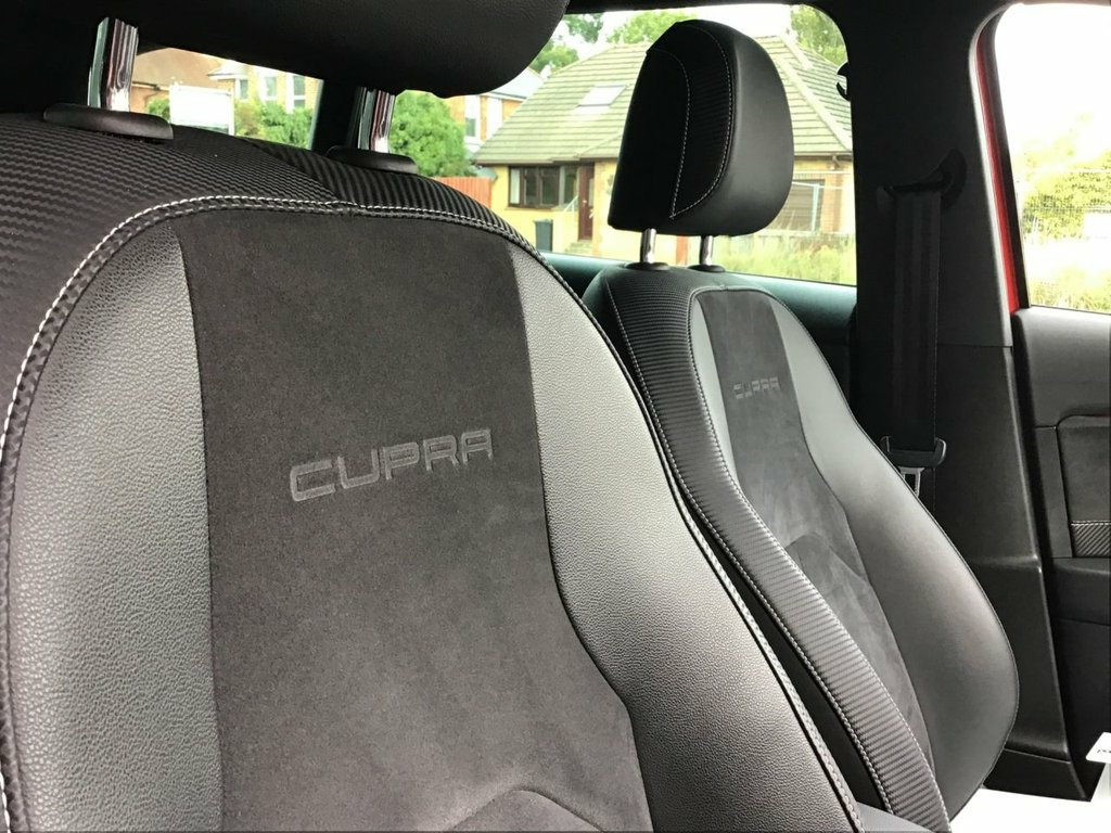12V Power Supply in Centre Console, 19in Alloy Wheels - CUPRA Machined, 3.5in Drivers Display, 7 Airbags, ABS - Anti-Lock Braking System - TCS - T, Active Front Head Restraints and 3 Rear , Alarm - Perimeter and Interior Monitorin, Aluminium Door Sill Trim with Cupra Logo, Black Interior Roof Lining, Body-Coloured Door Handles, Brake Callipers - Red with Cupra Logo, Bumpers - Exclusive Cupra Front and Rear, CUPRA Performance Interface, Chrome Loading Sill, Convenience Pack Plus, Cruise Control, DCC - Dynamic Chassis Control, Dark Tinted Rear Windows, Double Boot Floor, Driver and Passenger Seat Height Adjustm, Driver and Passenger Sunvisor with Cover, Drivers Seat Lumbar Adjustment, Dual Zon