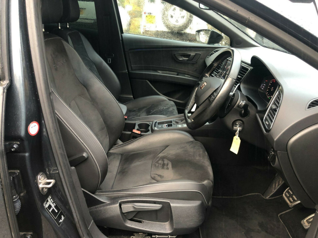 Competitive finance available, service history. 12V Power Supply in Centre Console, 19in Alloy Wheels - CUPRA Machined, 7 Airbags, ABS and Traction Control System - TCS - Electronic Stability Control - ESC - and Electronic Differential Lock System - XDS, Alarm - Volumetric, Armrest - Front with Storage Compartment, Black Interior Roof Lining, Boot Storage Net, Brake Callipers - Black, Bumpers - Exclusive Cupra Front and Rear, Cargo Rings in the Boot, Convenience Pack Plus, Cruise Control, Dark Tinted Rear Windows, Digital Clock, Digital Cockpit, Driver and Passenger Seat Height Adjustment, Driver and Passenger Sunvisor with Covered and Illuminated Mirrors, Drivers Seat Lumbar Adjustment, Dual Zone Climate Control, ESC - Electronic Stability Control and Tyre Pressure Warning Light Indicator, ESC Switch-Off Key, Electric Parking Brake Including Autohold Function, Electrically Adjustable and Heated Door Mirrors, Electrically Foldable Exterior Mirrors with Parking Position and Passenger-Side Mirror with Lowering, Electro-Mechanical Progressive Power Steering, Emergency Tyre Repair Kit, Flat Bottomed-Perforated Leather Steering Wheel with White Stitching and CUPRA Logo, Front Assist with Pedestrian Protection, Front Seat Back Storage Pockets, Front and Rear Electric Windows, Front and Rear Parking Sensors, Full LED Headlights, Gearshift Indicator, Gloss Black Door Mirrors with Integrated LED Indicators, Hill Hold Control, ISOFIX Points in Outer Rear Seats with Top Tether Anchorage Points, Illuminated Aluminium Front Door Sill with CUPRA Logo, Instrument Lighting with Brightness Control, Interior CUPRA - Black, Interior Detailing - Black, LED Interior Illumination Pack, Lights Left On Warning Buzzer, Low Fuel Warning Light, Lower Suspension - 15mm, Mechanical Limited Slip Differential, Media System Plus, Multi Coloured Ambient Lighting, Multi-Collision Braking System, Navigation System, Outside Temperature Gauge, Pedals in Aluminium, RPM Counter, Radiator Grille Frame in Glossy Black, Radiator Grille in Black, Remote Central Locking with Deadlocks, Roof Rails - Black, SEAT Drive Profile, SEAT Full Link Smartphone Integration - Mirror Link - Apple CarPlay - Google Android Auto, Seatbelt Reminder - Front, Seats - Passenger Lumbar Adjustment, Split Folding Rear Seats 60-40 with Armrest, Steering Wheel-Mounted Gearshift Paddles, Storage Box Under Driver and Front Passenger Seat, Trip Computer, Two Folding Keys with Window Open-Close - Door and Boot Opening Functionality, Two Height-Adjustable Front and Rear Headrests, USB Cable for Apple and Android Compatibility, Visual Dual Exhaust Pipes.