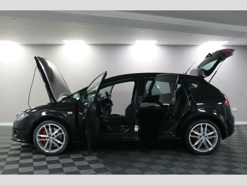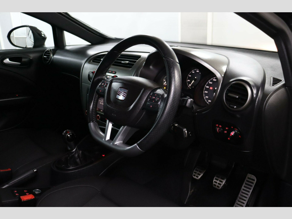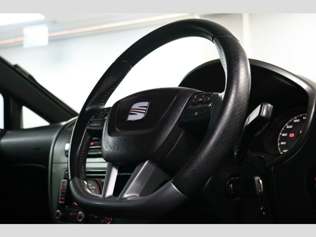 SG11BDX. The SEAT Leon Cupra is a performance hatch that doesn’t compromise. With Low Mileage and Full Service History, this example suits drivers who want a car that’s quick, sharp to drive, and still practical enough for everyday life. The Bigger Boot gives extra space for weekends away, shopping, or day-to-day needs.Fitted with a 6-Inch Colour Touchscreen Infotainment System with built-in Navigation, Bluetooth, DAB Digital Radio, USB, and AUX Input. Dual Zone Climate Control keeps the cabin comfortable, while Cruise Control helps on longer journeys. Rear Parking Sensors make reversing easier. Sports Seats and a Leather Trimmed Steering Wheel provide a focused driving position, and Drive Mode Select allows you to adjust how the car responds to the road.This vehicle has just been serviced and comes with a full service history, featuring 14 stamps in the service book. This vehicle also has a full 12-month MOT with no advisories, a clean HPI report, 2 KEYS and a National Mileage Register Check. With a fantastic list of specifications, this could be the perfect car for you! While we use reliable third-party data, some details may vary. We recommend double-checking any specific features you're particularly interested in. We're happy to help verify this for you on request. Please note features such as Apple Carplay may require a subscription. If you have any questions please feel free to contact us ☎️ 0113 257 00 00.. 6in Colour Touchscreen Infotainment System, Navigation System, Cruise Control, Bluetooth Connection, DAB Radio, 12v Accessory Socket, Parking Sensors - Rear, Electrically Adjustable, heated and Folding Door Mirrors, 18in Orion Alloy Wheels, USB and AUX Input, Automatic Dimming Rear View Mirror, ISOFIX Child Seat Anchorage x2 Rear, Cupra Cloth - Black. Full service history