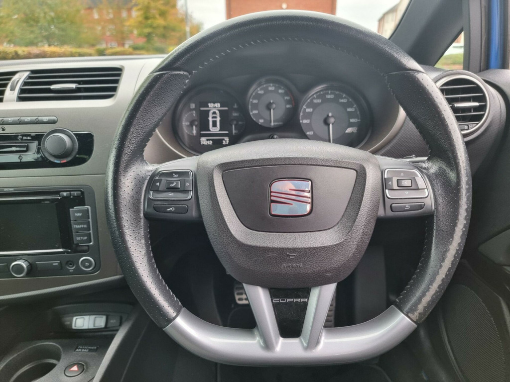 ***VIEWINGS STRICTLY BY APPOINTMENT ONLY (Very flexible with timings)******RARE CAR******Only 1 previous owner from new + Low mileage + Full comprehensive service history (12 Main dealer / 1 independant + 2x CAMBELT changes) + Huge spec with loads of factory fitted extras + ULEZ COMPLIAN******Above all***; This car has been maintained to a very high standard, regardless of cost, as it comes with a full comprehensive service history. This car is in VERY good condiyion inside & outside, and also drives very well. This is a very powerful and rare petrol sports hatchback (ULEZ COMPLIANT). ***Vehicle will come with a 6 months WARRANTY supplied by a very reputable third party company. Additional Warranty months can also be purchased up to 24 months***. This car rerally needs to be seen and driven, to be fully appreciated. Grab yourself a real bargain, as this fantastic car is priced to sell at ONLY...£8,995... graded full black diamond quilted leather sports interior (bucket seats), factory fitted multimedia pack, full colour touch screen sattelite navigation system, upgraded sound system (with dab, aux, usb and bt audio), bluetooth telephone system, front and rear parking sensors (with on screen display), cruise control system, dual control climate control system, automatic lighting system, upgraded bi-xenon headlights (with washers), rear led lighting system, front fog lights, flat bottom sports steering wheel (with perforated sides), multi function steering wheel, 4x electric windows, electric foldiing wing mirrors, central locking, alarm & immobiliser, full closure alarm system (from remote key fob), fctory fitted bodykit, upgraded maxton design style rear diffuser, upgraded rear spoiler, upgraded ***milltek*** twin exit sports exhaust system (with bigger stainless steel exit/tailpipes), factory fitted sports suspension, 2x keys, 6 speed manual gearbox, bluetooth pack, front&rear parking sensors, seat media pack, bi- xenon headlights & adaptive front lighting system & headlight washers & daytime running lights, rear side airbags, quilted leather - black, technology & convenience pack cupra r, exclusive custom palette