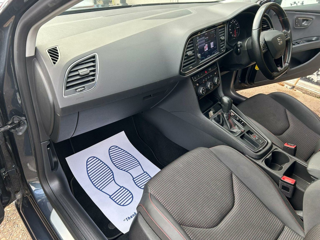 This 2019 SEAT Leon 2.0 TSI FR DSG Euro 6 (s/s) 5dr Hatchback is currently available for £8,540 in Stapleford Nottinghamshire with Petrol engine and Auto Clutch Manual gearbox. For more information or to arrange a viewing, click here to send us an email using form below.