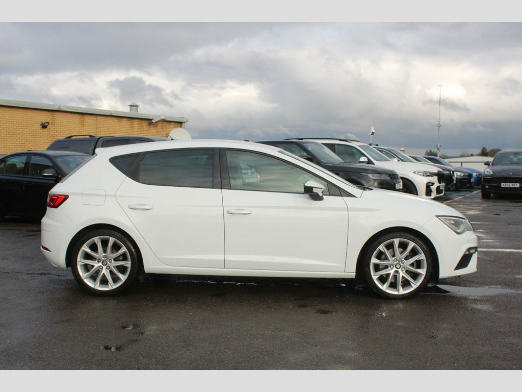IM car supermarket is pleased to offer this very well SEAT Leon 2.0 TSI FR Sport DSG Euro 6 (s/s) 5dr in white colour with only 56,023 miles on the clock. The car comes with 3 months warranty. MOT valid until 31 March 2026. service history info; 2022, 2023, and last service is done in 2024 at 39.9k miles. A high specification includes Sat Nav, Parking Sensors, Climate Control, Phone and Media BT Connection. 12V Power Supply in Centre Console, 18in Alloy Wheels - Performance 30-1, 7 Airbags, ABS and Traction Control System - TCS - , Alarm - Volumetric, Body-Coloured Door Handles, Body-Coloured Door Mirrors with Integrat, Boot Storage Net, Bumpers - Exclusive FR Front and Rear, Cargo Rings in the Boot, Convenience Pack Plus, Cruise Control, Dark Tinted Rear Windows, Digital Clock, Digital Cockpit, Driver and Passenger Seat Height Adjustm, Driver and Passenger Sunvisor with Cover, Drivers Seat Lumbar Adjustment, Dual Zone Climate Control, Dynamic Chassis Control and Progressive , ESC - Electronic Stability Control and T, Electric Parking Brake Including Autohol, Electrically Adjustable and Heated