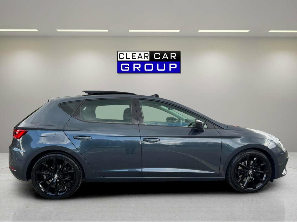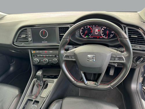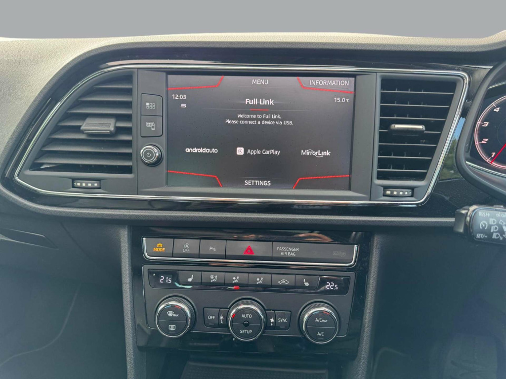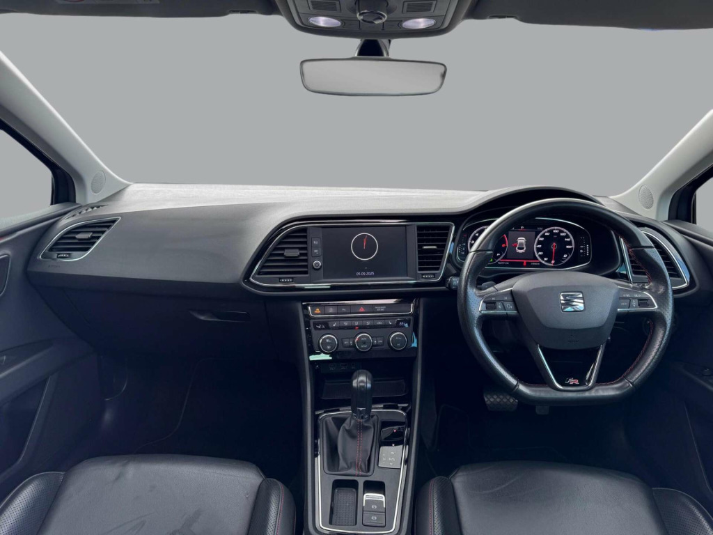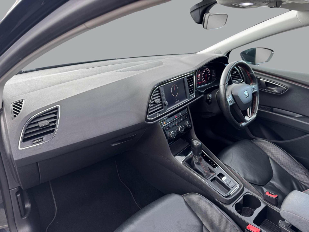 Discover this exceptional 2019 SEAT Leon TSI FR Sport, boasting remarkably low mileage for its year at just 33,882 miles, and a clear vehicle history. This Euro 6 compliant 2.0 litre petrol model is presented in the sporty FR Sport trim, offering a compelling blend of performance and practicality. You'll appreciate the convenience of front and rear parking sensors, adaptive cruise control, and automatic headlights, all part of the comprehensive Driving Assistance and Safety Pack. The Winter Pack ensures comfort with heated seats, while the electric slide and tilt sunroof, complete with LED interior illumination, adds a touch of luxury.This SEAT Leon stands out with its impressive acceleration, reaching 0-62mph in a swift 7.2 seconds, demonstrating its dynamic capabilities. The generous boot space provides ample room for luggage or shopping, making it a versatile choice for everyday life. These features, combined with the low mileage and desirable specification, indicate that this Leon offers a superior ownership experience compared to many other vehicles in its class. v power supply in centre console, 18in alloy wheels - performance 30-1, 7 airbags, abs and traction control system - tcs - electronic stability control - esc - and electronic differential lock system - xds, alarm - volumetric, body-coloured door handles, body-coloured door mirrors with integrated led indicators, boot storage net, bumpers - exclusive fr front and rear, cargo rings in the boot, convenience pack plus, cruise control, dark tinted rear windows, digital clock, digital cockpit, driver and passenger seat height adjustment, driver and passenger sunvisor with covered and illuminated mirrors, drivers seat lumbar adjustment, dual zone climate control, dynamic chassis control and progressive direction, esc - electronic stability control and tyre pressure warning light indicator, electric parking brake including autohold function, electrically adjustable and heated door mirrors, electrically foldable exterior mirrors with parking position and passenger-side mirror with lowering, electro-mechanical power steering, electronic differential lock system - xds, emergency tyre repair kit, front assist with pedestrian protection, front seat back storage pockets, front sports seats, front and rear electric windows, front and rear parking sensors, full led headlights, gearshift indicator, high centre console, high gloss black b and c pillars, hill hold control, isofix points in outer rear seats with top tether anchorage points, illuminated aluminium front door sill trims with fr logo, instrument lighting with brightness control, interior chrome detailing, interior fr black - black glossy, led interior illumination pack, lights left on warning buzzer, low fuel warning light, lower suspension - 15mm, multi coloured ambient lighting, multi-collision braking system, navigation system, outside temperature gauge, rpm counter, radiator grille frame in chrome, radiator grille in black, remote central locking with deadlocks, seat drive profile, seat full link smartphone integration - mirror link - apple carplay - google android auto, seatbelt reminder - front, seats - passenger lumbar adjustment, split folding rear seats - 60-40, sports suspension, steering wheel - flat-bottomed perforated leather with red stitching and fr logo, steering wheel-mounted gearshift paddles, storage box under drivers seat, trip computer, two folding keys with window open-close - door and boot opening functionality, two height-adjustable front and rear headrests, two remote keys with window open-close - door mirror folding and boot opening functionality, usb cable for apple and android compatibility, visual twin exhaust pipes, winter pack