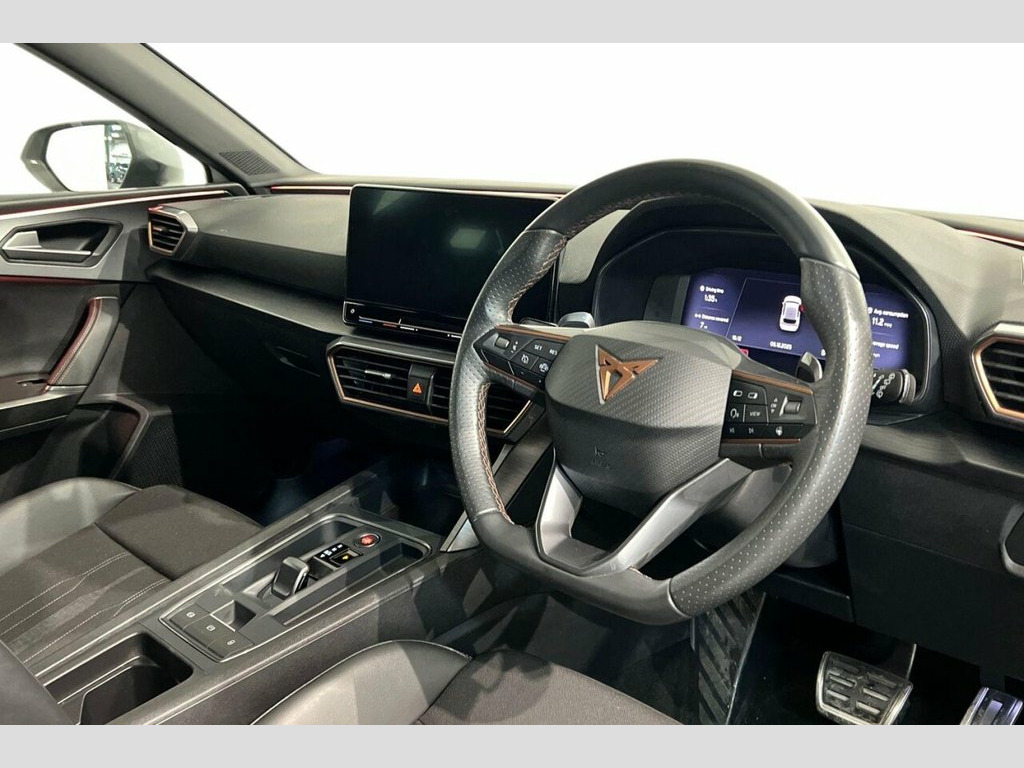 This 2022 CUPRA Leon TSI VZ1 is a superb example, having had only one owner since new. It boasts a powerful 2.0 litre Euro 6 petrol engine, ensuring a dynamic driving experience. The vehicle is in excellent condition with its MOT valid until September 2026. Notable features include advanced LED headlights with automatic activation and a coming home function, along with separate daytime running lights. For convenience, it comes equipped with Park Assist, featuring both front and rear sensors, and Full Link Smartphone Integration, offering seamless connectivity with Android Auto and Apple CarPlay. The CUPRA Leon TSI VZ1 stands out with its impressive performance, achieving 0-60mph in just 6.4 seconds, demonstrating its superior acceleration compared to similar vehicles. This capability, combined with its large boot space, makes it a practical and exciting choice for everyday use and longer journeys. The Media System Plus with navigation and Bluetooth connectivity further enhances the driving experience, keeping you informed and entertained. 12V Power Supply in Centre Console, 18in Alloy Wheels - Sport Machined - Bla, ABS - Anti-Lock Braking System, Anti-Theft Alarm System - Interior Monit, Auto Dimming Rear View Mirror, Brake Control System - ESC and Brake Boo, Chrome and Copper Detailing, Cruise Control with Speed Limiter, CUPRA Black Brake Calipers, CUPRA Connect - Safety - Service - Remot, CUPRA Drive Profile, CUPRA Leather Flat Bottomed - Heated - P, Cupra Sport Pedals, CUPRA Sports Bumpers, Dark Tinted Rear Windows, Digital Cockpit, Door Mirrors Electrically Adjustable - F, Driver and Front Passenger Airbags with , Drivers and Passenger Seats - Manual Hei, Electric Front and Rear Windows, Electro-Mechanical Power Steering