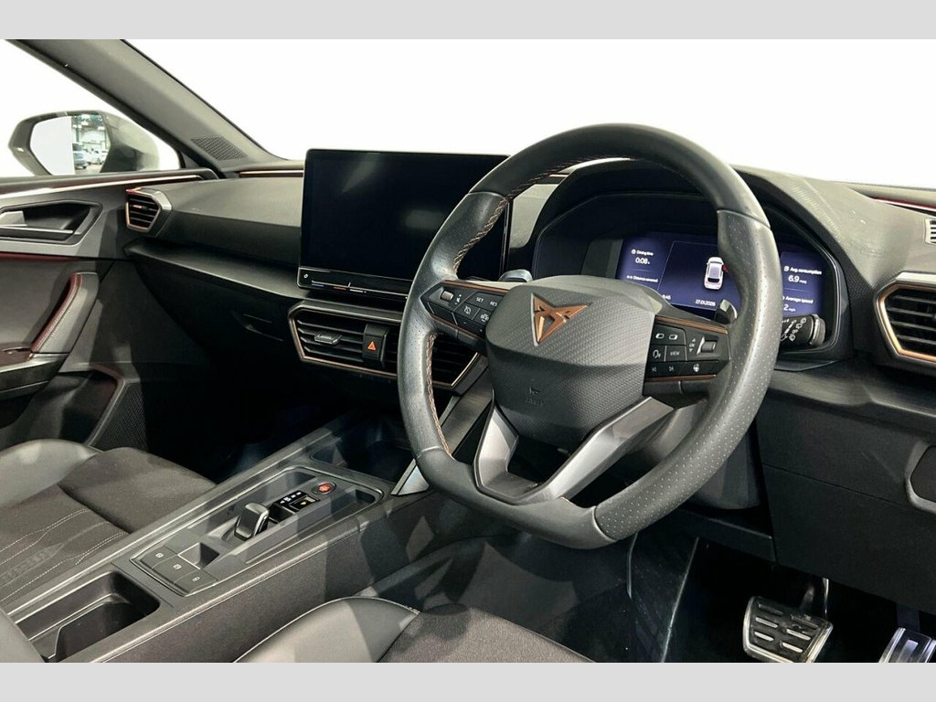 ' 12V Power Supply in Centre Console, 18in Alloy Wheels - Sport Machined - Bla, ABS - Anti-Lock Braking System, Anti-Theft Alarm System - Interior Monit, Auto Dimming Rear View Mirror, Brake Control System - ESC and Brake Boo, CUPRA Black Brake Calipers, CUPRA Connect - Safety - Service - Remot, CUPRA Drive Profile, CUPRA Leather Flat Bottomed - Heated - P, CUPRA Sports Bumpers, Chrome and Copper Detailing, Cruise Control with Speed Limiter, Cupra Sport Pedals, Dark Tinted Rear Windows, Digital Cockpit, Door Mirrors Electrically Adjustable - F, Driver and Front Passenger Airbags with , Drivers and Passenger Seats - Manual Hei, Electric Front and Rear Windows, Electro-Mechanical Power Steering