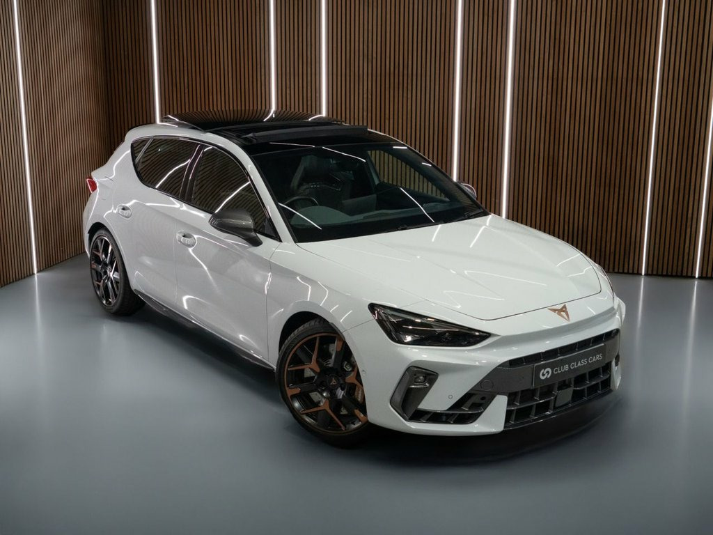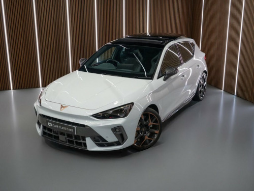 2024 Cupra Leon VZ3 2.0 TSI 5dr Hatchback Petrol DSG in Glacial White which has covered just over 7,550 miles. Fantastic spec including Panoramic Glass Sunroof, IMMERSIVE Sennheiser Sound System, Digital Cockpit, Heated Cup Bucket Seats, Adaptive Cruise Control, 19in Hailstorm Alloy Wheels, Matrix LED Headlights, Media System Plus with Navigation, Apple CarPlay / Android Auto, Keyless Entry, Intelligent Park Assist, Front & Rear Parking Sensors, Reversing Camera, Interior Ambient Lighting, Cupra Supersports Heated Steering Wheel etc. Cup Bucket Seats - Textile Turbine - Sid, Glacial White, Panoramic Sunroof, 12V Power Supply in Centre Console, 19in Alloy Wheels - Hailstorm - Forged M, ABS - Anti-Lock Braking System, Adaptive Cruise Control with Follow-to-S, Akebono Brakes and Akebono Calipers, Anti-Theft Alarm System - Interior Monit, Auto Dimming Rear View Mirror, Brake Control System - ESC and Brake Boo, Breakdown Kit, CUPRA Connect - Safety - Service - Remot, CUPRA Drive Profile, CUPRA Dynamic and Comfort Pack, CUPRA Sports Bumpers, CUPRA Supersports - Heated Steering Whee, Chrome and Copper Detailing, Cupra Sport Pedals, Dark Tinted Rear Windows, Digital Cockpit, Door Mirrors Electrically Adjustable - F, Driver and F