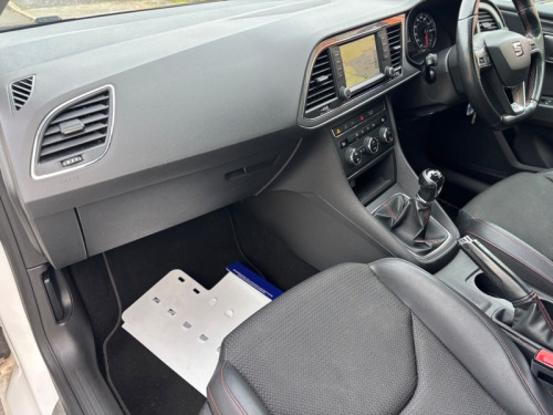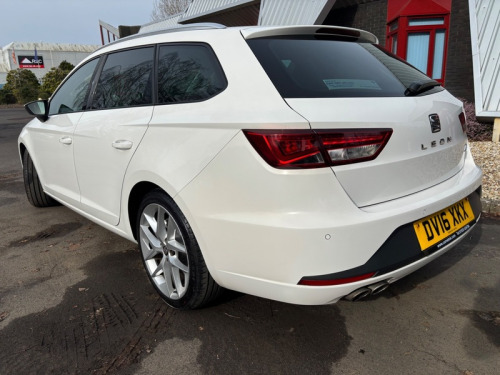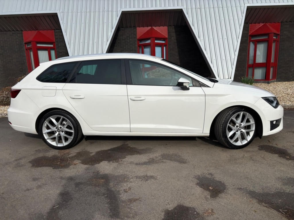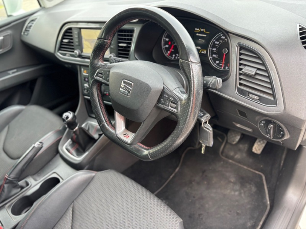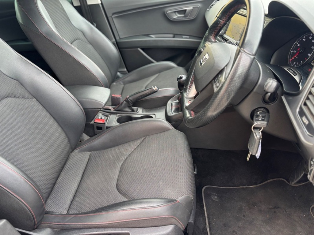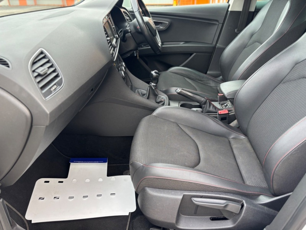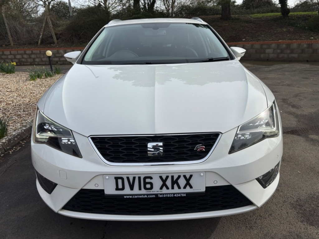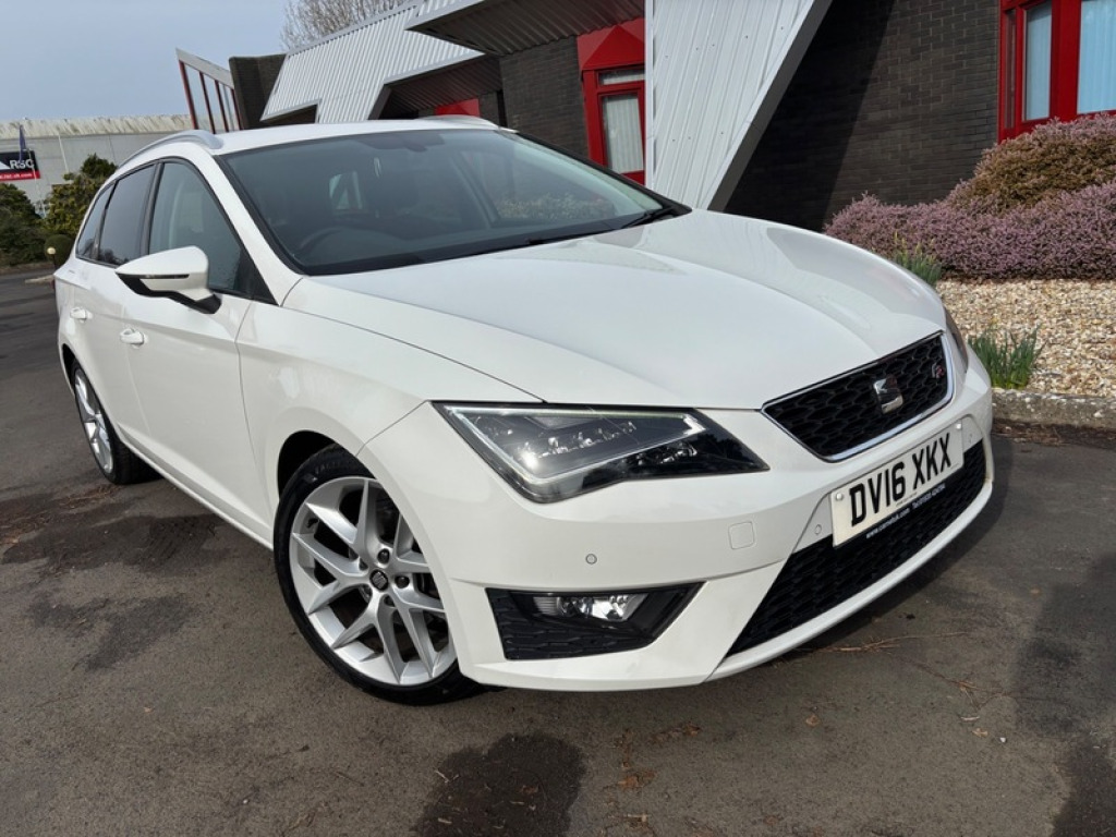 2016 SEAT Leon 1.4 Eco TSI 150 FR 5dr with Technology Pack is a 5-door Estate featuring a 148bhp 150ps 1.4 turbocharged petrol engine, 6-speed manual gearbox, 8 Stamp Service History. Only £35 to Tax. It boasts high efficiency with 57.6 mpg combined. The Technology Pack adds full LED headlights and 6.5' navigation. Key Specifications Engine. 1.4L TSI 4-cylinder petrol Power Torque. 150 PS 148 bhp at 5,000 rpm Transmission. 6-speed manual, Front Wheel Drive Fuel Economy and Emissions: 57.6 mpg combined, 114 gkm CO2 Insurance Group. 19 FR Technology Pack Features Lighting. Full LED headlights and LED tail lights. Climate Control, 6.5' colour touchscreen, Satellite Navigation, DAB Radio, Full Link Apple CarPlay and Android Auto. Rear Privacy Glass, 17' Alloys. Interior. FR specific sports seats with red stitching, leather flat-bottom steering wheel, and ambient lighting. Cruise control, front/rear parking sensors, and Electric heated and folding mirrors. All round Electric Windows, X2 Remote Keys, Free 3 Month Parts and Labour Warranty, Part Exchange and Finance is most welcome £8795