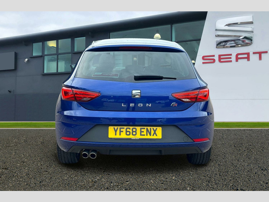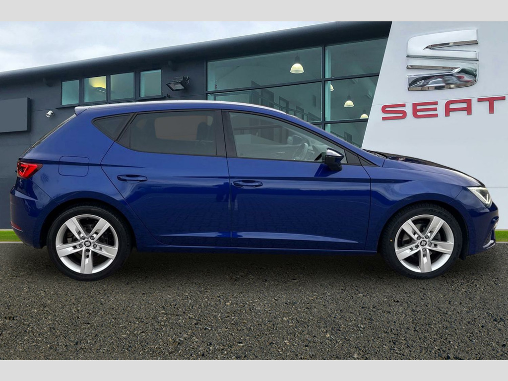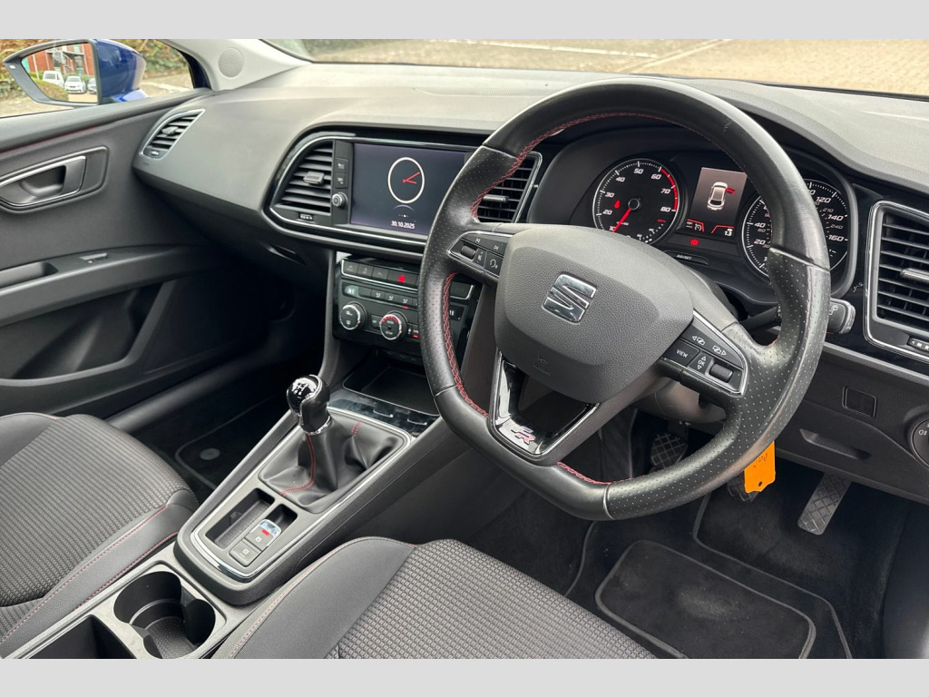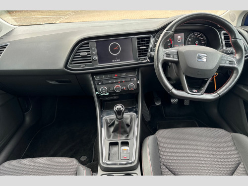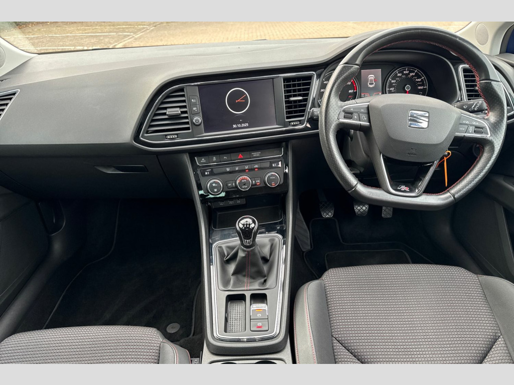 'Lights On' Reminder warning buzzer, 3D map display, 8" touch screen, Bluetooth Handsfree Phone Connection, Cruise control, Electro-mechanical power steering, Front and rear parking sensors, Front assist with pedestrian protection, Full Link Smartphone Integration with Mirror Link, Apple Car Play, Google Android Auto, Low fuel warning light, Navigation system (incl. media system plus), Outside temperature gauge, RPM counter, SEAT Drive profile, SEAT logo boot release, Service interval indicator, Trip computer, Voice recognition, Lowered sports suspension, XDS electronic differential lock, 2x SD card slot, 4 USB, 8 Speakers, Auxiliary input socket, Bluetooth audio streaming, CD player, DAB Digital radio, High resolution colour driver display, Media system plus (incl. media system colour), Steering wheel mounted audio/phone controls, Aluminium front door sills, Black radiator grille, Body colour door handles, Body coloured bumpers, Body coloured exterior mirrors with integrated LED indicators, Chrome-plated radiator grille surround, Dark tinted rear windows, Electric front/rear windows, Electrically adjustable door mirrors, Electrically foldable exterior mirrors with parking position and passenger-side mirror with lowering function, Exclusive FR front and rear bumpers, Heated door mirrors, High gloss black finish B and C pillars, Illuminated aluminium front door sill with FR logo, LED front fog lights, LED headlights with LED day time running lights + LED rear lights + LED number plate lights, Rear wash/wipe, Visible twin exhaust tailpipes, 12v power point in centre console, 60/40 split folding rear seat, Active front headrests and 3 rear headrests, Additional heating and ventilation outlet in rear of centre console, Boot storage net, Cargo rings in boot, Driver and passenger seat height adjust, Driver seat lumbar adjustment, Dual zone climate control, Dust/pollen filter, Flat bottomed perforated leather steering wheel with red stitching and FR logo, Front adjustable head restraints, Front armrest with storage box, Front cupholders x 2, Front seatback storage pockets, Front sport seats in Techny cloth, Front/rear floor mats, Gear shift indicator, Height/reach adjust steering wheel, High centre console with integrated box & cup holder, rear air outlet, with armrest in front seats, Illuminated door sills, Instrument lighting with brightness control, Luggage tie-down hooks, Multi-colour ambient interior lighting, Passenger seat lumbar adjust, Rear top tether child seat ISOFIX attachment, Storage box under drivers seat, 3 point seatbelts on all rear seats, 7 airbags - 2 front, 2 front side, 2 curtain, 1 knee, ABS + TCS, Child proof door locks, Electric handbrake, Electronic parking brake with auto hold, ESC with tyre pressure warning indicator, ESP+EBA, Front seatbelt pretensioners, Front seatbelt reminder, Hill hold control, Multi-Collision braking, Passenger airbag deactivation system, 2 folding remote keys with window open/close function and boot opening/door mirror folding function, Central locking fuel filler cap, Engine immobiliser, Locking wheel bolts, Remote central locking + deadlocks, Volumetric alarm with back up horn, Chrome interior detailing, 17" Dynamic alloy wheels 30/2