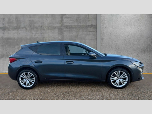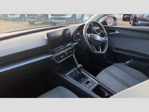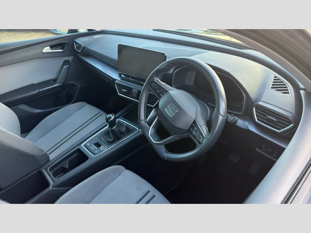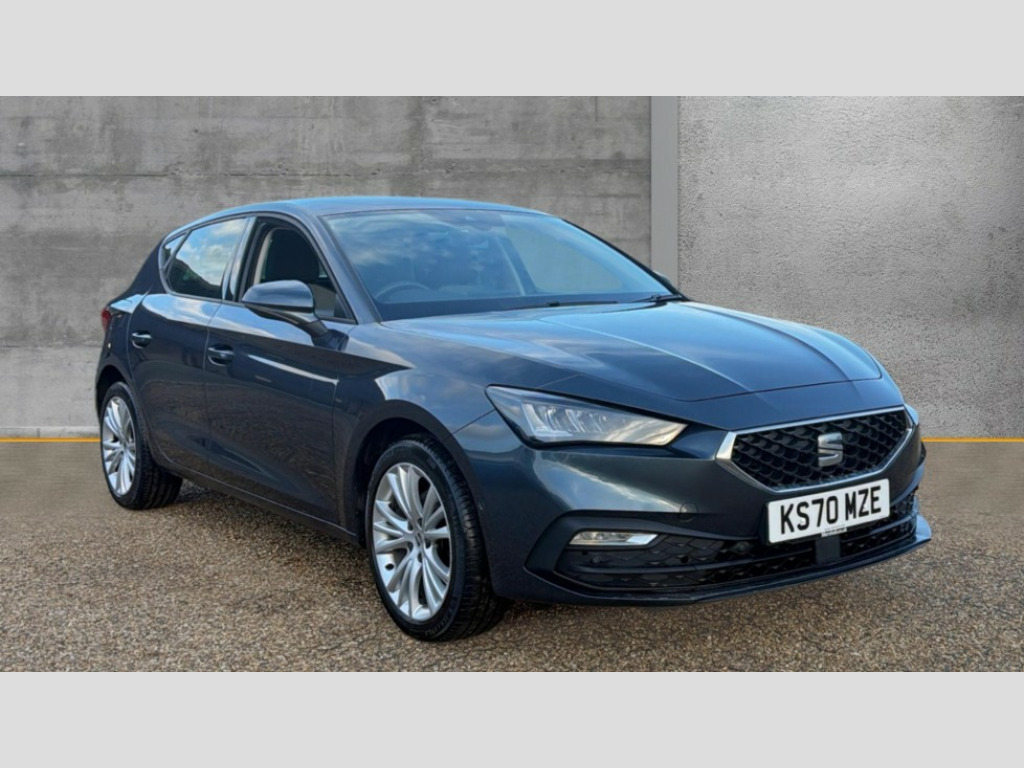 Seat Leon 1.0 TSI EVO SE Dynamic 5dr Cruise control with speed limiter, Digital cockpit, Front assist with forward collision warning braking reaction to vehicles, pedestrians and cyclists, Full link smartphone integration with Mirror Link, wireless Apple CarPlay and wired Google Android Auto, Lane keeping system, Lockable tailgate, Park assist (inc front/rear parking sensors), Power assisted speed sensitive electro-mechanical steering, RPM, trip computer, outside temp gauge, instrument light brightness, low fuel warning light, lights on reminder, gearshift indicator, Service interval indicator, Start/stop system with regenerative braking, Standard suspension, XDS electronic differential lock and dynamic traction support, Auxiliary input socket, Body colour door handles, Body coloured bumpers, Body coloured exterior mirrors with integrated LED indicators, Dark tinted rear windows, Electric front/rear windows, Electrically adjustable and heated door mirrors, LED front fog lamps with cornering function, LED headlights and LED tail lights, LED rear fog lamp, Manual dimming rear view mirror, Rear wash/wipe, Separate daytime running light with automatic headlight control, 12v power point in centre console, 60/40 split rear bench seat, Air conditioning, Cloth upholstery, Driver seat lumbar adjustment, Driver/passenger manual seat height adjustment, Dust/pollen filter, Folding boot cover, Front and rear height adjustable headrests, Front and rear reading lights X 4, Front seatback storage pockets, Height/reach adjust steering wheel, Interior lighting with LED lighting in sunvisor, glovebox and rear headlining, ISOFIX points in outer rear seats with top tether anchorage points, Leather flat bottomed, perforated steering wheel and leather gearstick, Luggage tie-down hooks, Sunvisors with covered illuminated mirror, Media system plus with navigation - Leon SE, 3 point seatbelts on all rear seats, ABS, Brake control system - ESC and brake booster, Child proof door locks, Driver and front passenger airbags with front passenger airbag de-activation, front side and curtain airbags, Electronic parking brake, Extended safety system - seat belt tensioner, window closure and hazard lights, Hill hold control, Rear disc brakes, Seat belt reminder for front and rear seats, Tiredness recognition system, driver alert system, Tyre pressure monitoring system, Anti theft alarm system with interior monitoring in cab, backup horn and towing protection, KESSY Go (Keyless start), Locking wheel bolts, Chrome interior detailing, 17" Dynamic tri-spoke alloy wheels with 91W tyres, Tool kit