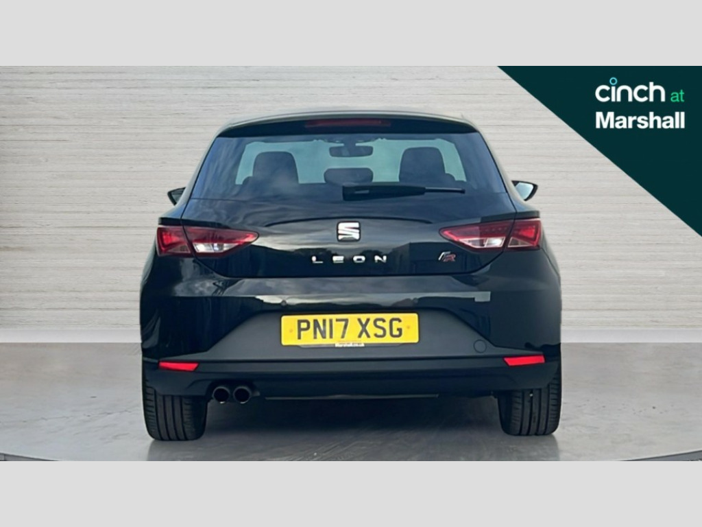 Seat Leon 1.4 EcoTSI 150 FR 3dr [Technology Pack] 'Lights On' Reminder warning buzzer, 6.5" colour touchscreen with proximity sensor, Bluetooth Handsfree Phone Connection, Digital clock and outside temperature display, Low fuel warning light, Multi function display, Rear parking sensor, Remote fuel flap release, SEAT Drive profile, SEAT logo boot release, Service interval indicator, Touch screen display, Trip computer, Sports suspension, XDS electronic differential lock, Auxiliary input socket, Bluetooth audio streaming, DAB Digital radio, iPod connection, Radio/CD + MP3, SD card slot, Steering wheel mounted audio/phone controls, USB port, Aluminium front door sills, Body colour door handles, Body coloured bumpers, Chromed centre radiator grille surround, Cornering front fog lights, Dark tinted rear windows, Electric adjustable/heated/folding door mirrors, Electric front windows + one touch + anti-pinch, Electric headlamp adjustment, LED indicators in door mirrors, Rear wash/wipe, Reverse activated kerb-view adjustment on passenger's door mirror, 12v power point in centre console, 3 height adjustable rear headrests, Active head restraints, Additional heating and ventilation outlet in rear of centre console, Ambient lighting, Driver seat height/lumbar adjust, Driver/passenger sunvisors with illuminated vanity mirrors, Dual zone climate control, Dust/pollen filter, Front adjustable head restraints, Front armrest with storage box, Front cupholders x 2, Front map reading lights, Front seat and rear pockets, Front seats - 'Easy Entry', Front sports seats, Front/rear floor mats, Height/reach adjust steering wheel, Illuminated glovebox, Leather handbrake, Luggage tie-down hooks, Passenger seat height adjuster, Passenger seat lumbar adjust, Perforated leather steering wheel with red stitching + gear knob, Rear reading lights, Rear top tether child seat ISOFIX attachment, Split folding rear seat, Full LED headlight pack - Leon, 3 point seatbelts on all rear seats, ABS + traction control, Collision mitigation braking system, Curtain airbags, Driver/Front Passenger airbags, Drivers knee airbag, ESP+EBA, Front seatbelt pretensioners, Front Seatbelt warning, Front side airbags, Hill hold control, Manual passenger airbag deactivation function, Tyre pressure monitoring system, Engine immobiliser, Locking wheel bolts, Remote central locking + deadlocks, Second remote key, Volumetric alarm with back up horn, Chrome interior trim