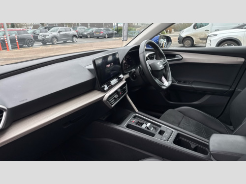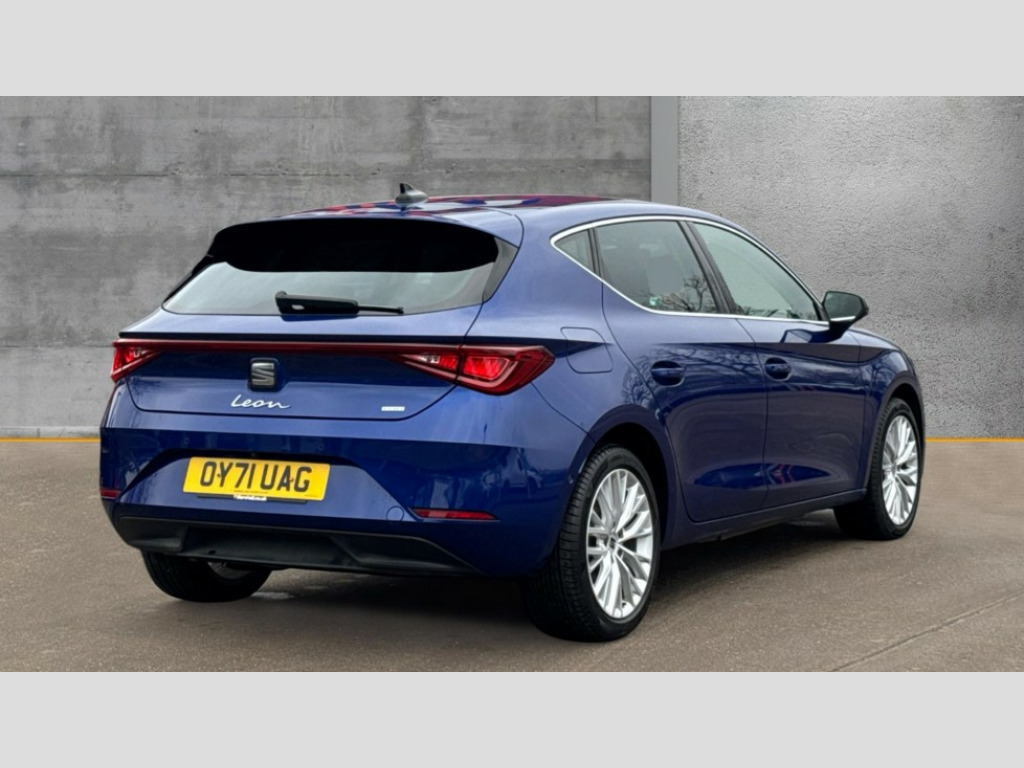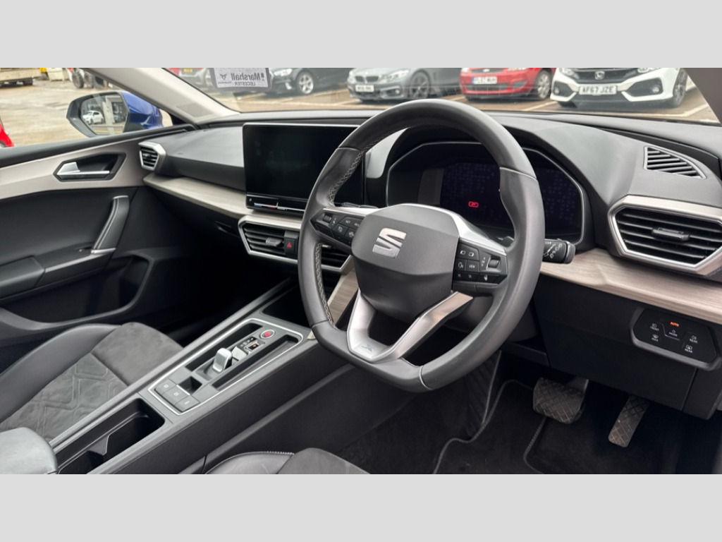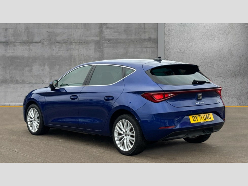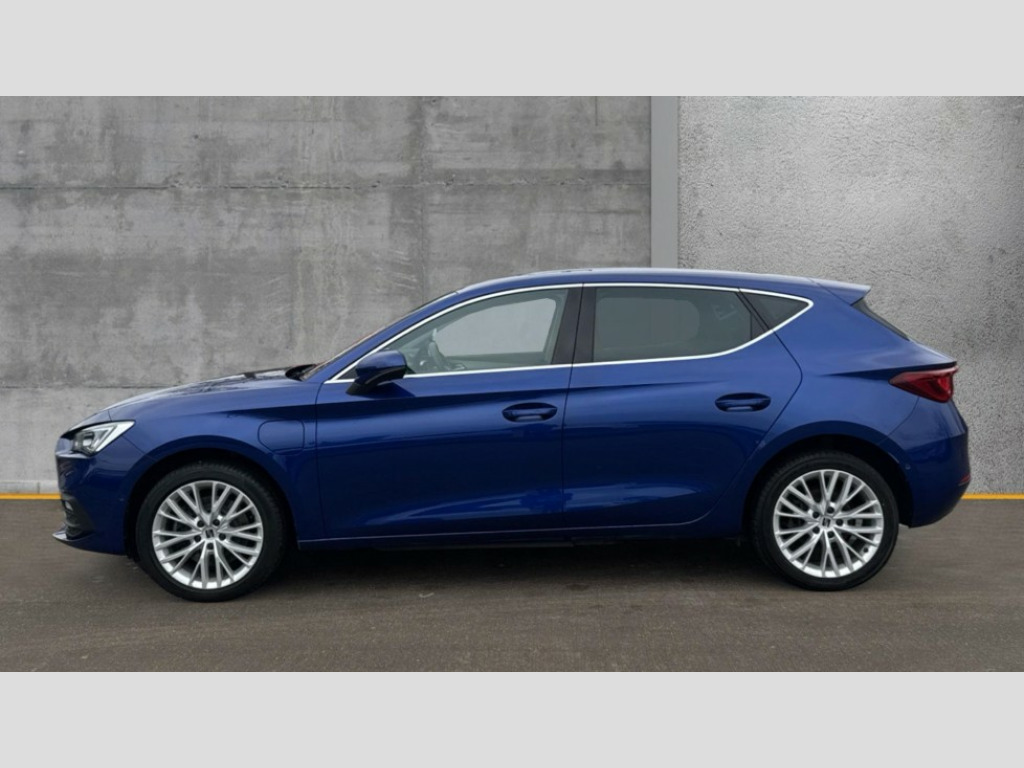 Seat Leon 1.4 eHybrid Xcellence 5dr DSG Digital cockpit, Front assist with forward collision warning braking reaction to vehicles, pedestrians and cyclists, Full link smartphone integration with Mirror Link, wireless Apple CarPlay and wired Google Android Auto, Lane assist, Lockable tailgate, Park assist (inc front/rear parking sensors), Power assisted speed sensitive electro-mechanical steering, Rear view camera, RPM, trip computer, outside temp gauge, instrument light brightness, low fuel warning light, lights on reminder, gearshift indicator, Service interval indicator, Start/stop system with regenerative braking, 10 amp mode 2 charging cable, 16 amp mode 3 charging cable, XDS electronic differential lock and dynamic traction support, 7 speakers, Auxiliary input socket, Auto dimming rear view mirror, Body colour door handles, Body coloured bumpers, Dark tinted rear windows, Door mirror LED indicator lights, Electric adjustable/heated/folding door mirrors with memory, Electric front/rear windows, Illuminated front door sill, LED front fog lamps with cornering function, LED headlights and tail lights with dynamic turn signals, welcome light silhouette from exterior mirrors and dynamic headlight range control, LED rear fog lamp, Rain sensing wipers, Rear wash/wipe, Separate daytime running light with automatic headlight control and coming home feature, 12v power point in centre console, 60/40 split rear bench seat with armrest, Ambient lighting with glovebox, footwell and single monocolour, Dust/pollen filter, Electric driver lumbar support + passenger manual lumbar support, Folding boot cover, Four x USB Type C ports, Front and rear height adjustable headrests, Front and rear reading lights X 4, Front centre armrest, Front seatback storage pockets, Grey headlining, Heated front seats, Height/reach adjust steering wheel, ISOFIX points in outer rear seats with top tether anchorage points, Luggage tie-down hooks, Microsuede cloth upholstery, Power driver seat with memory and manual height adjustable passenger seat, Sunvisors with covered illuminated mirror, Three zone climate control, Media system plus with navigation - Leon, 3 point seatbelts on all rear seats, ABS, Brake control system - ESC and brake booster, Child proof door locks, Driver and front passenger airbags with front passenger airbag de-activation, front side and curtain airbags, Electronic parking brake, Extended safety system - seat belt tensioner, window closure and hazard lights, Hill hold control, Rear disc brakes, Seat belt reminder for front and rear seats, Tiredness recognition system, driver alert system, Tyre pressure monitoring system, Anti theft alarm system with interior monitoring in cab, backup horn and towing protection, KESSY Advanced - Keyless start, keyless entry with SAFELOCK, Locking wheel bolts, Wireless phone charging, Chrome interior detailing, 17" Dynamic alloy wheels with 91W tyres, Emergency tyre repair kit, Tool kit