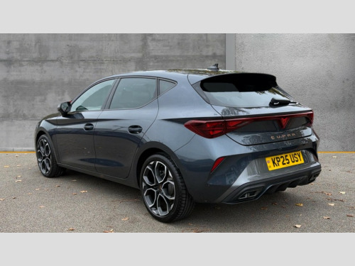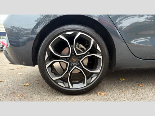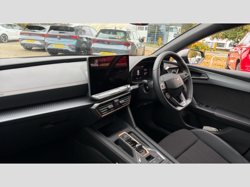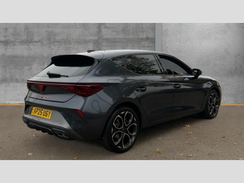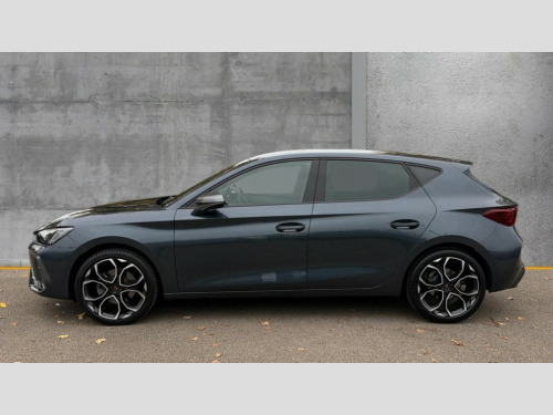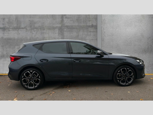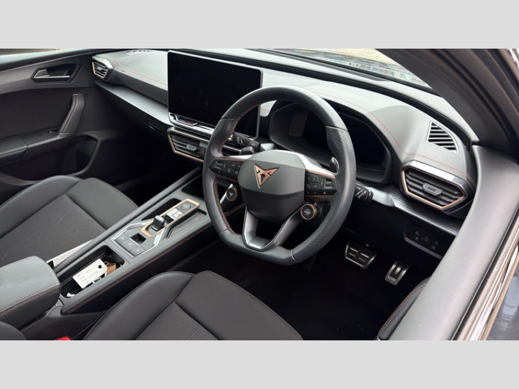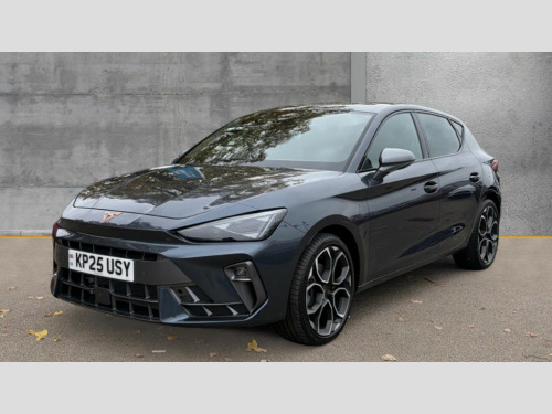 Cupra Leon 1.5 eTSI 150 V1 5dr DSG Adaptive cruise control with follow-to-stop and speed limiter, CUPRA drive profile selection with (Comfort/Sport/Individual), throttle response and gearshift mode, Digital cockpit, Dynamic road sign display, E-call, Four x USB Type C ports (2 in front and 2 in rear), Front and rear parking sensors, Front assist with forward collision warning braking reaction to vehicles, pedestrians and cyclists, Full link smartphone integration with Mirror Link, wireless Apple CarPlay and wired Google Android Auto, Lane assist, Lockable tailgate, PAS, RPM, trip computer, outside temp gauge, instrument light brightness, low fuel warning light, lights on reminder, gearshift indicator, Service interval indicator, Start/stop system with regenerative braking, Wireless phone charger, 7 speakers, Auxiliary input socket, Auto dimming rear view mirror, Body colour door handles, Body coloured bumpers, Cupra sports bumpers, Dark tinted rear windows, Electric front/rear windows, Electrically adjustable, heated and folding door mirrors, High beam assist, LED front fog lamps with cornering function, LED headlights with dynamic turn signals, tail lights, rear fog lights with rear coast to coast lighting, LED rear fog lamp, Rain sensing wipers, Rear side wing doors, Rear wash/wipe, Separate daytime running light with automatic headlight control and coming home feature, Third brake light, Welcome light with logo projector in door mirrors, 12v power supply in centre console, 3 seat bench in 2nd row, 5 headrests, 60/40 split rear bench seat with armrest, Ambient lighting with glovebox, footwell and single monocolour, Black headlining, Cloth/PVC upholstery, Cupra sports pedals, CUPRA Supersports, heated steering wheel with satellite buttons, Driver and passenger seat with manual height and lumbar adjustment, Folding boot cover, Front and rear reading lights X 4, Front centre armrest, Height/reach adjust steering wheel, Illuminated interior front door sills, ISOFIX points in outer rear seats with top tether anchorage points, Single front passenger seat, Storage pockets on rear of front seats, Sunvisors with illuminated mirror, Three zone climate control, Media system plus with 12.9" display + navigation pack - Leon Cupra, 3 point seatbelts on all rear seats, ABS, Brake control system - ESC and brake booster, Child proof door locks, Cupra black brake calipers, Driver and front passenger airbags with front passenger airbag de-activation, front side and curtain airbags, Electronic parking brake, Hill hold control, Rear disc brakes, Seat belt reminder for front and rear seats, Tiredness recognition system, Tyre pressure monitoring system, Anti theft alarm system with interior monitoring in cab, backup horn and towing protection, Central locking system Keyless Go, Locking wheel bolts, Chrome and copper interior detailing, 18" Windstorm machined sport black matt and silver alloy wheel with 92Y XL tyres, Tool kit
