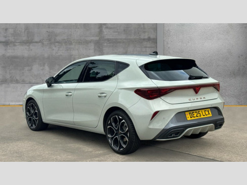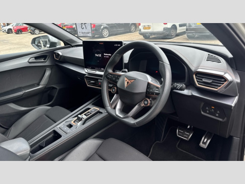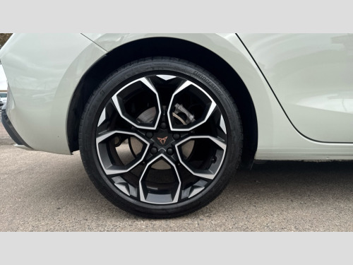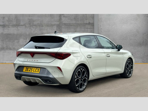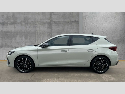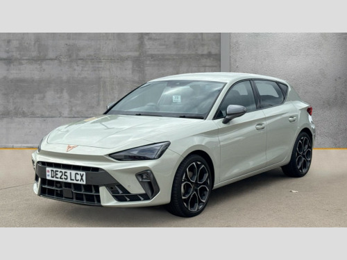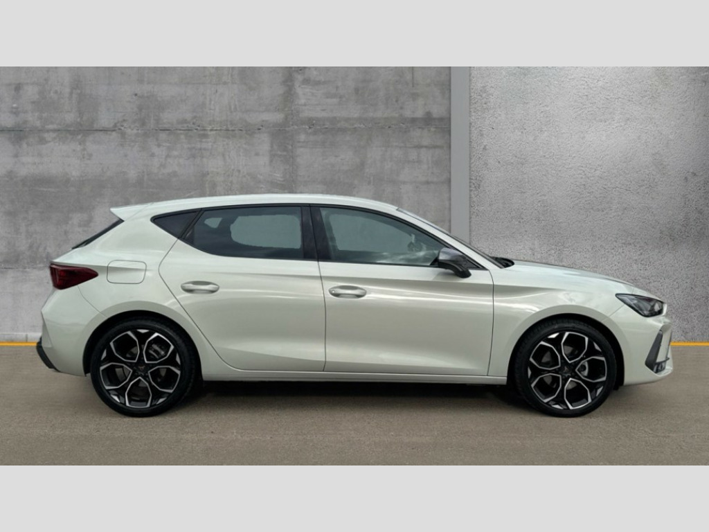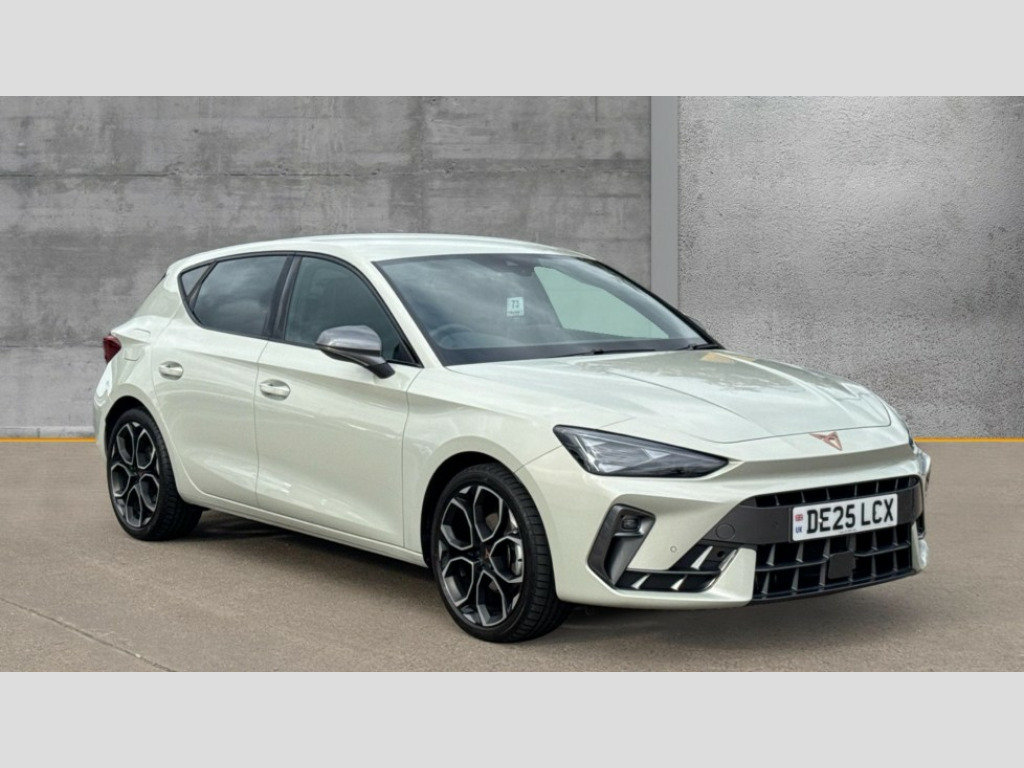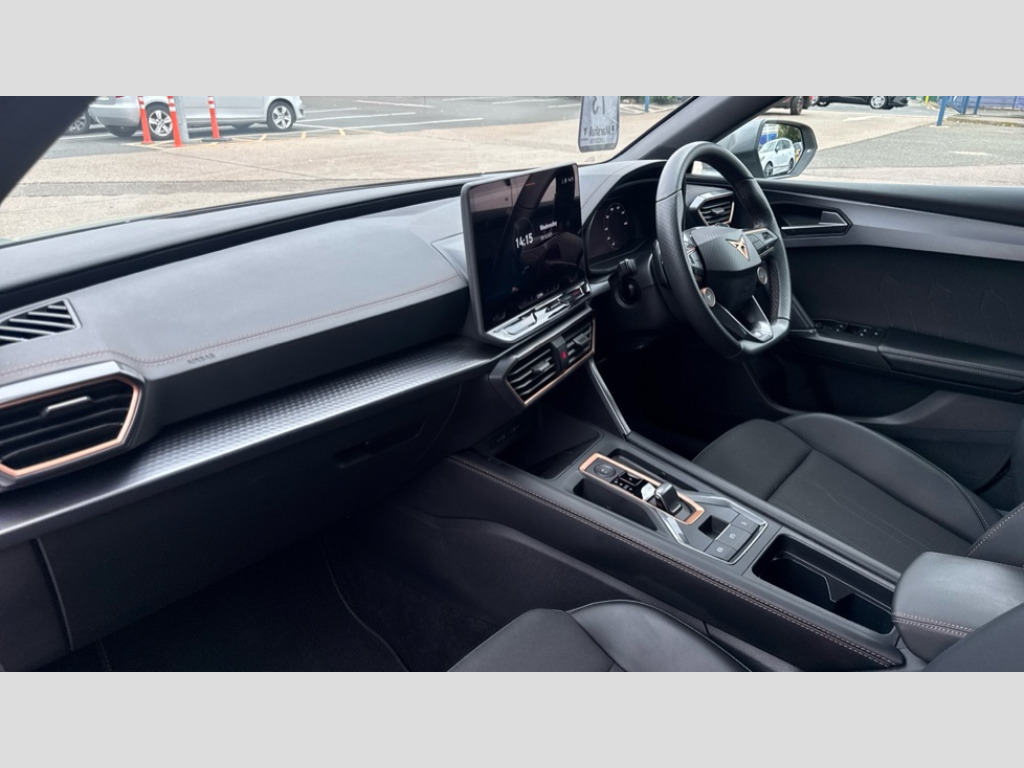 Cupra Leon 1.5 eTSI 150 V1 5dr DSG Adaptive cruise control with follow-to-stop and speed limiter, CUPRA drive profile selection with (Comfort/Sport/Individual), throttle response and gearshift mode, Digital cockpit, Dynamic road sign display, E-call, Four x USB Type C ports (2 in front and 2 in rear), Front and rear parking sensors, Front assist with forward collision warning braking reaction to vehicles, pedestrians and cyclists, Full link smartphone integration with Mirror Link, wireless Apple CarPlay and wired Google Android Auto, Lane assist, Lockable tailgate, PAS, RPM, trip computer, outside temp gauge, instrument light brightness, low fuel warning light, lights on reminder, gearshift indicator, Service interval indicator, Start/stop system with regenerative braking, Wireless phone charger, 7 speakers, Auxiliary input socket, Auto dimming rear view mirror, Body colour door handles, Body coloured bumpers, Cupra sports bumpers, Dark tinted rear windows, Electric front/rear windows, Electrically adjustable, heated and folding door mirrors, High beam assist, LED front fog lamps with cornering function, LED headlights with dynamic turn signals, tail lights, rear fog lights with rear coast to coast lighting, LED rear fog lamp, Rain sensing wipers, Rear side wing doors, Rear wash/wipe, Separate daytime running light with automatic headlight control and coming home feature, Third brake light, Welcome light with logo projector in door mirrors, 12v power supply in centre console, 3 seat bench in 2nd row, 5 headrests, 60/40 split rear bench seat with armrest, Ambient lighting with glovebox, footwell and single monocolour, Black headlining, Cloth/PVC upholstery, Cupra sports pedals, CUPRA Supersports, heated steering wheel with satellite buttons, Driver and passenger seat with manual height and lumbar adjustment, Folding boot cover, Front and rear reading lights X 4, Front centre armrest, Height/reach adjust steering wheel, Illuminated interior front door sills, ISOFIX points in outer rear seats with top tether anchorage points, Single front passenger seat, Storage pockets on rear of front seats, Sunvisors with illuminated mirror, Three zone climate control, Media system plus with 12.9" display + navigation pack - Leon Cupra, 3 point seatbelts on all rear seats, ABS, Brake control system - ESC and brake booster, Child proof door locks, Cupra black brake calipers, Driver and front passenger airbags with front passenger airbag de-activation, front side and curtain airbags, Electronic parking brake, Hill hold control, Rear disc brakes, Seat belt reminder for front and rear seats, Tiredness recognition system, Tyre pressure monitoring system, Anti theft alarm system with interior monitoring in cab, backup horn and towing protection, Central locking system Keyless Go, Locking wheel bolts, Chrome and copper interior detailing, 18" Windstorm machined sport black matt and silver alloy wheel with 92Y XL tyres, Tool kit