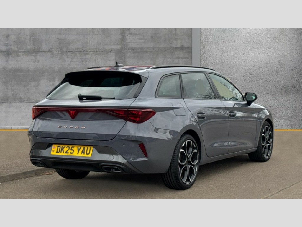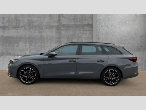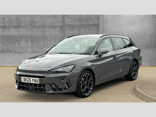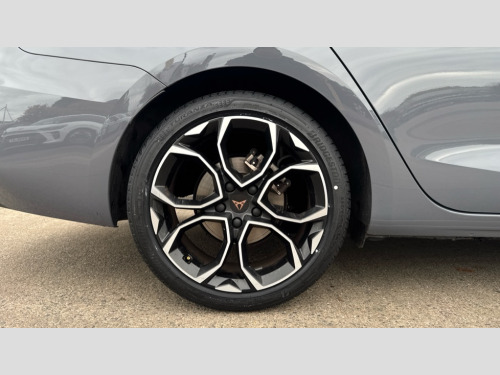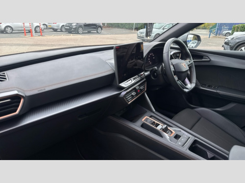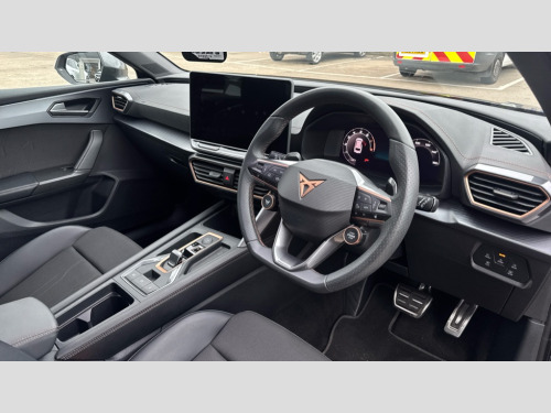 Cupra Leon 1.5 eTSI 150 V1 5dr DSG Adaptive cruise control with follow-to-stop and speed limiter, CUPRA drive profile selection with (Comfort/Sport/Individual), throttle response and gearshift mode, Digital cockpit, Dynamic road sign display, E-call, Four x USB Type C ports (2 in front and 2 in rear), Front and rear parking sensors, Front assist with forward collision warning braking reaction to vehicles, pedestrians and cyclists, Full link smartphone integration with Mirror Link, wireless Apple CarPlay and wired Google Android Auto, Lane assist, Lockable tailgate, PAS, RPM, trip computer, outside temp gauge, instrument light brightness, low fuel warning light, lights on reminder, gearshift indicator, Service interval indicator, Start/stop system with regenerative braking, Virtual pedal with electric tailgate, Wireless phone charger, 7 speakers, Auxiliary input socket, Auto dimming rear view mirror, Body colour door handles, Body coloured bumpers, Cupra sports bumpers, Dark tinted rear windows, Electric front/rear windows, Electrically adjustable, heated and folding door mirrors, Gloss black roof rails, High beam assist, LED front fog lamps with cornering function, LED headlights with dynamic turn signals, tail lights, rear fog lights with rear coast to coast lighting, LED rear fog lamp, Rain sensing wipers, Rear side wing doors, Rear wash/wipe, Separate daytime running light with automatic headlight control and coming home feature, Third brake light, Welcome light with logo projector in door mirrors, 12v power supply in centre console, 3 seat bench in 2nd row, 5 headrests, 60/40 split rear bench seat with armrest, Ambient lighting with glovebox, footwell and single monocolour, Black headlining, Cloth/PVC upholstery, Cupra sports pedals, CUPRA Supersports, heated steering wheel with satellite buttons, Driver and passenger seat with manual height and lumbar adjustment, Front and rear reading lights X 4, Front centre armrest, Height/reach adjust steering wheel, Illuminated interior front door sills, ISOFIX points in outer rear seats with top tether anchorage points, Single front passenger seat, Sliding boot cover, Storage pockets on rear of front seats, Sunvisors with illuminated mirror, Three zone climate control, Media system plus with 12.9" display + navigation pack - Leon Cupra, 3 point seatbelts on all rear seats, ABS, Brake control system - ESC and brake booster, Child proof door locks, Cupra black brake calipers, Driver and front passenger airbags with front passenger airbag de-activation, front side and curtain airbags, Electronic parking brake, Hill hold control, Rear disc brakes, Seat belt reminder for front and rear seats, Tiredness recognition system, Tyre pressure monitoring system, Anti theft alarm system with interior monitoring in cab, backup horn and towing protection, Central locking system Keyless Go, Locking wheel bolts, Chrome and copper interior detailing, 18" Windstorm machined sport black matt and silver alloy wheel with 92Y XL tyres, Tool kit